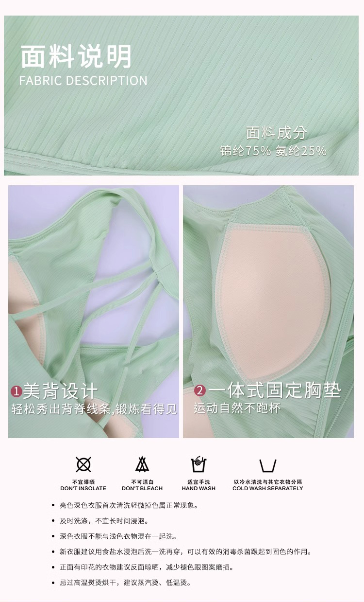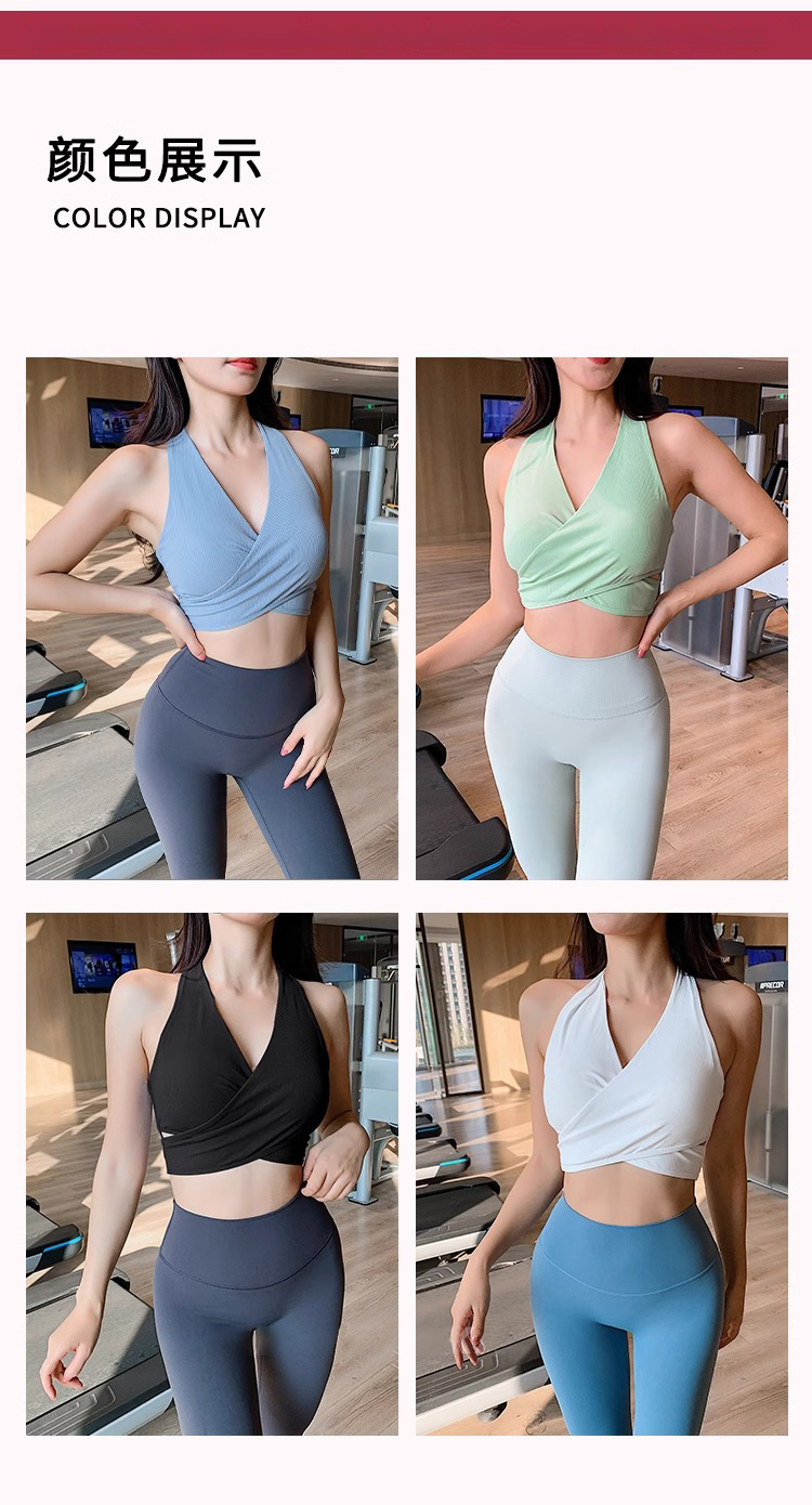 跃牌【洛水之神系列】高端仙气瑜伽背心带胸垫无痕运动美背内衣背心762