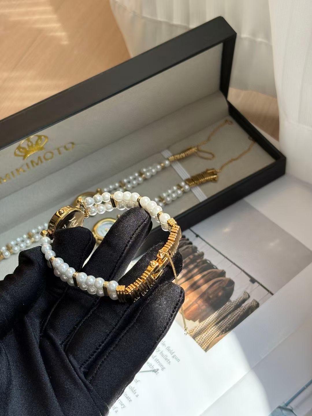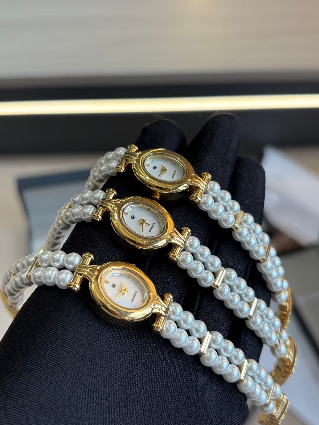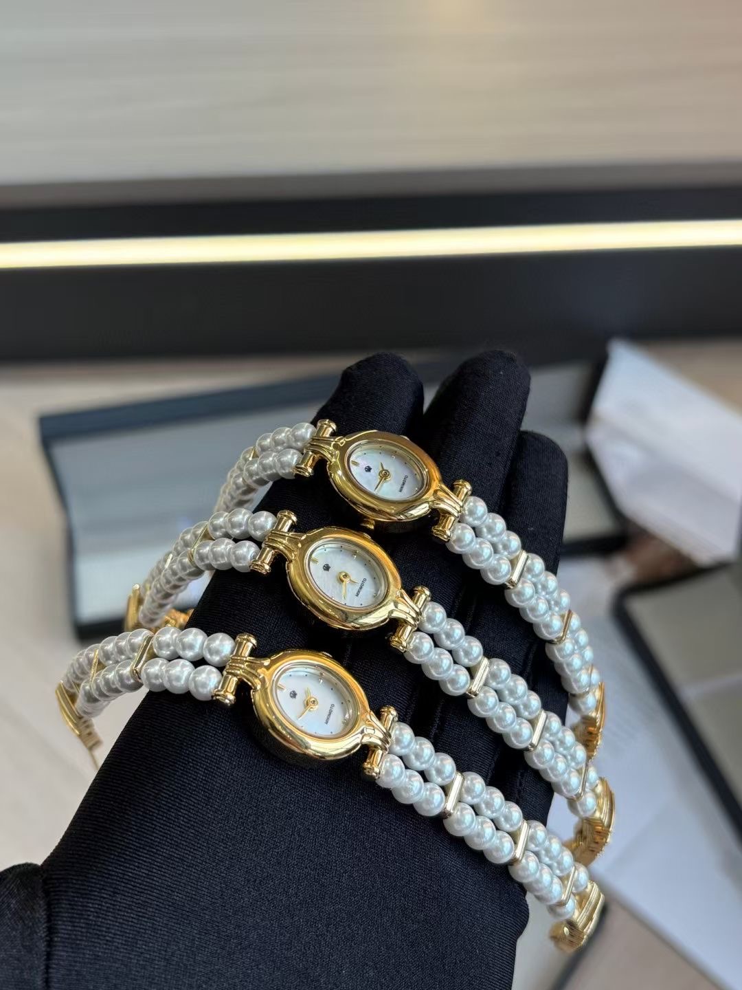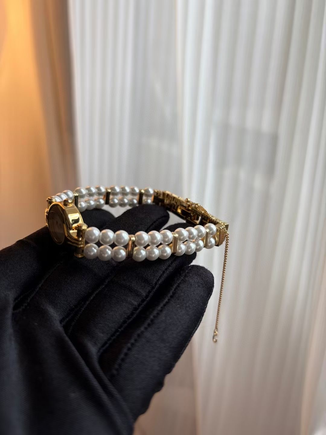 表带无疑是这款腕表的一大亮点,采用了珍珠与金属结合的设计。珍珠均经过御木本严格的筛选,颗颗圆润饱满,散发着柔和而迷人的光泽。它们大小均匀,排列整齐,仿佛是一串精心雕琢的项链环绕在手腕上