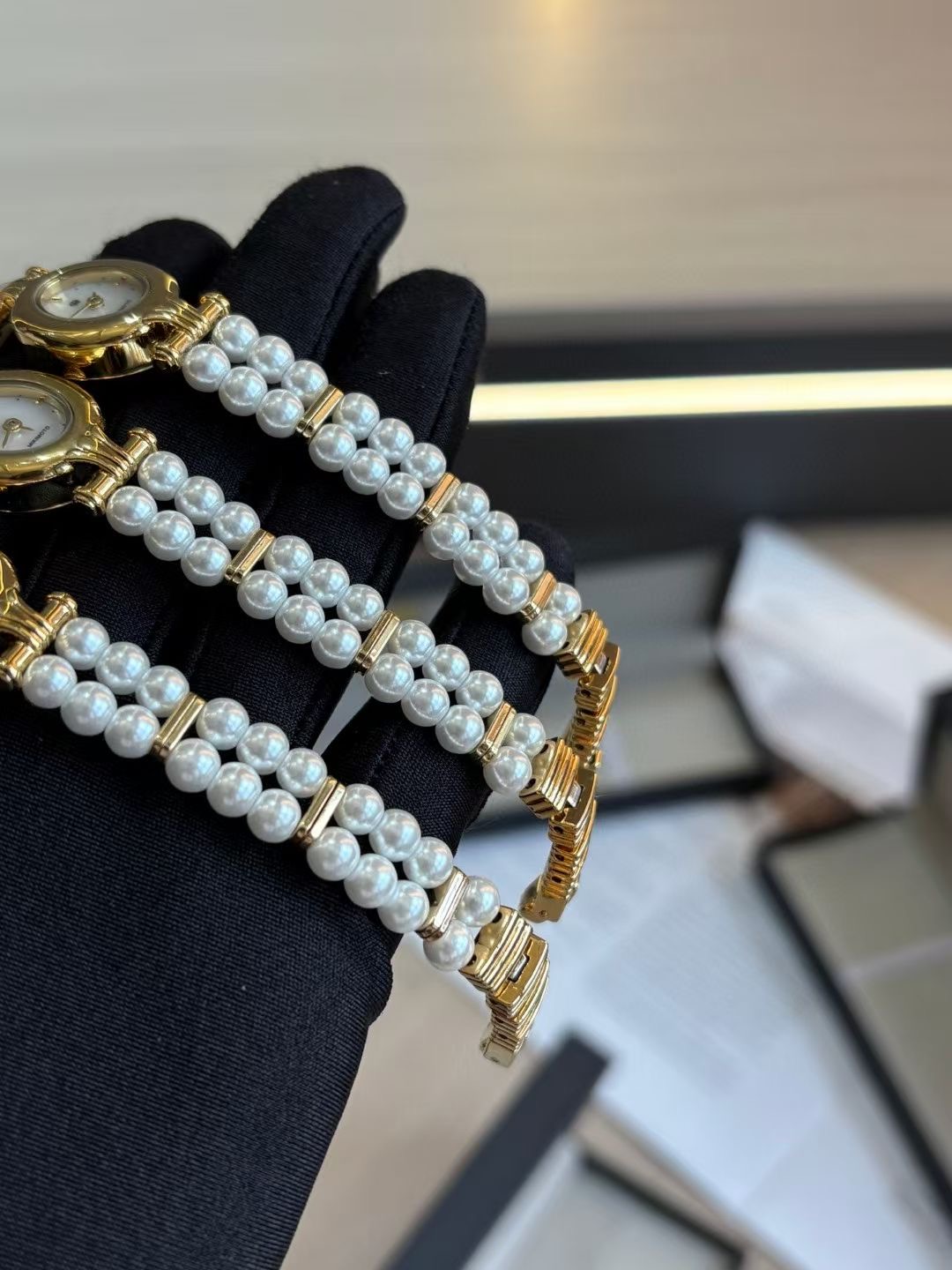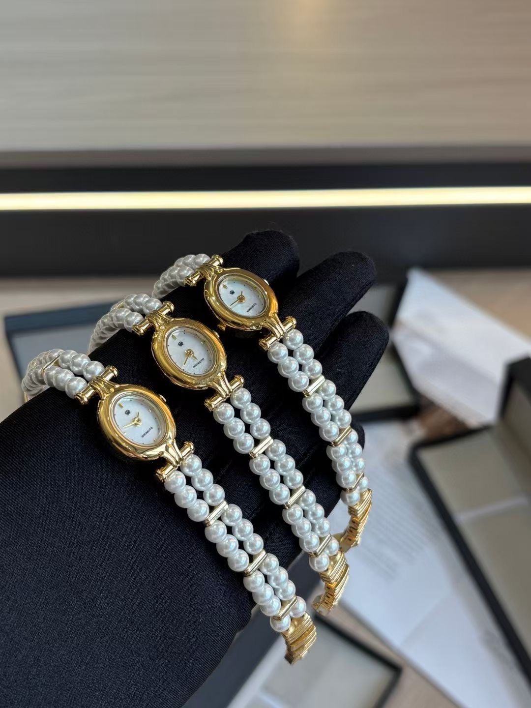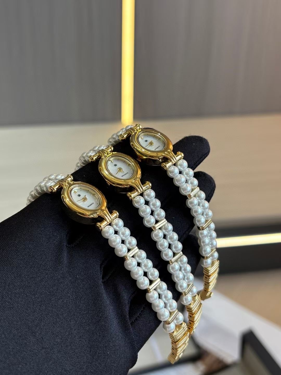 表带无疑是这款腕表的一大亮点,采用了珍珠与金属结合的设计。珍珠均经过御木本严格的筛选,颗颗圆润饱满,散发着柔和而迷人的光泽。它们大小均匀,排列整齐,仿佛是一串精心雕琢的项链环绕在手腕上