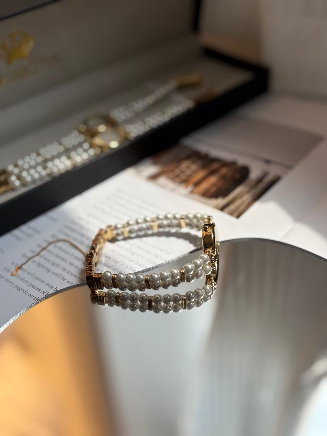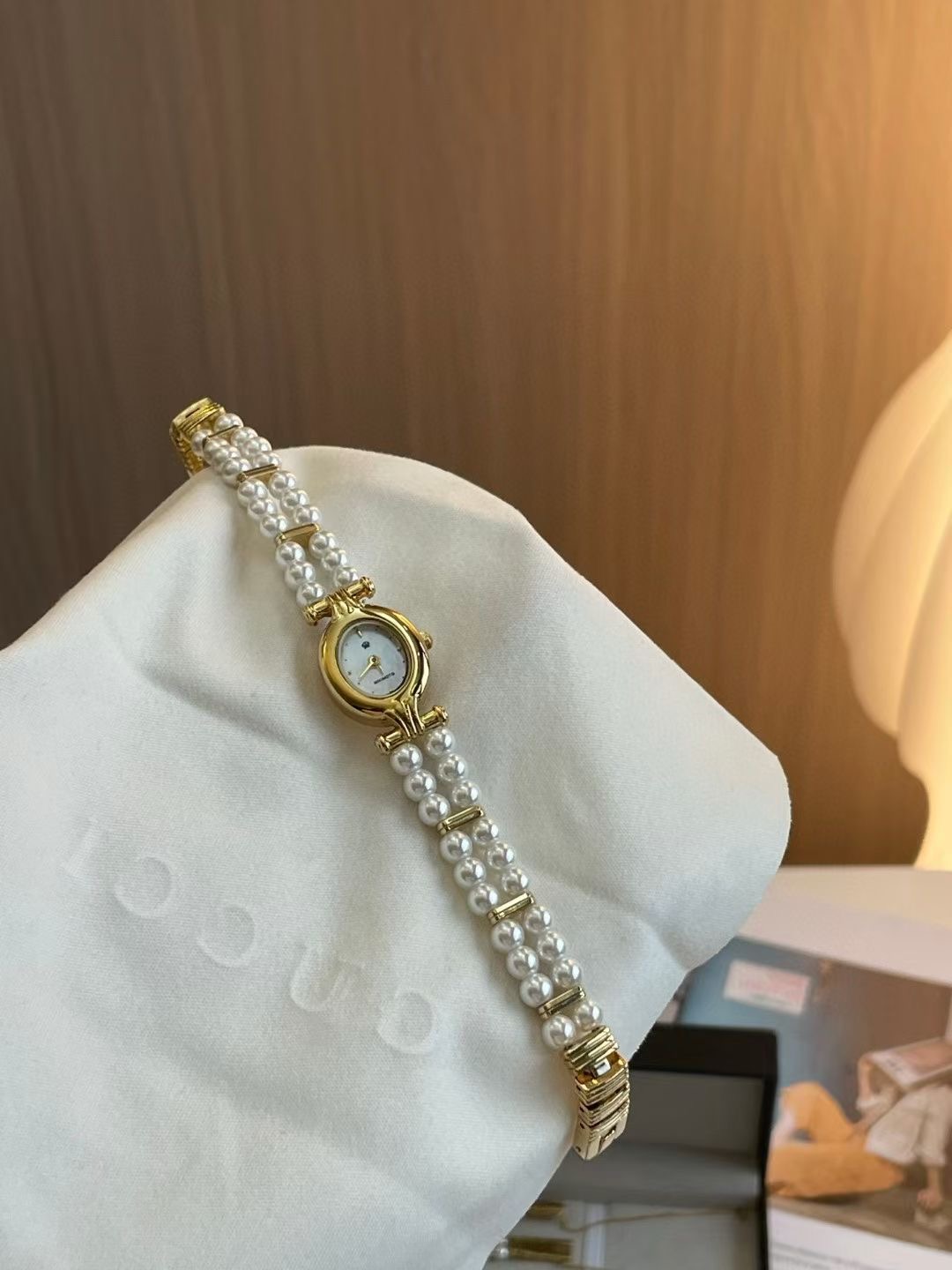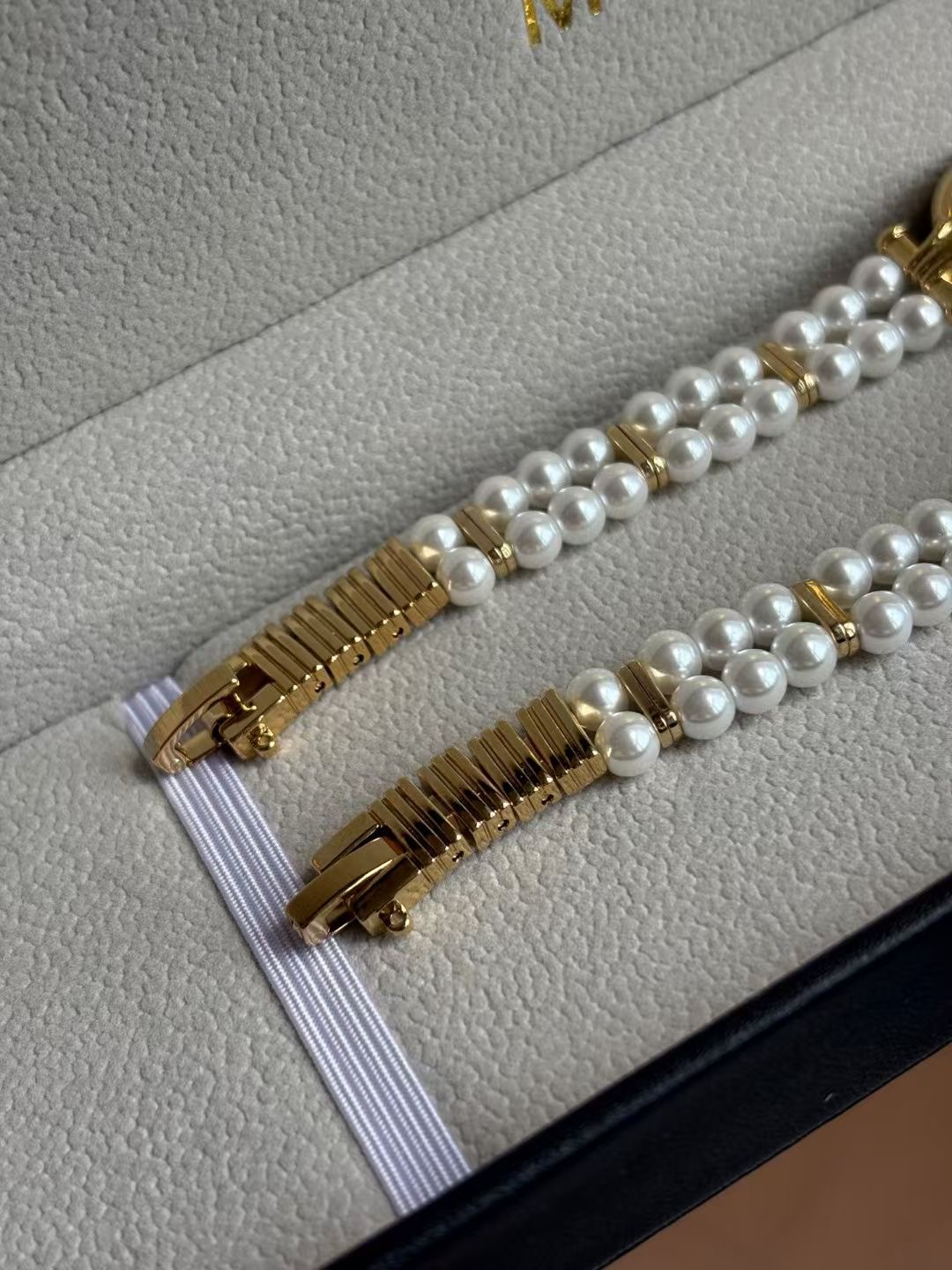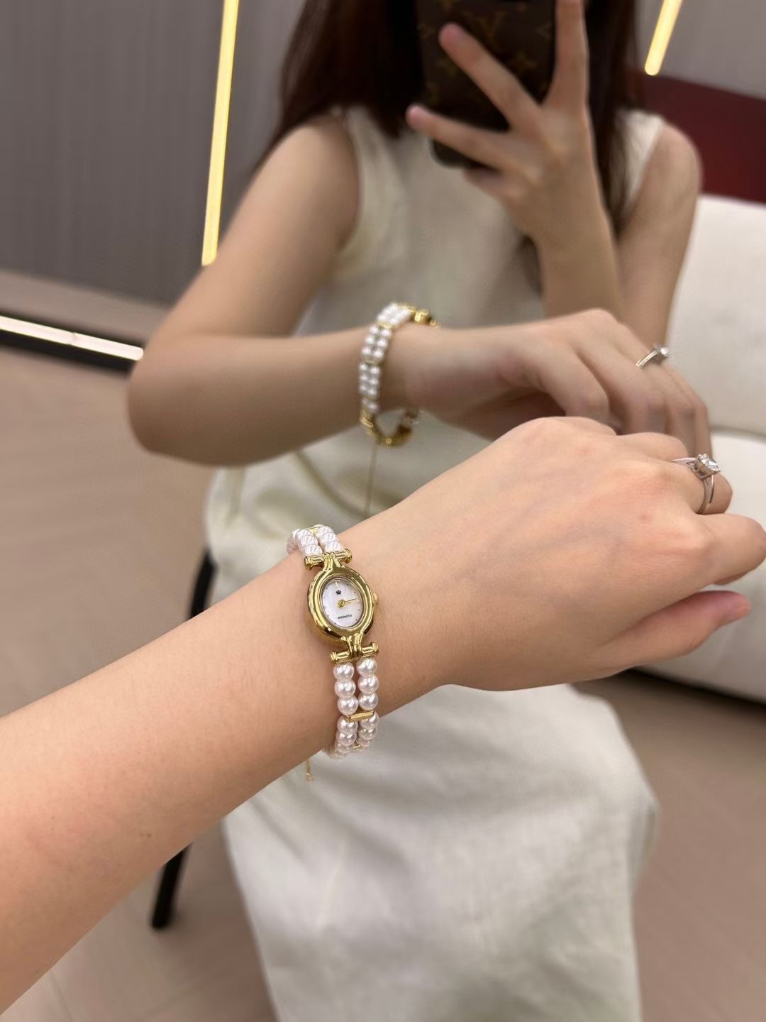 表带无疑是这款腕表的一大亮点,采用了珍珠与金属结合的设计。珍珠均经过御木本严格的筛选,颗颗圆润饱满,散发着柔和而迷人的光泽。它们大小均匀,排列整齐,仿佛是一串精心雕琢的项链环绕在手腕上