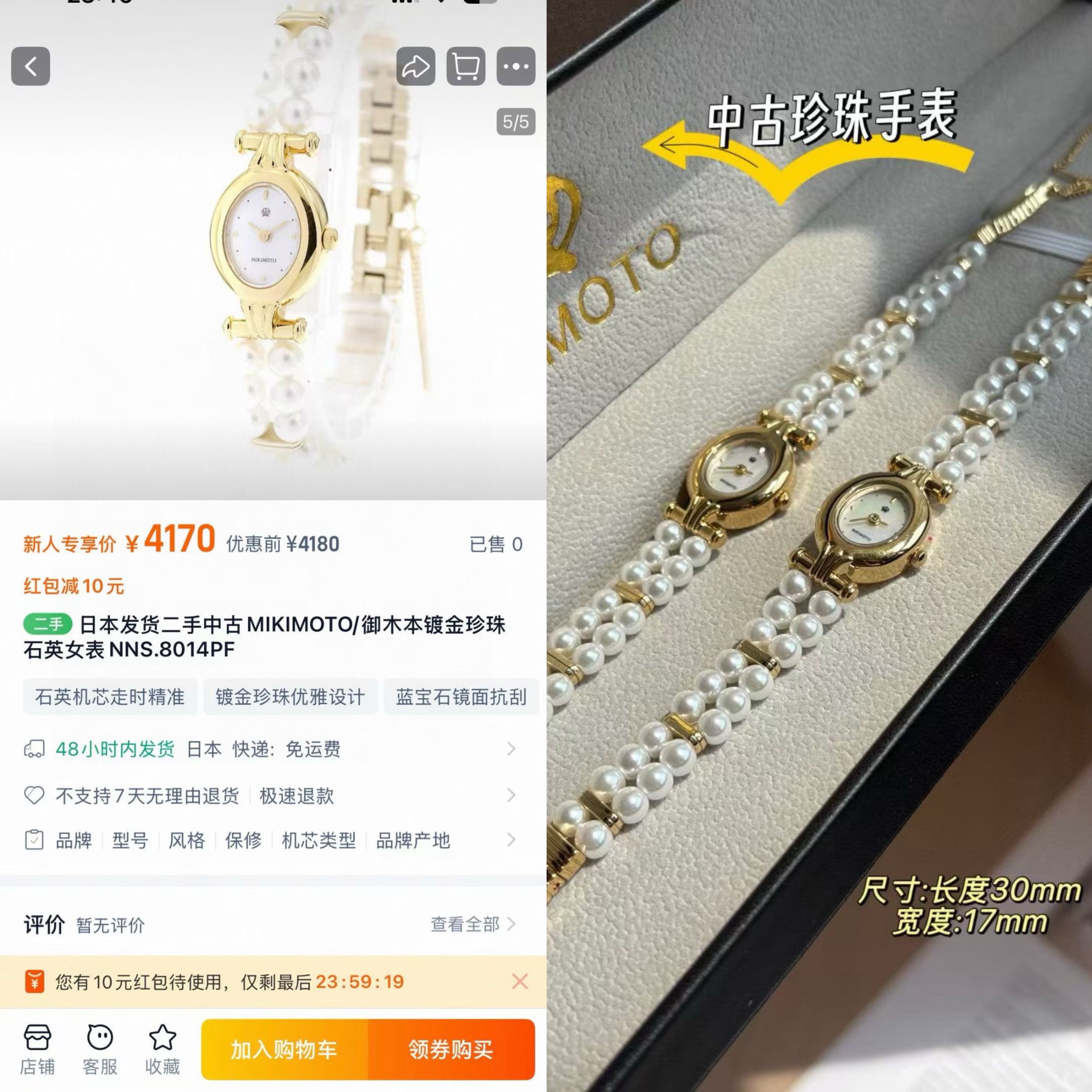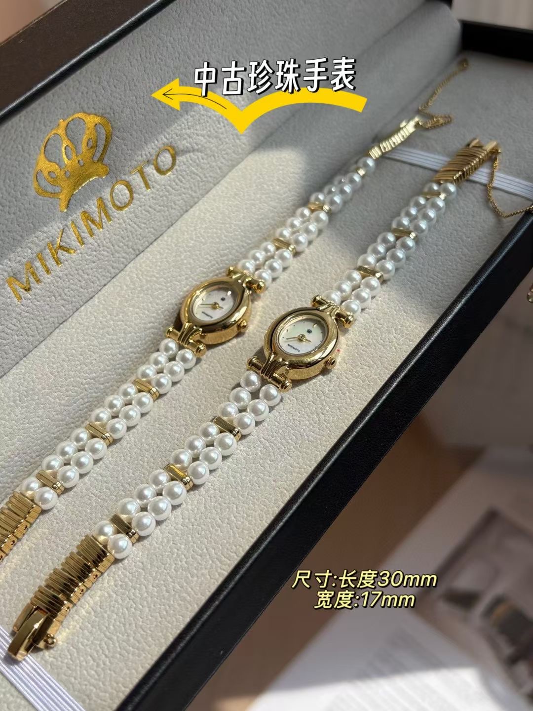 实拍视频欣赏!!当年的公价都是万元起,如今半折以上的价格可以买到中古款,性价比非常高。其中mikimoto的腕表副线品牌如今已经停产了,就算现在来看,款式依旧复古可爱不过时。
