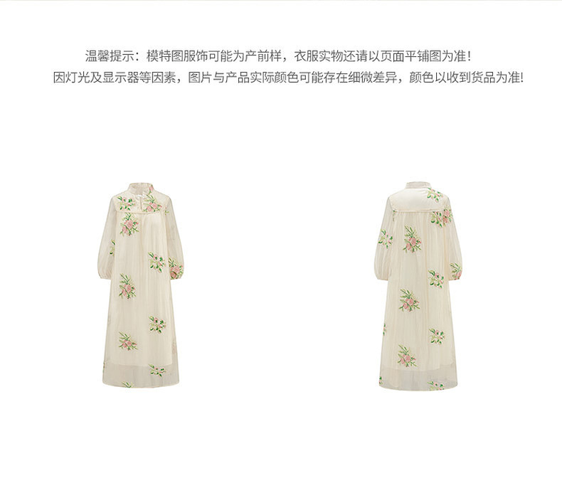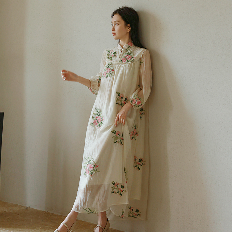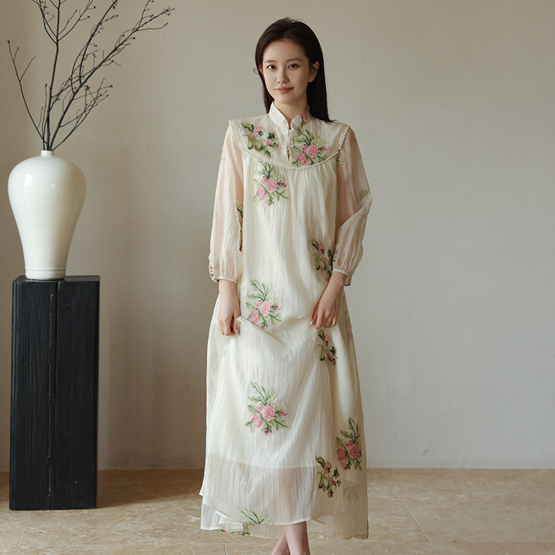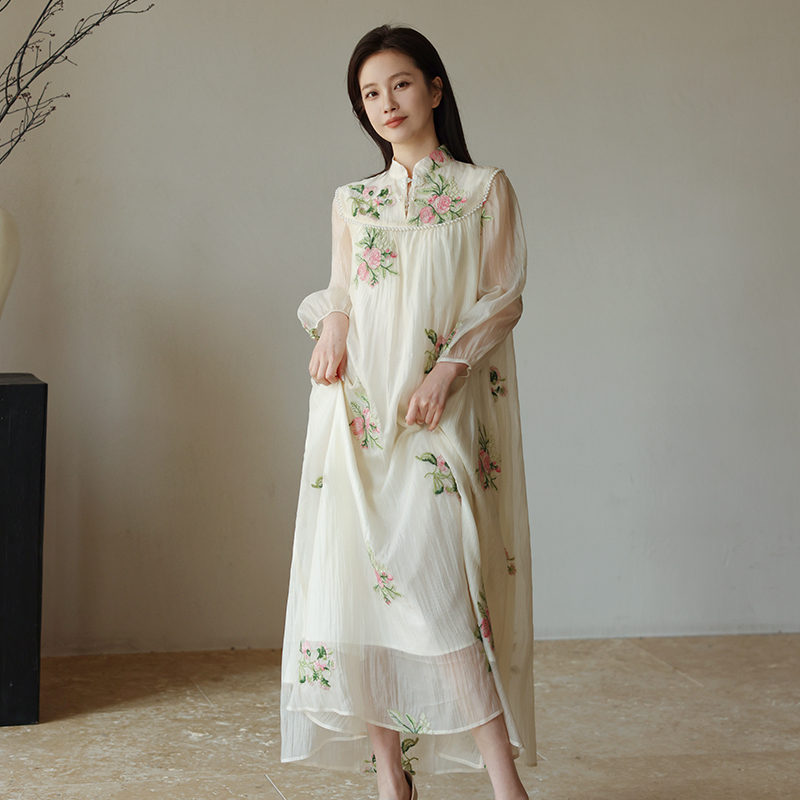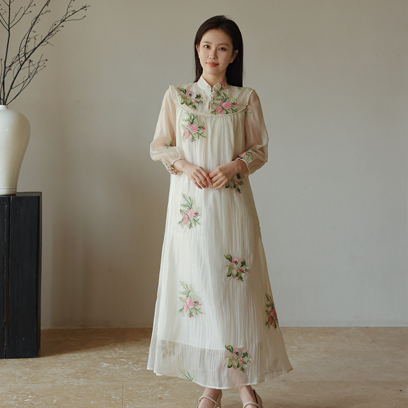 会员福利【重工刺绣!宫廷风】拉夏贝尔/La Chapelle立领刺绣新中式长袖连衣裙2025年新款