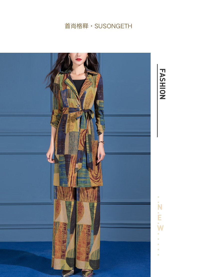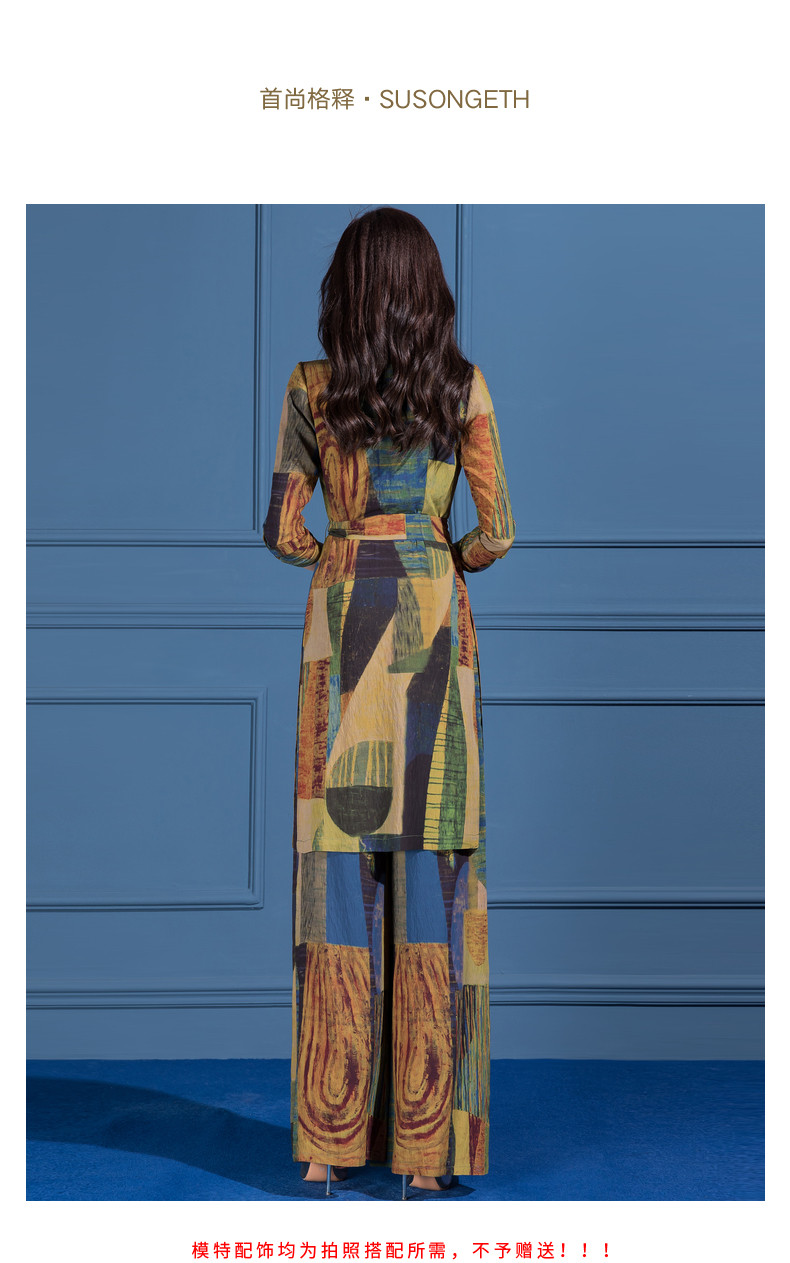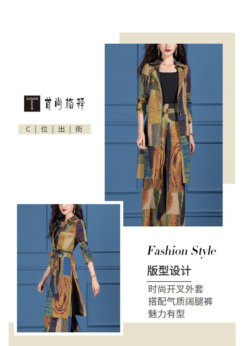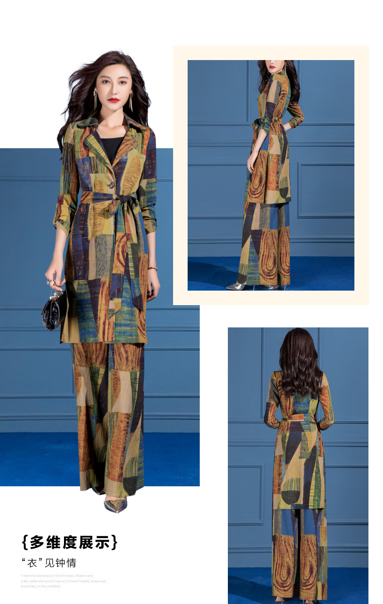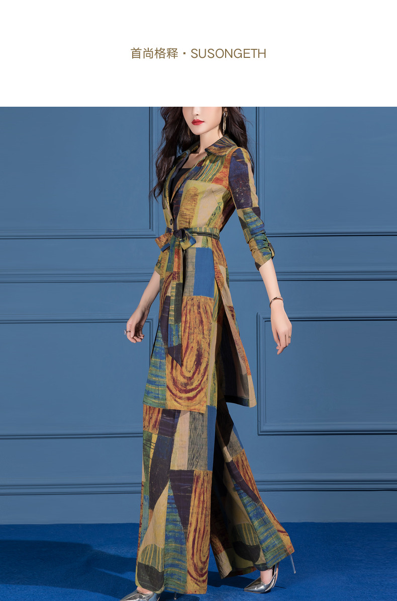 SSGS-S823新款女时尚女神范不规则印花阔腿裤两件套