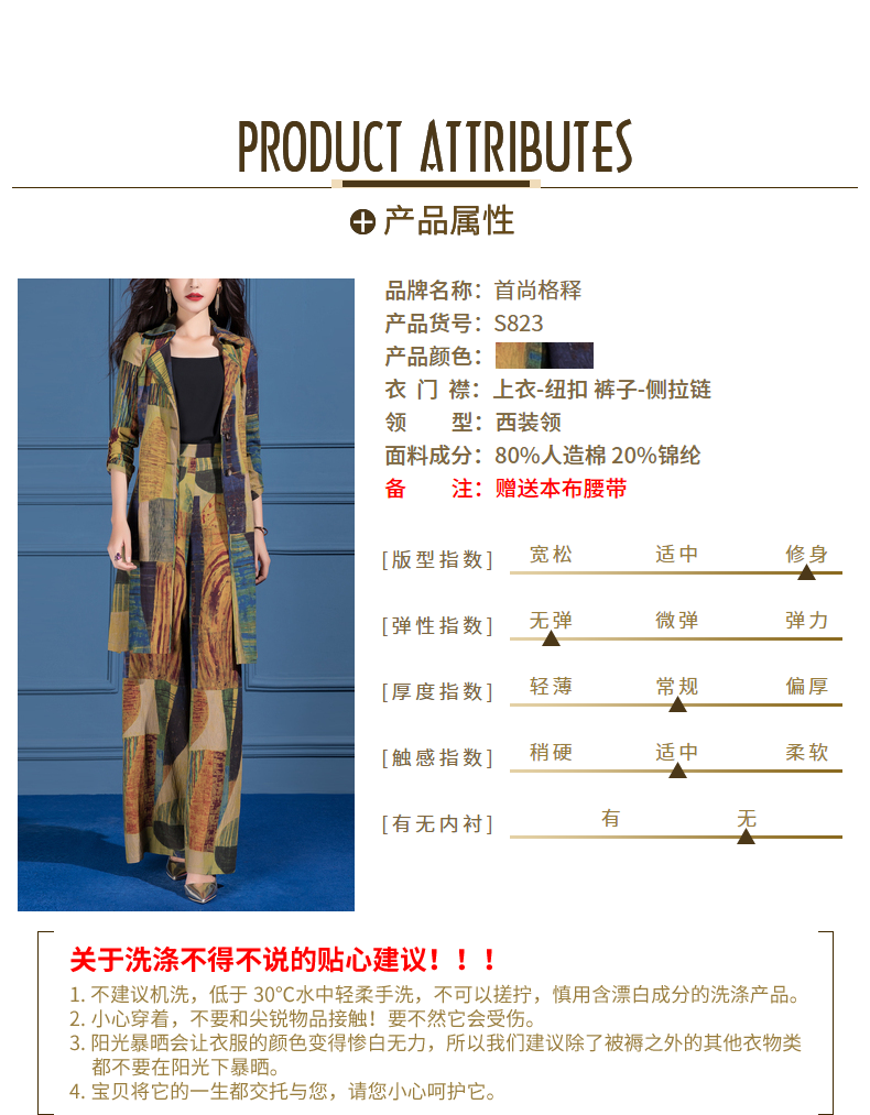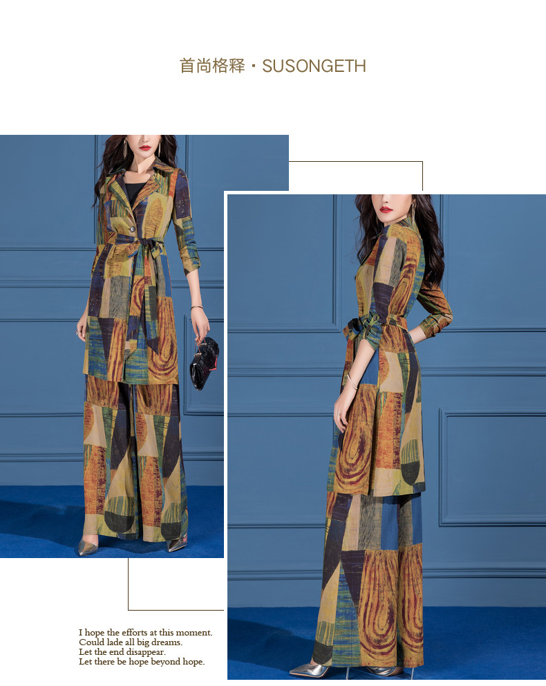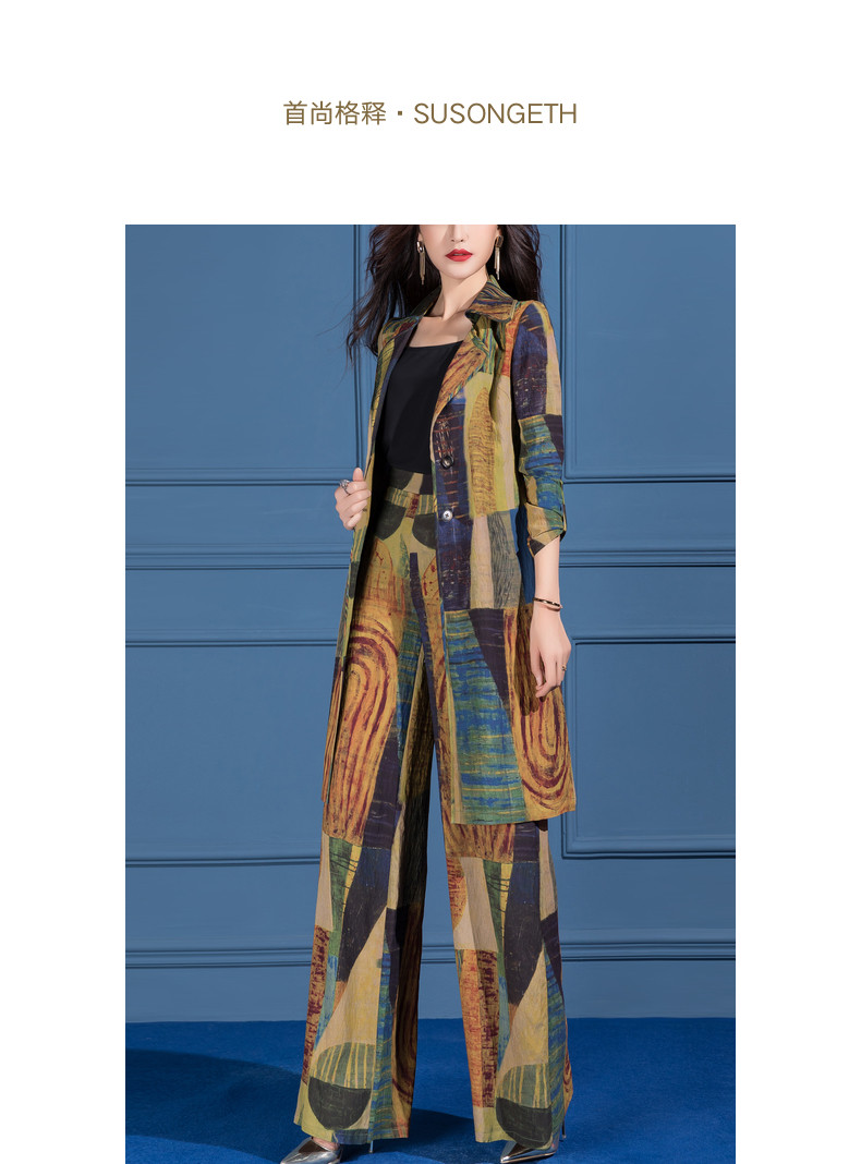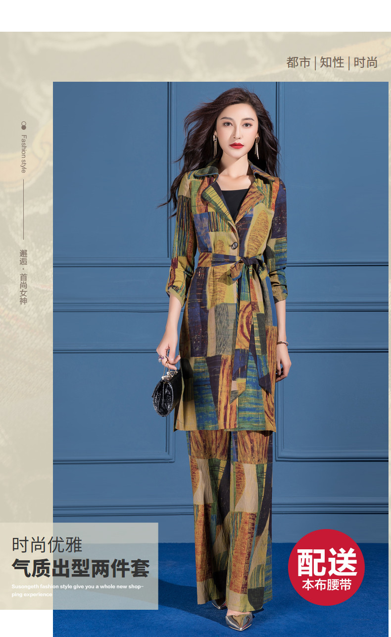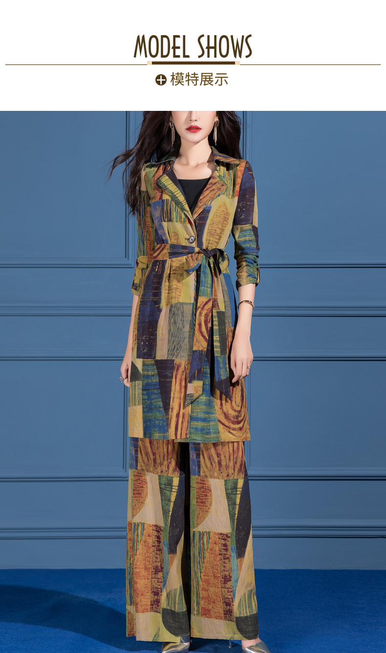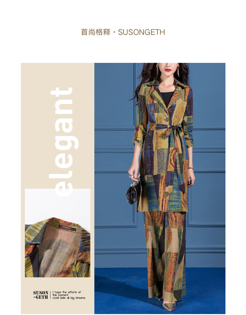 SSGS-S823新款女时尚女神范不规则印花阔腿裤两件套