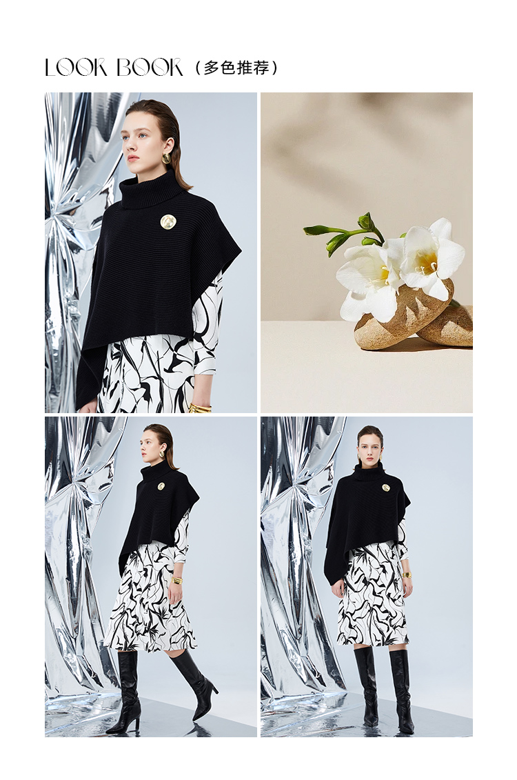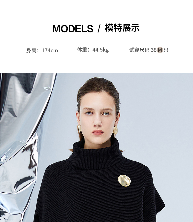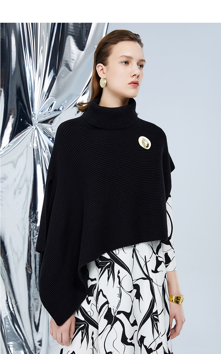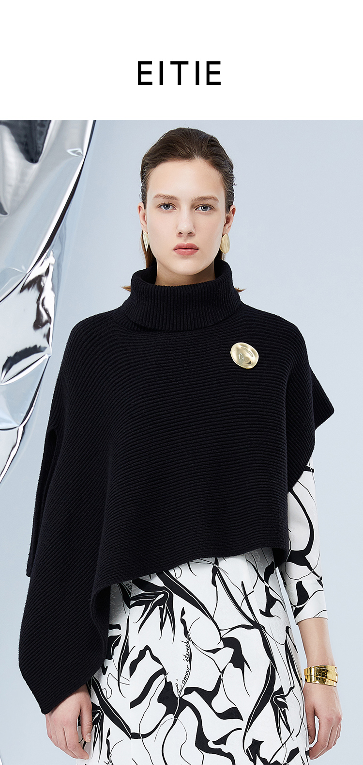 EITIE爱特爱冬季新款时尚纯色立领斗篷针织衫女上衣套头针织衫7501209