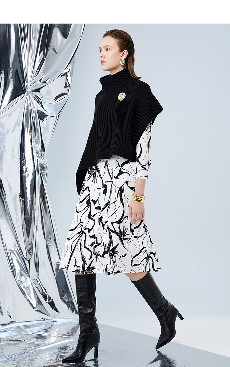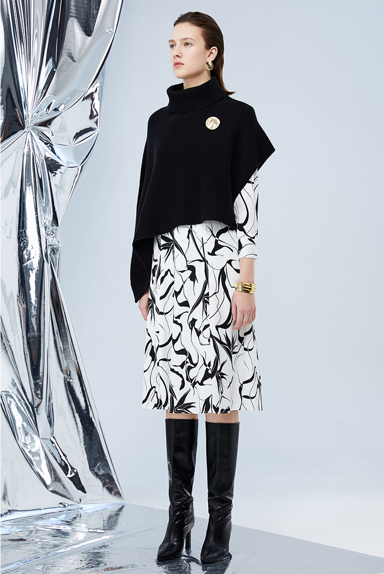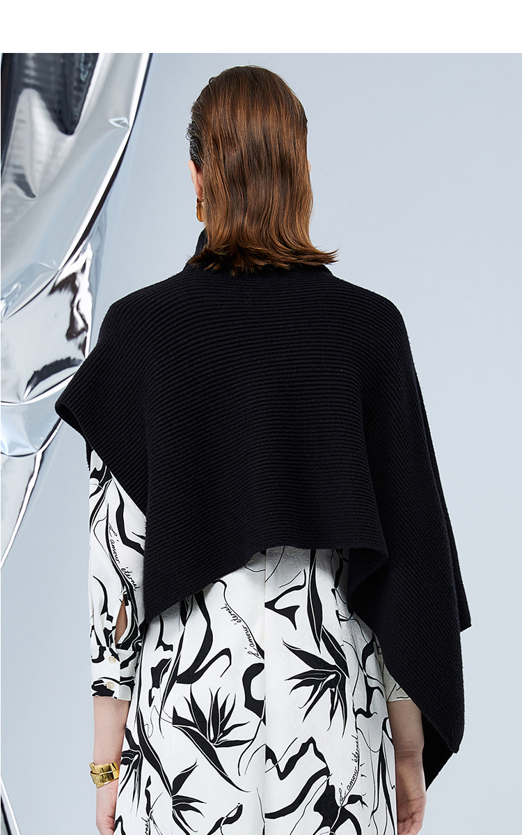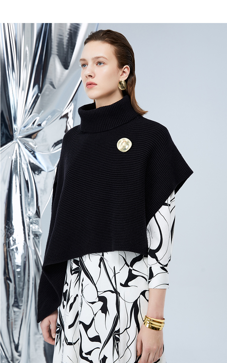 EITIE爱特爱冬季新款时尚纯色立领斗篷针织衫女上衣套头针织衫7501209