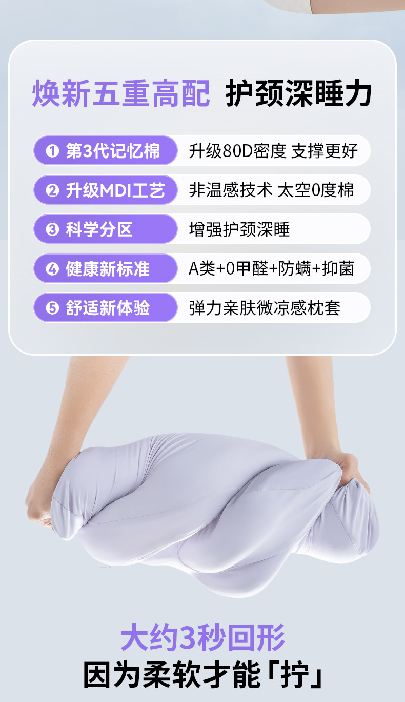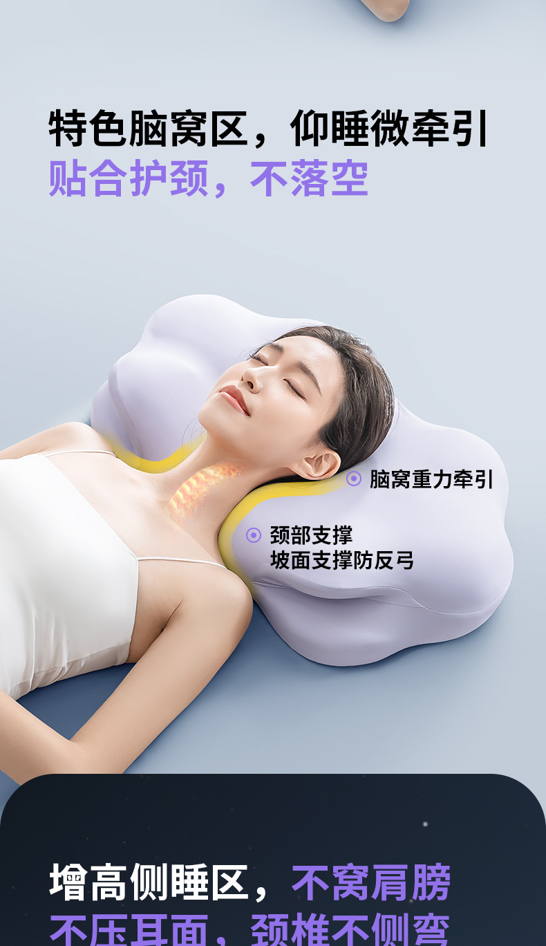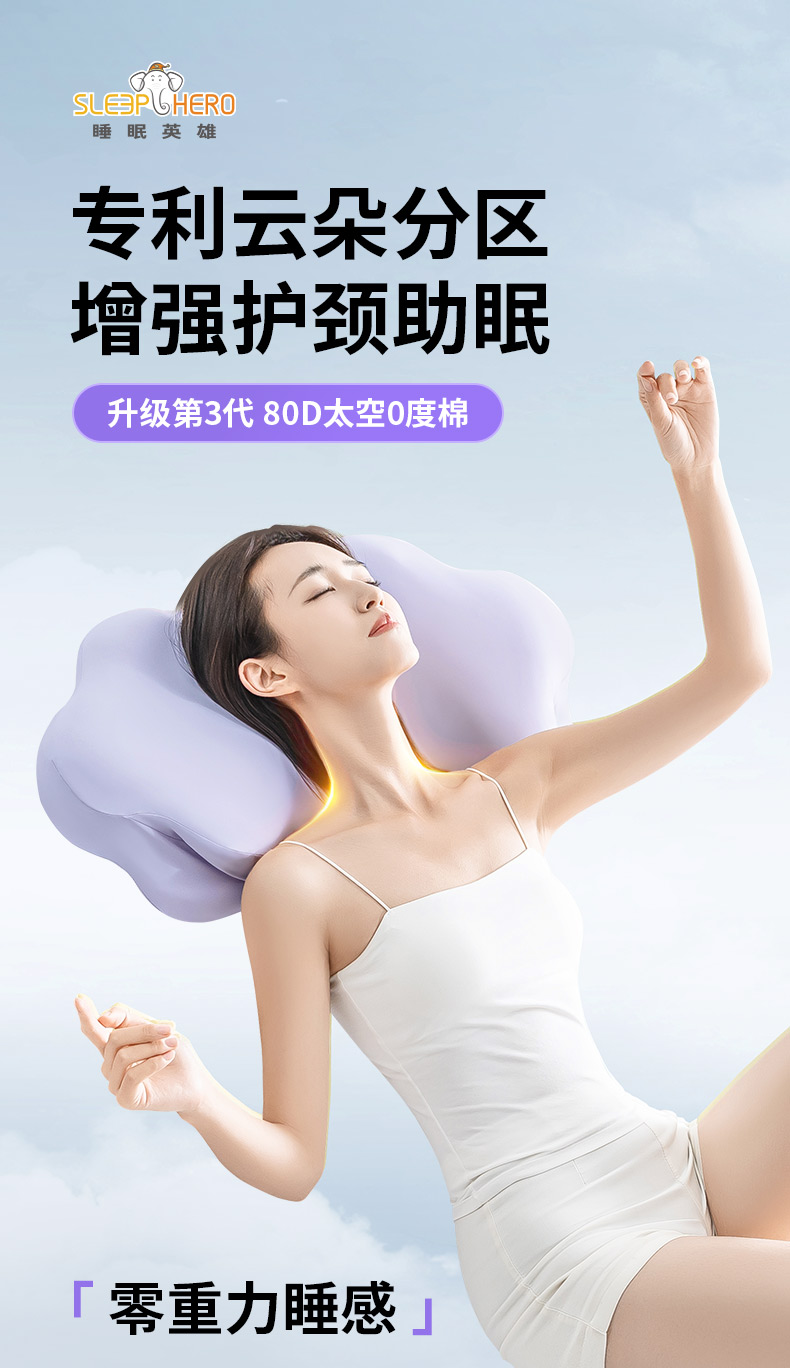 【零重力睡感】SleepHero深睡云朵枕 专利云朵分区升级第三代80D太空0度棉 贴合护颈 仰睡/侧睡 不落空 增强护颈深睡 亲肤微凉感整套 四季软硬不变