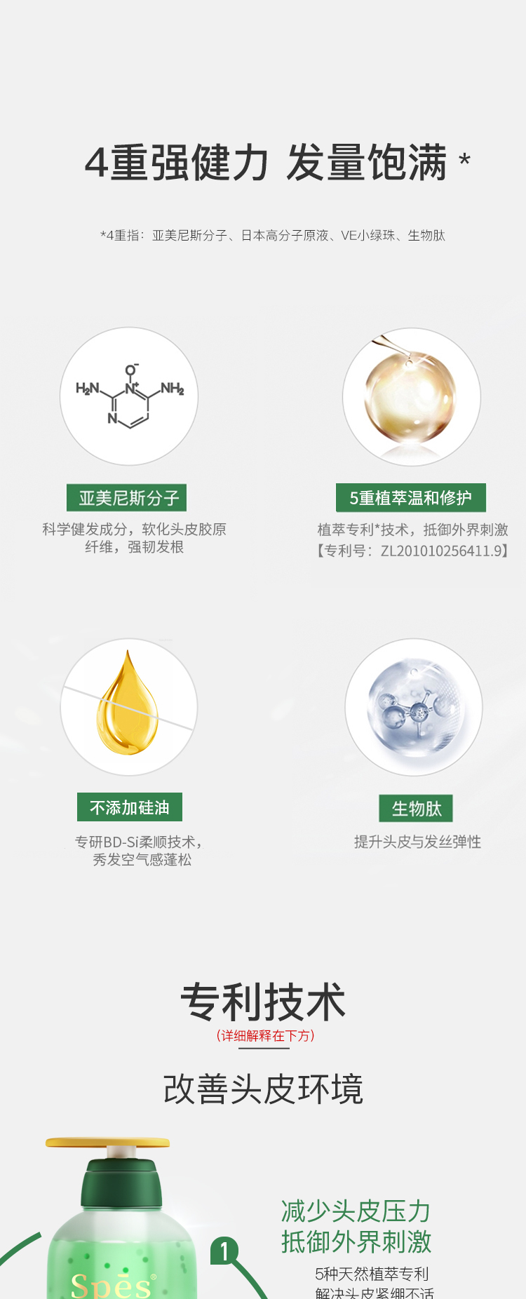 【品牌直发】Spes蓬松丰盈洗发水500ml大容量防脱固发洗发水拯救细软塌