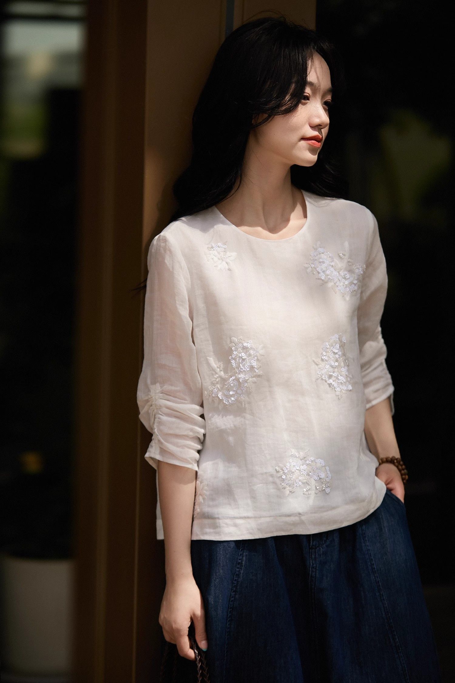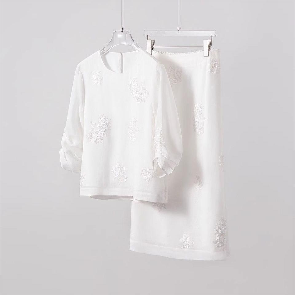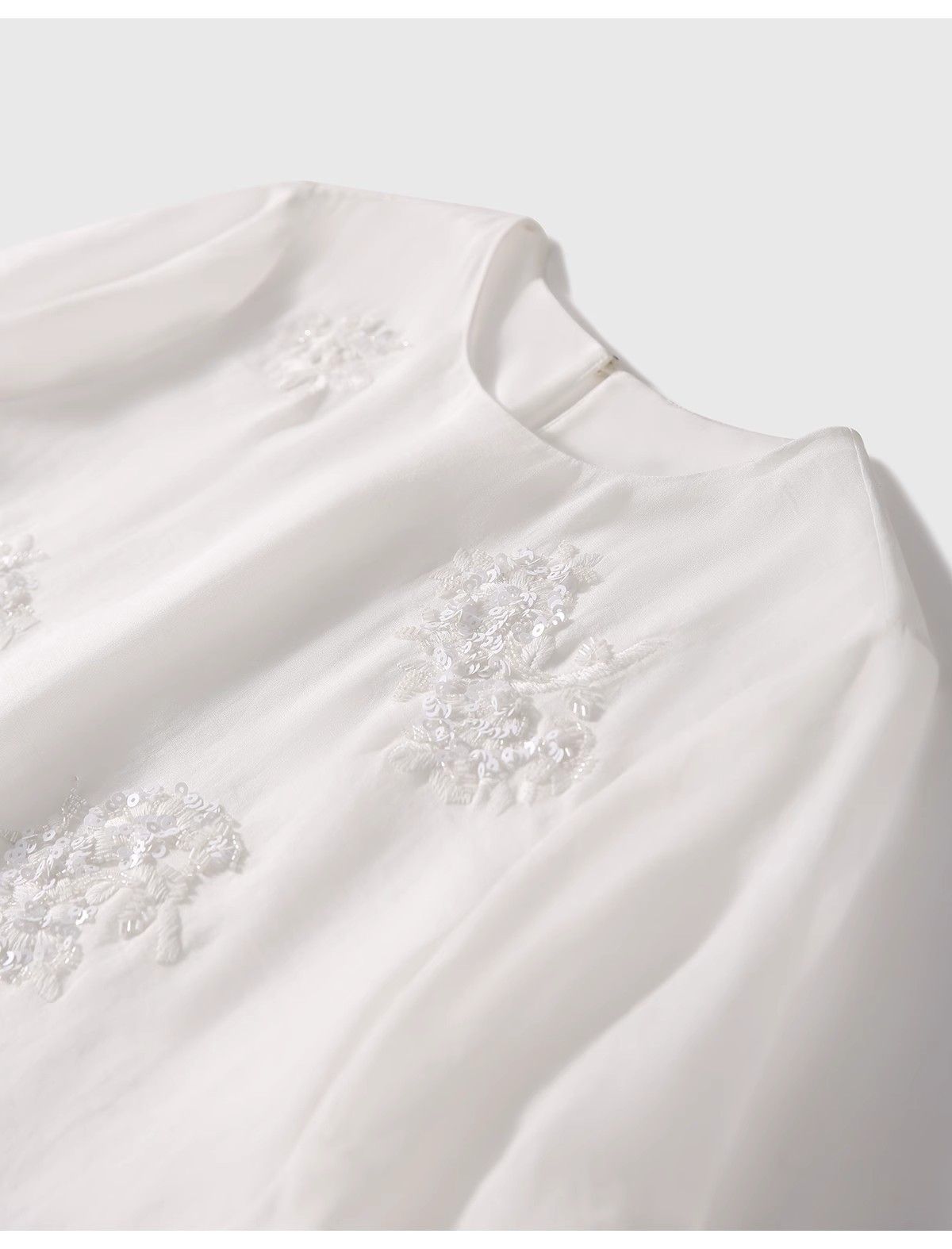 【ORIGNAL&CO 重工亮片钉珠绣花清透套装】新中式改良设计 日常可穿 精致花卉刺绣裙