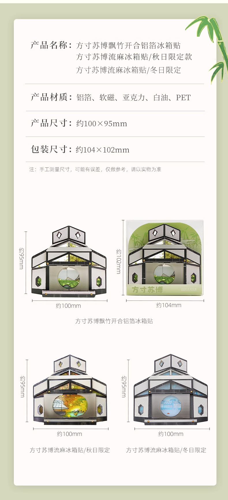 苏州博物馆 方寸苏博飘竹开合铝箔冰箱贴
