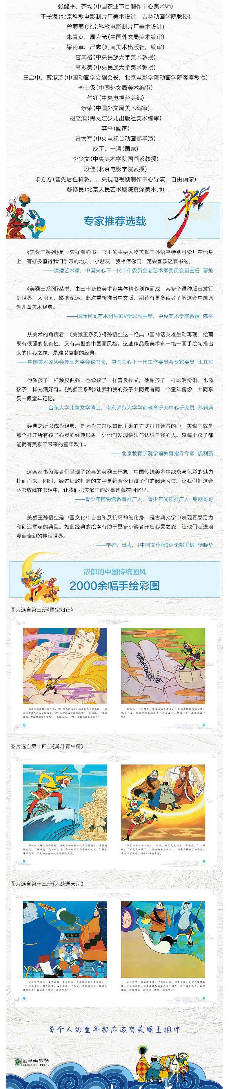 本书根据家喻户晓的《西游记》故事改编,由美术家段佳、李少文于20世纪八十年代绘图,是陪伴了两代人童年的中国典彩绘图画书,是中国儿童美术作品创作高峰时期的代表作之一。本书曾翻译成30多种语言向全世界发行。通过本书,大朋友们可以品味怀旧的温暖,小朋友们可以收获阅读神话故事的乐趣。本册是《美猴王系列》的第三十二集,讲述了唐僧师徒历经磨难,终于来到灵山。佛祖命二尊者引他们选经,不料二尊者却向他们索取贿赂。悟空不肯行贿,结果取来的竟是无字白经。他们重返灵山告状,佛祖却不责怪二尊者。师徒们只好把紫金钵盂送给尊者,才取得有字真经。在腾云返回东土途中,众人从空中跌落。此处正是通天河边,师徒再遇当年载他们过河的老龟。不料,老龟竟将他们掀落水中。唐僧师徒就此经历八十一难,功德圆满。