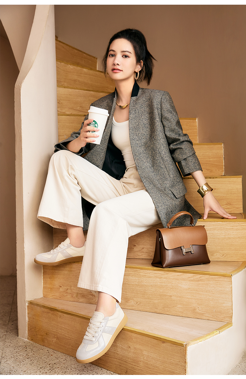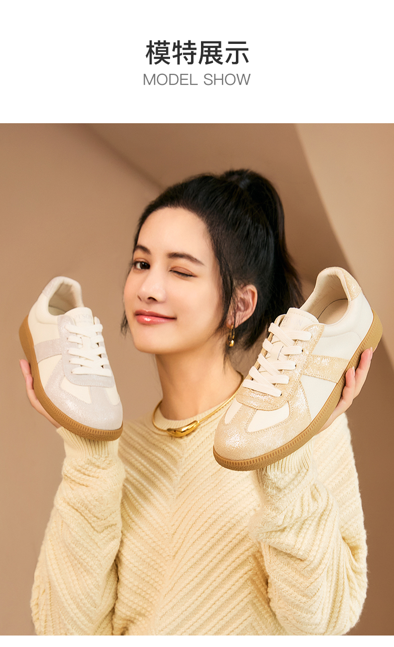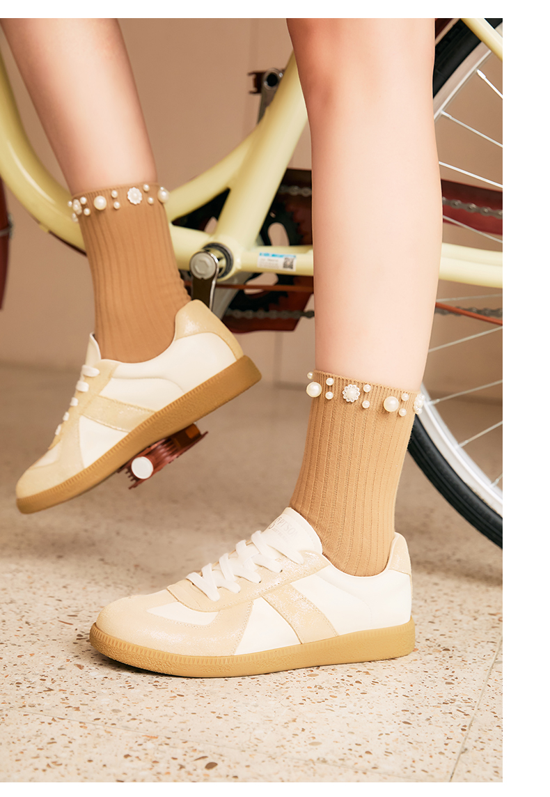 百田森PRF2C067复古美拉德板鞋女软底德训鞋女百搭拼色运动鞋女