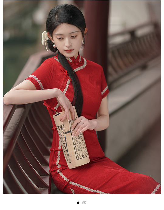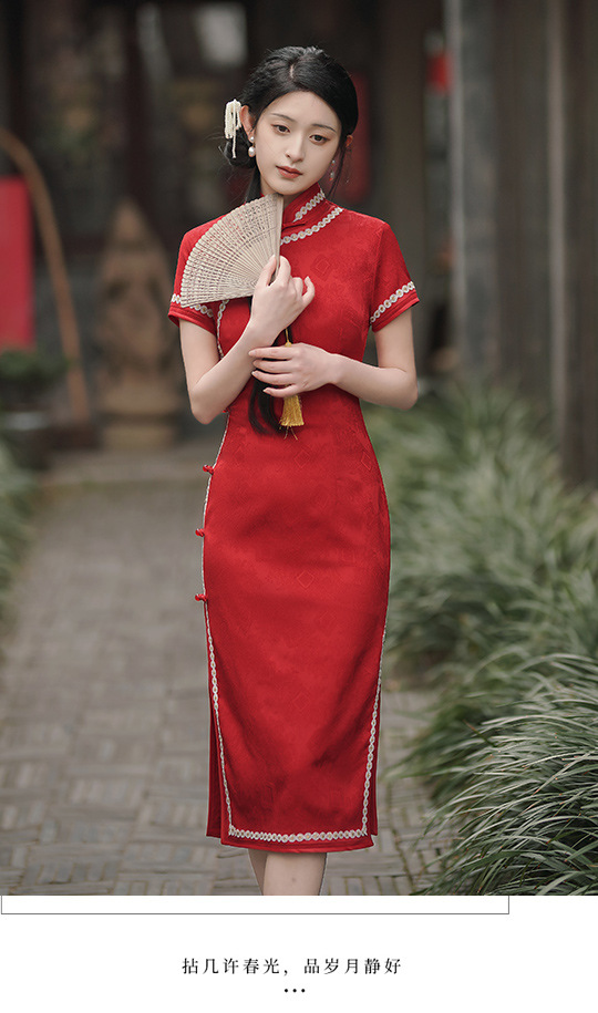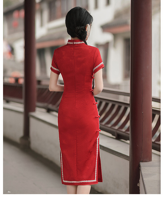 TX春夏酒红色修身显瘦日常新娘装旗袍连衣裙