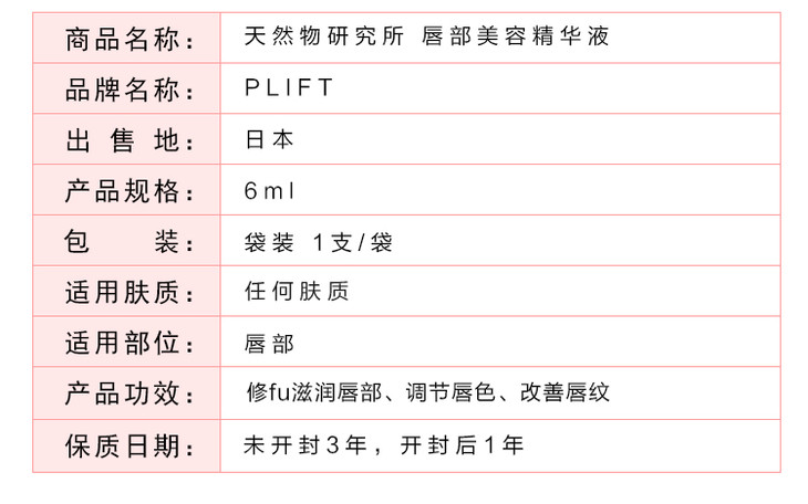 天然物研究所PLIFT VP胎盘素唇部精华液6ml