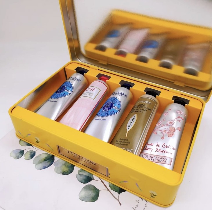 欧舒丹护手霜5支铁盒套30ml*5-韩国限定👍欧舒丹可是护手霜界的爱马仕,🇰🇷限量首尔主题,美丽皮囊下有趣的灵魂。每一款都是低调又很高级的香,推荐所有姐妹入手!乳木果滋润度最高,含有20%的乳木果油💧,蜂蜜和甜杏仁精华。手感非常细腻,具有恢复和保护干燥双手的功效。还含有具抗氧化作用的维生素E💛,损伤的再厉害的双手都可以使之恢复柔嫩☁。 *套盒包括:乳木果*2+樱花+玫瑰+马鞭草
