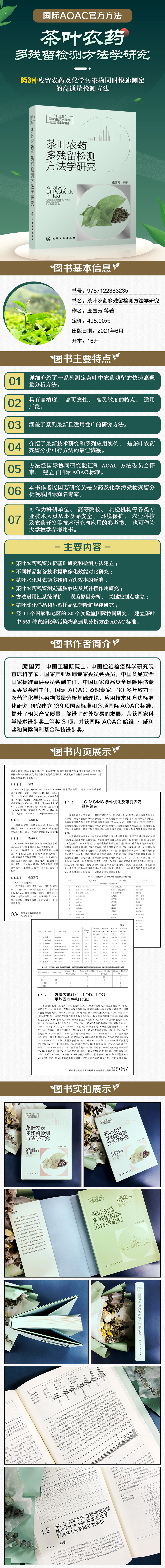 《茶叶农药多残留检测方法学研究》详细介绍了一系列测定茶叶中农药残留的色谱-质谱高通量分析方法。该方法被批准为国际AOACzui终官方方法,具有高精度、高可靠性、高灵敏度的特点,适用性广。全书共7章,分别介绍了茶叶农药多残留基础性研究和分析方法的建立,茶叶残留农药的萃取和净化效率研究,茶叶水化对残留农药提取效率的影响及不确定度评定,茶叶农药残留测定基质效应评价,茶叶农药残留测定方法耐用性评价及误差分析,茶叶陈化样品和污染样品农药降解规律研究,茶叶中653种农药化学污染物高通量分析方法AOAC标准建立。