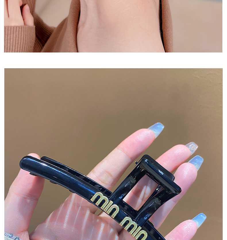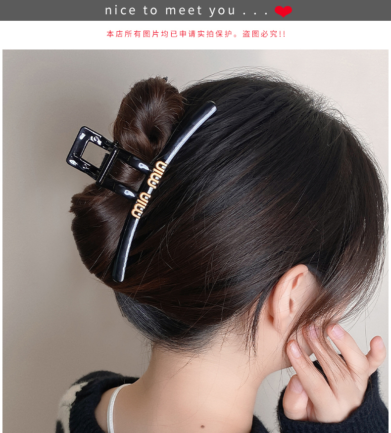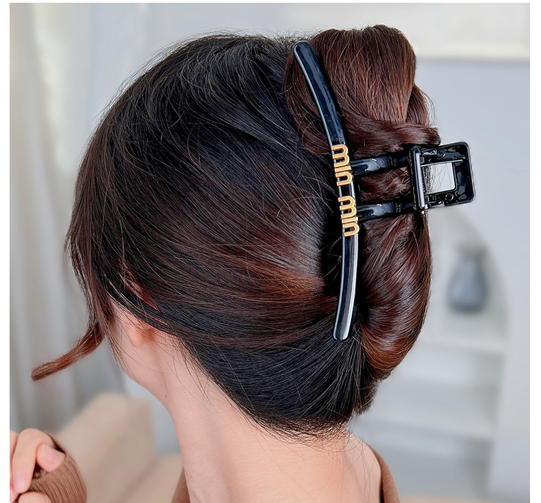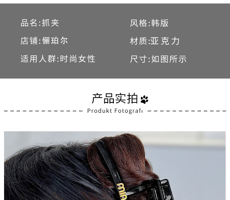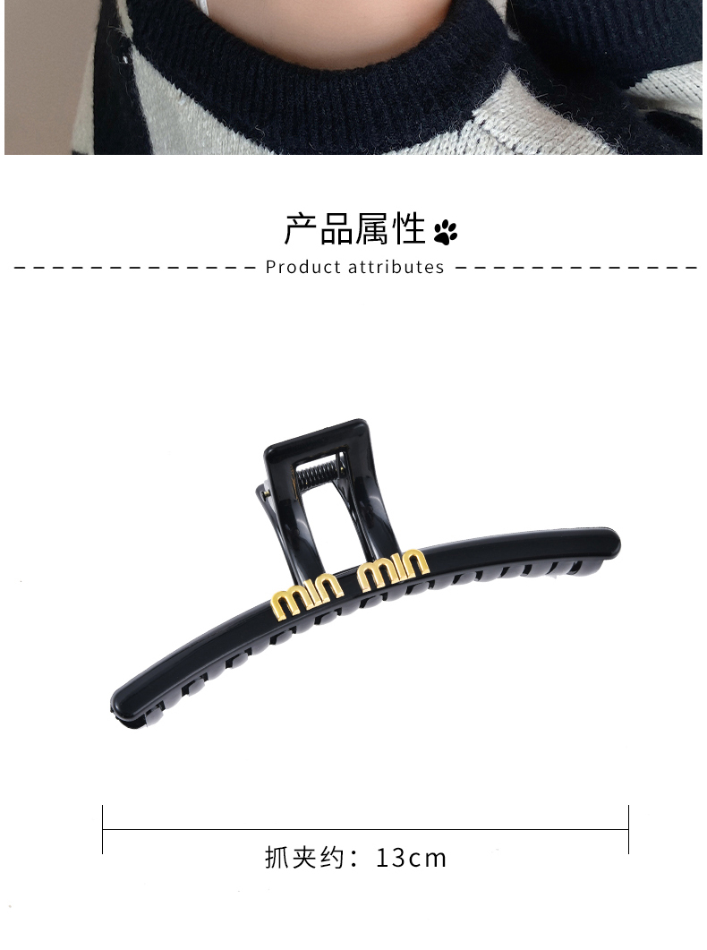 LBE-dz656感黑色抓夹m字母大号后脑勺盘发夹女发量多亚克力鲨鱼夹