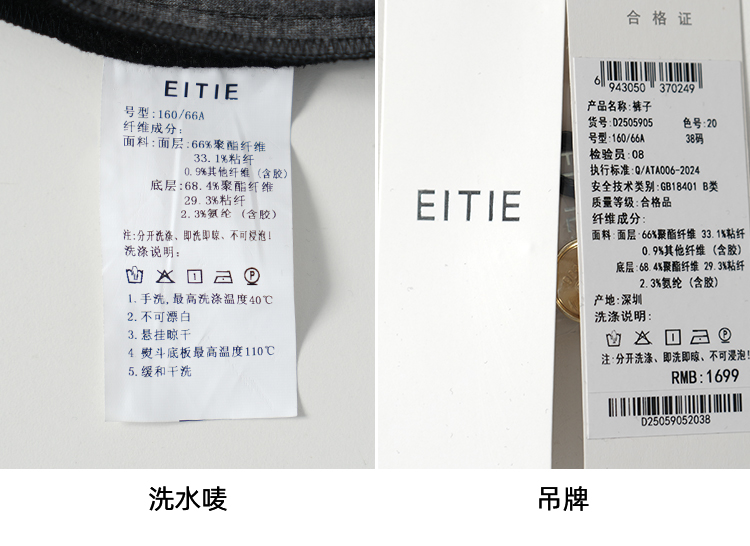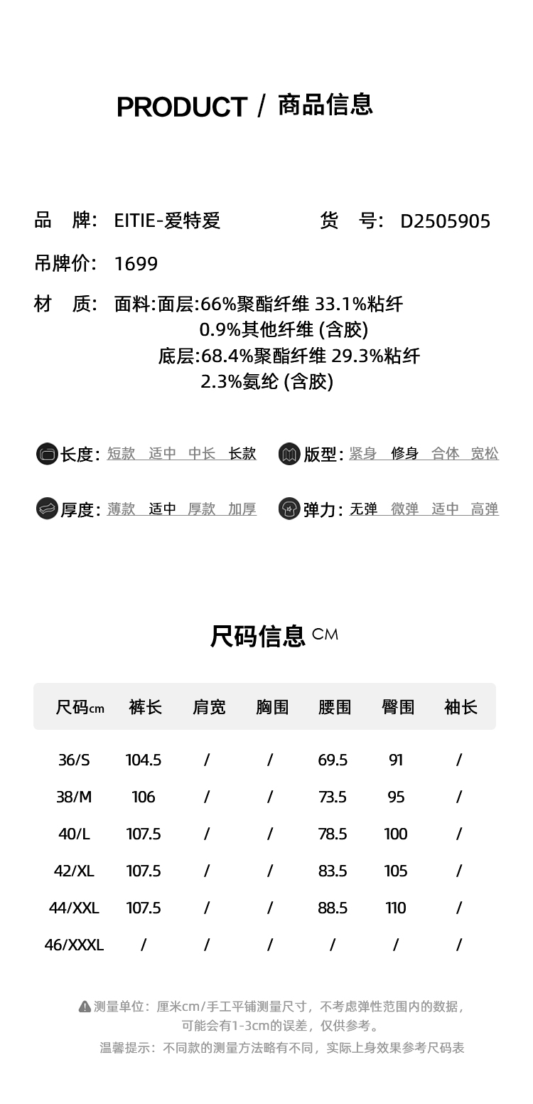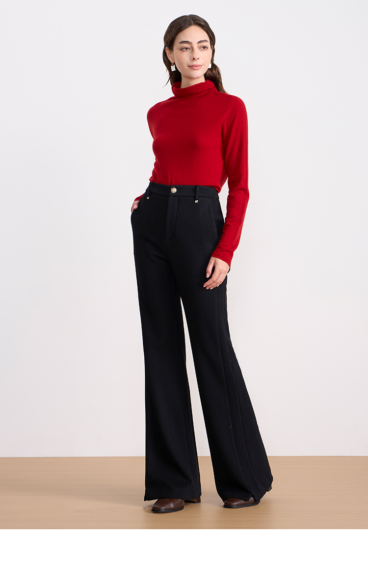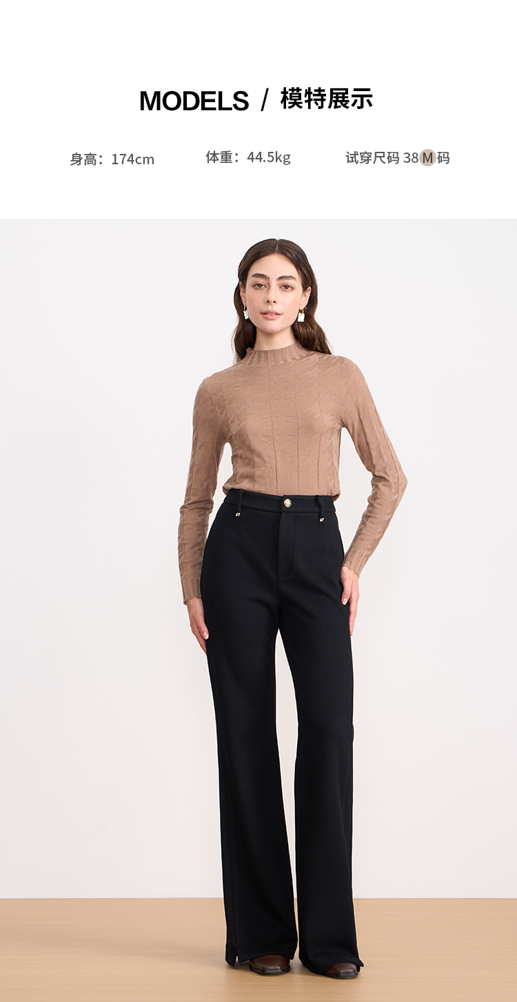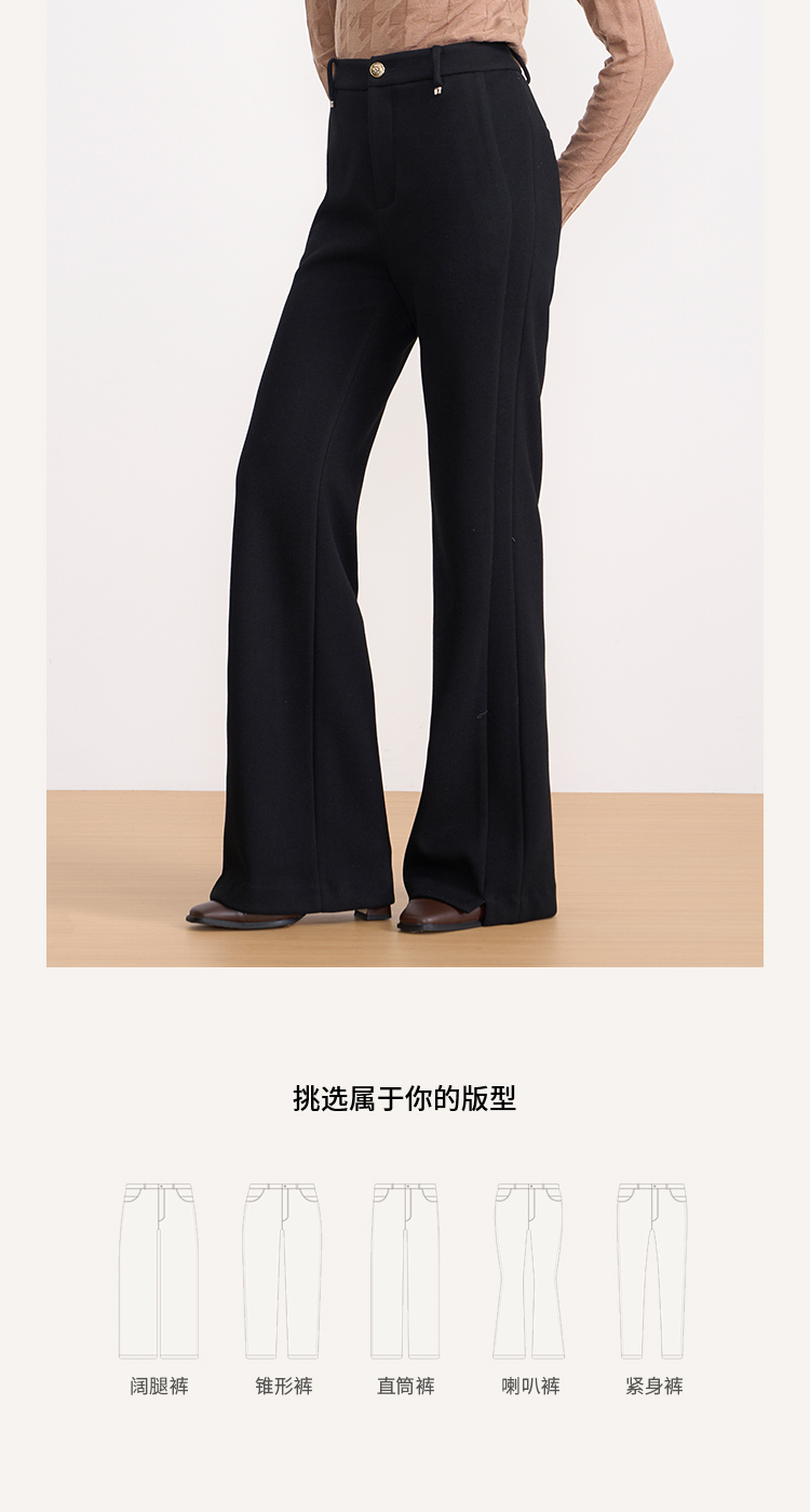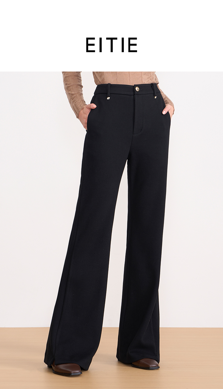 EITIE爱特爱高腰微喇直筒显瘦通勤精致休闲裤2025秋冬新款长裤D2505905