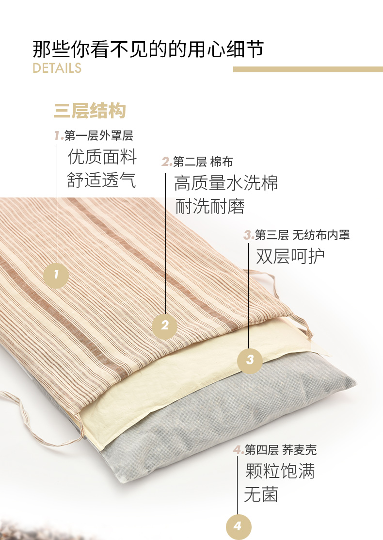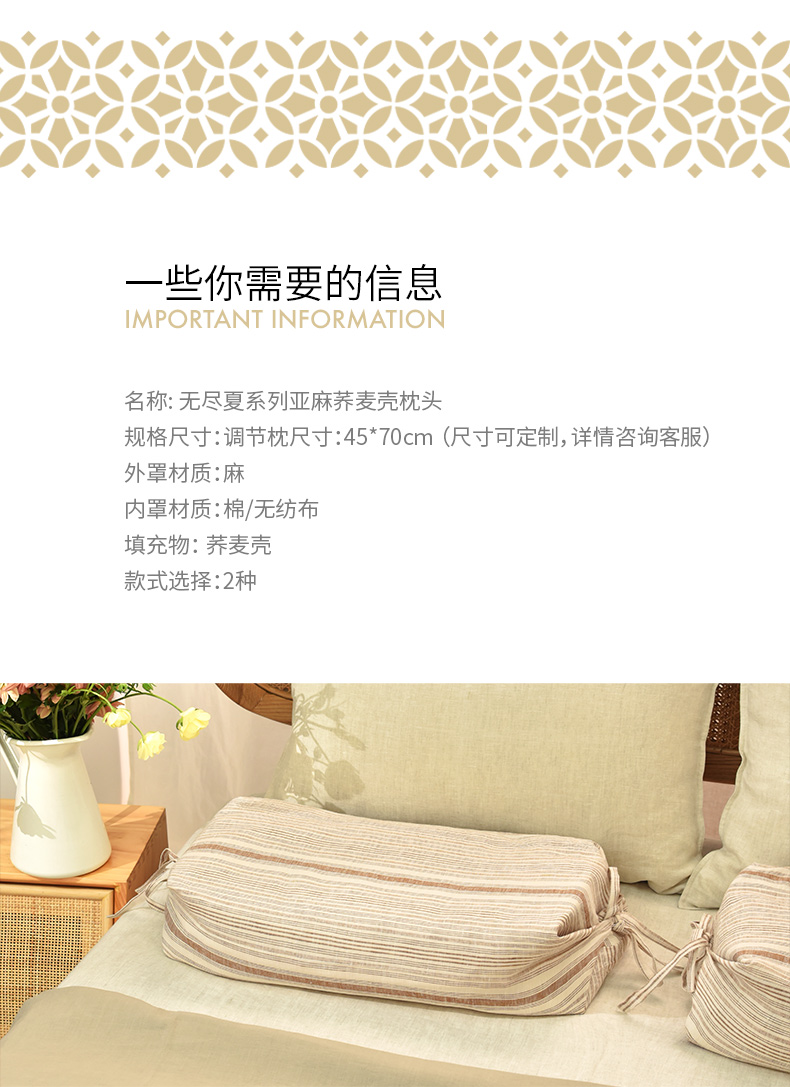 无尽夏系列亚麻荞麦壳枕头高端全荞麦壳成人护颈枕