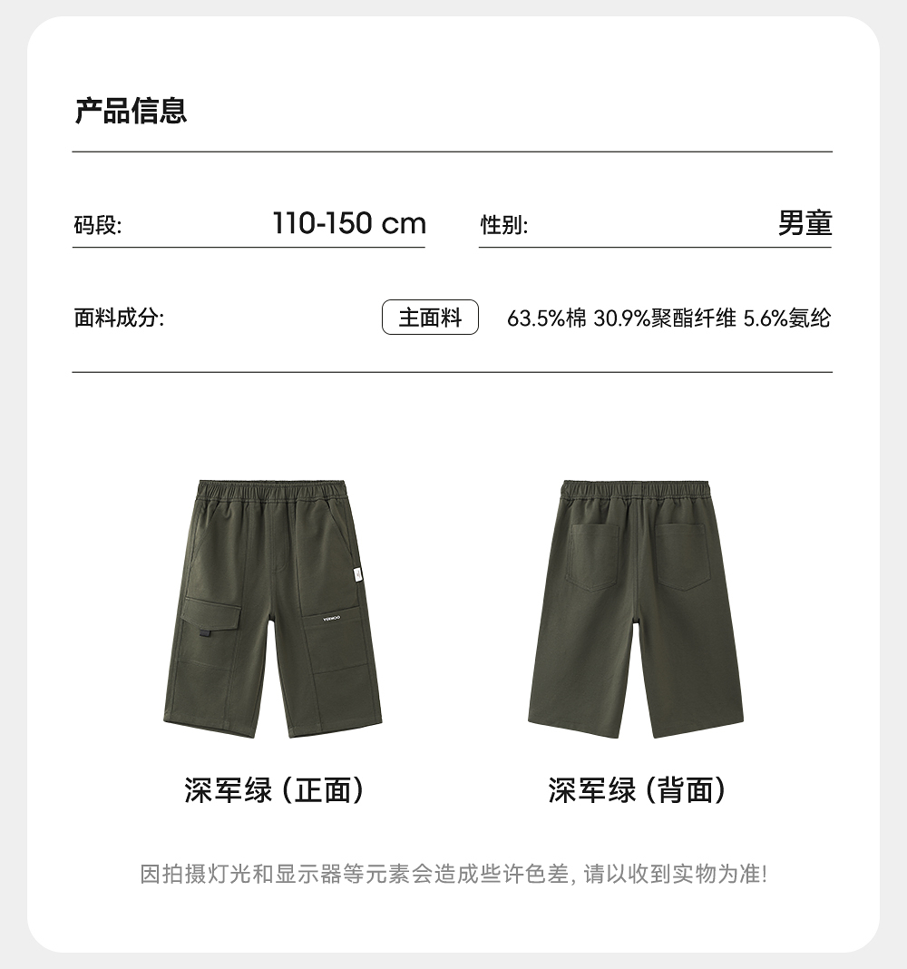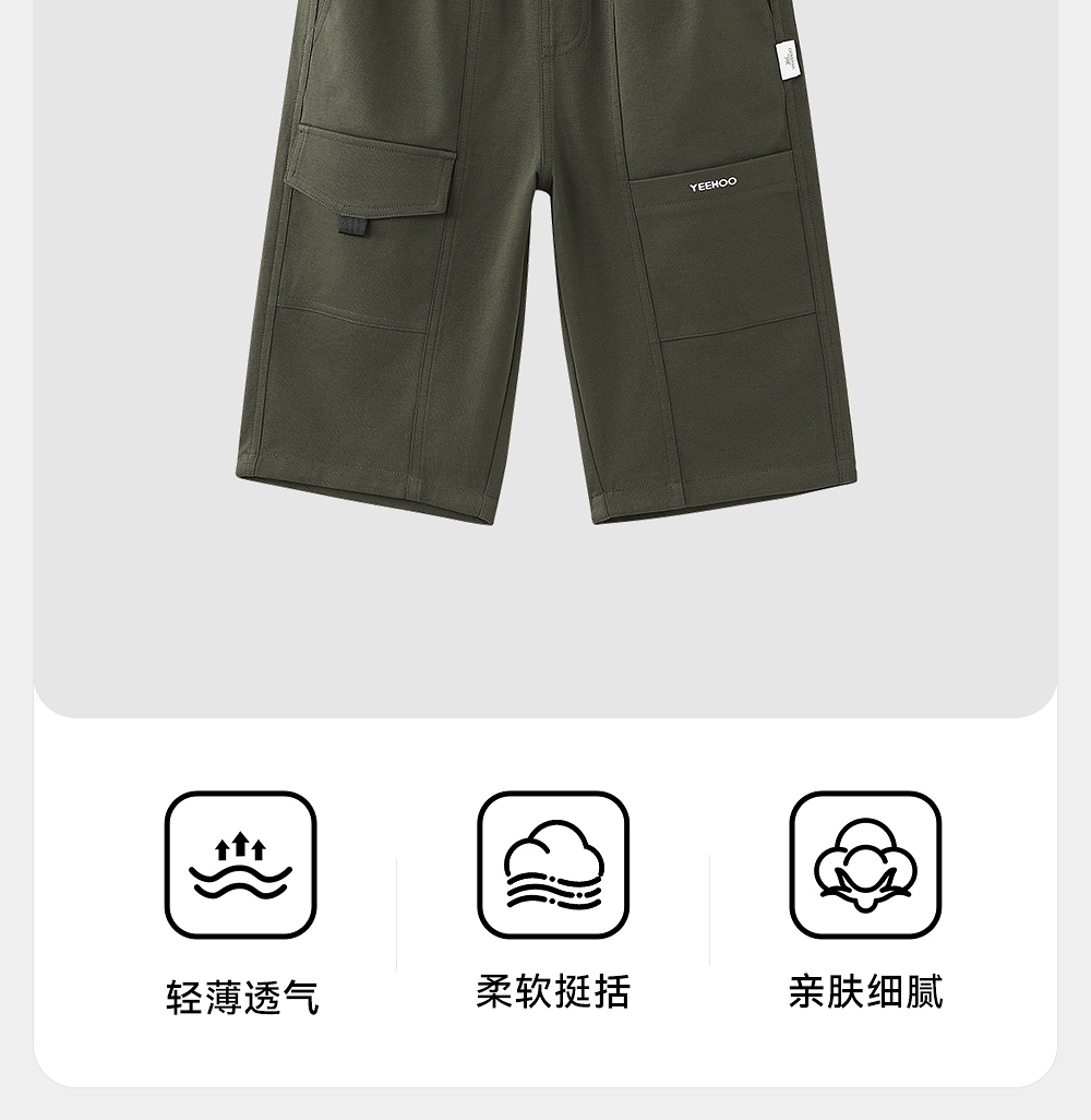 【商场同款】英氏儿童裤子夏季休闲时尚男童中裤透气工装裤子新款