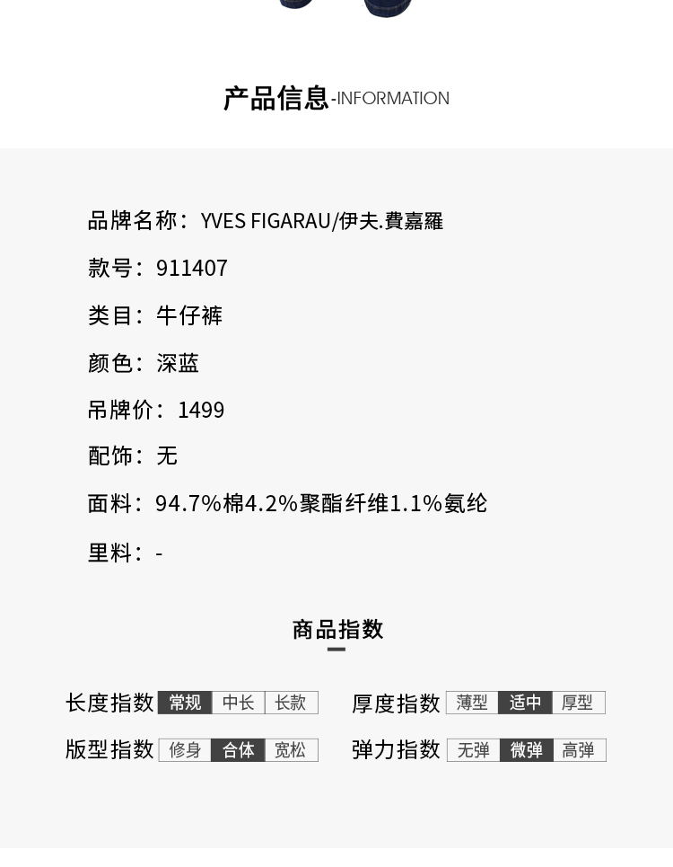 YvesFigarau伊夫·费嘉罗911407牛仔裤