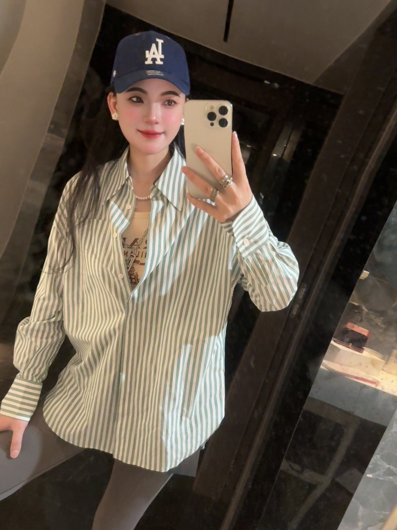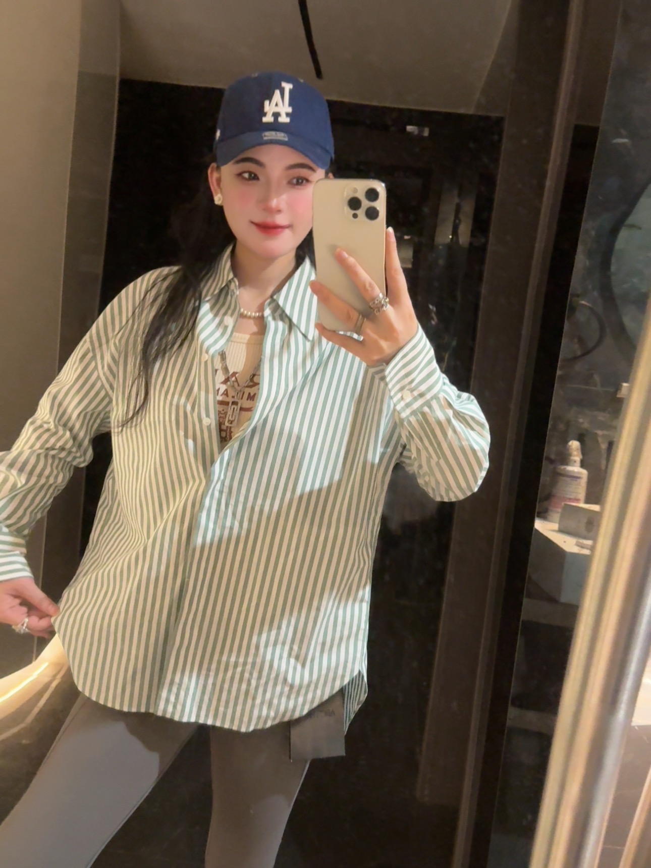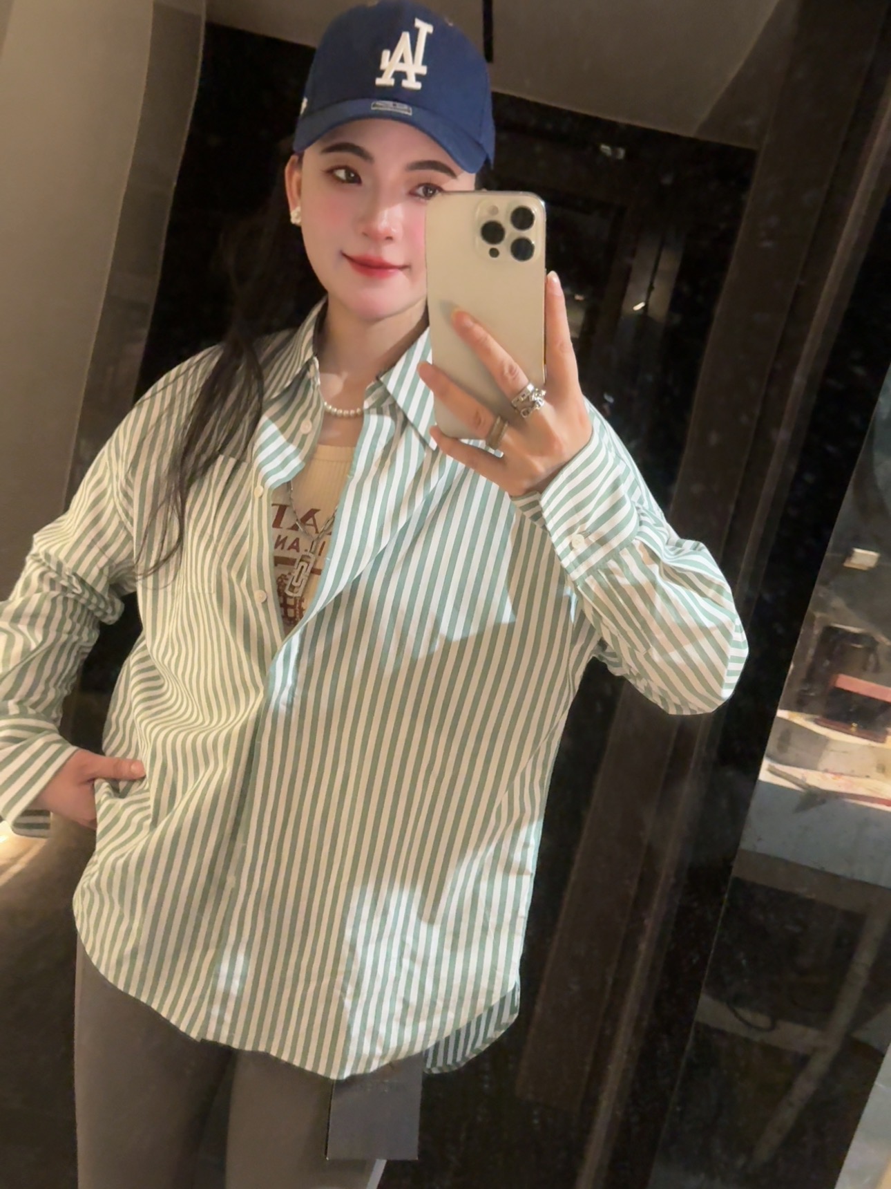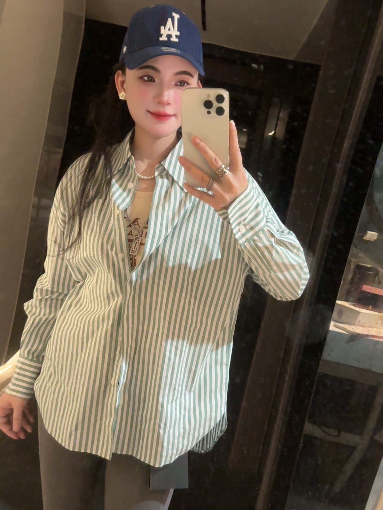 深圳南油高定经典条纹成‼️!设计款条纹衬衫!这细节真的会谢✨ 💚蓝白+绿白两个配色直接戳中春夏审美,拿到手质感直接惊了——标签100%棉,摸起来是那种软乎乎但又有挺括感的棉料,不会软塌塌贴在身上,通勤/休闲穿都撑得起气质~😌 先夸细节!领口内侧藏了黑色小珠链装饰,图片放大看!低调又有点小精致,不是那种烂大街的基础款;袖口是双纽扣设计,想松想紧都能调,对胳膊粗的姐妹超友好! 最绝的是门襟的隐形扣设计!扣好之后完全看不到纽扣痕迹,正面看就是干净利落的竖条纹,强迫症狂喜!后背还有拼接剪裁,不会像普通衬衫那样贴背显壮,微宽松的版型刚好藏住小肚腩,梨形身材套个牛仔裤就很绝~👖 两个颜色都很百搭:蓝白是清爽挂的,搭西装裤就是职场轻熟;绿白更温柔,配半裙或者牛仔裤都很减龄!洗了一次没怎么变形,全棉面料透气到夏天穿也不闷,能买到这质感真的血赚!40码110斤以内⚠️42码130斤以内⚠️女款哈!刚需搭配品