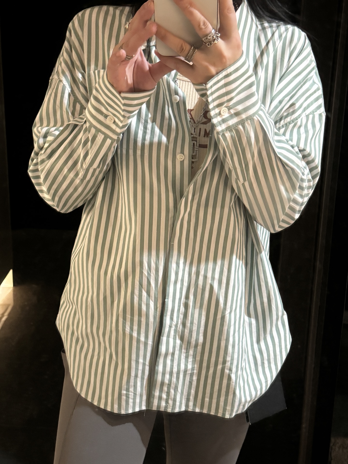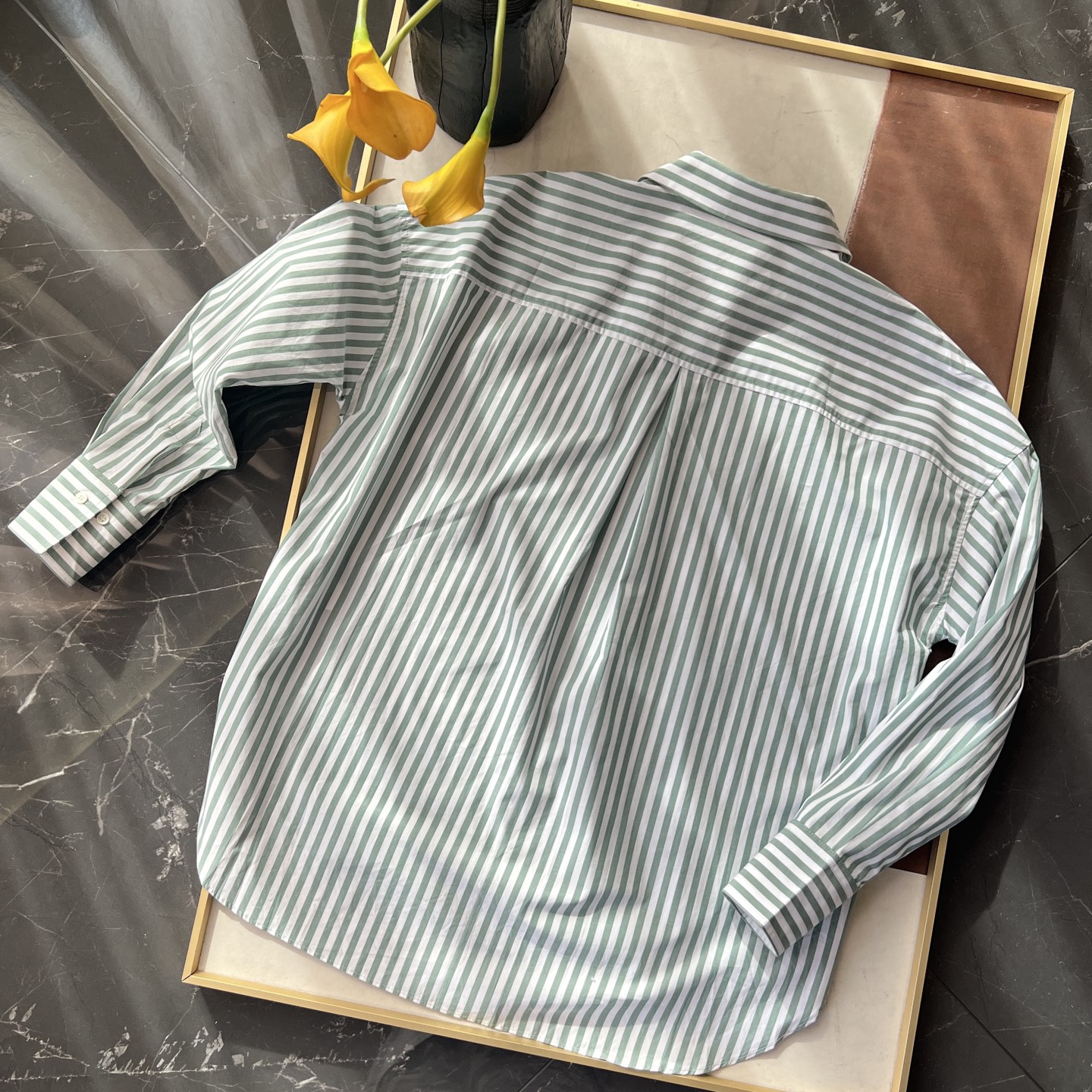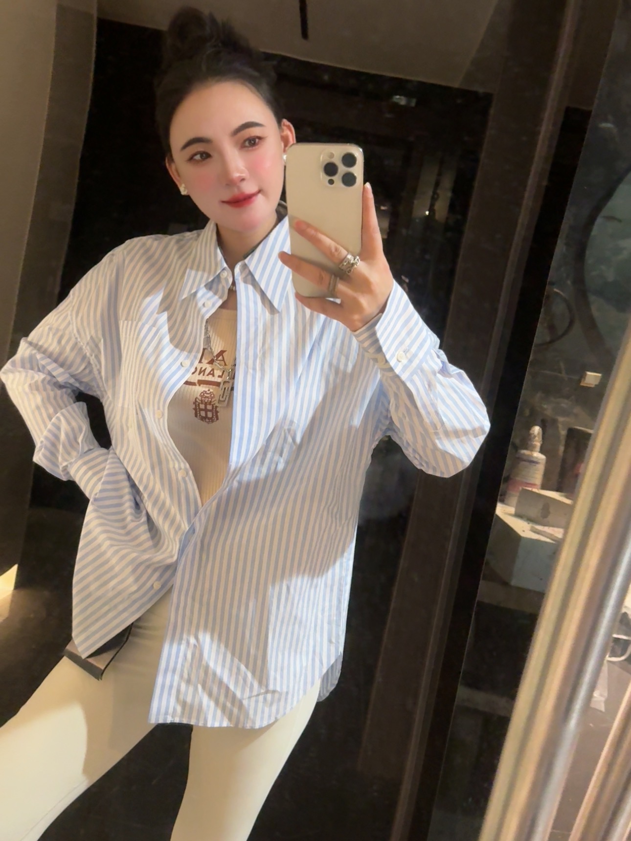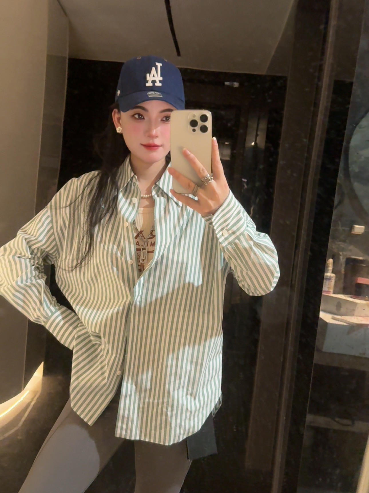 深圳南油高定经典条纹成‼️!设计款条纹衬衫!这细节真的会谢✨ 💚蓝白+绿白两个配色直接戳中春夏审美,拿到手质感直接惊了——标签100%棉,摸起来是那种软乎乎但又有挺括感的棉料,不会软塌塌贴在身上,通勤/休闲穿都撑得起气质~😌 先夸细节!领口内侧藏了黑色小珠链装饰,图片放大看!低调又有点小精致,不是那种烂大街的基础款;袖口是双纽扣设计,想松想紧都能调,对胳膊粗的姐妹超友好! 最绝的是门襟的隐形扣设计!扣好之后完全看不到纽扣痕迹,正面看就是干净利落的竖条纹,强迫症狂喜!后背还有拼接剪裁,不会像普通衬衫那样贴背显壮,微宽松的版型刚好藏住小肚腩,梨形身材套个牛仔裤就很绝~👖 两个颜色都很百搭:蓝白是清爽挂的,搭西装裤就是职场轻熟;绿白更温柔,配半裙或者牛仔裤都很减龄!洗了一次没怎么变形,全棉面料透气到夏天穿也不闷,能买到这质感真的血赚!40码110斤以内⚠️42码130斤以内⚠️女款哈!刚需搭配品