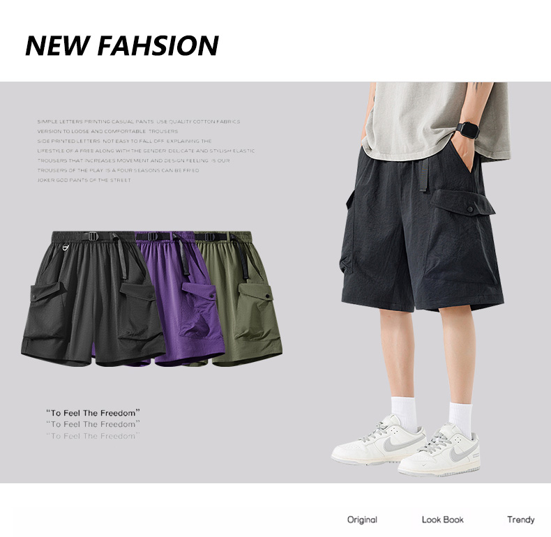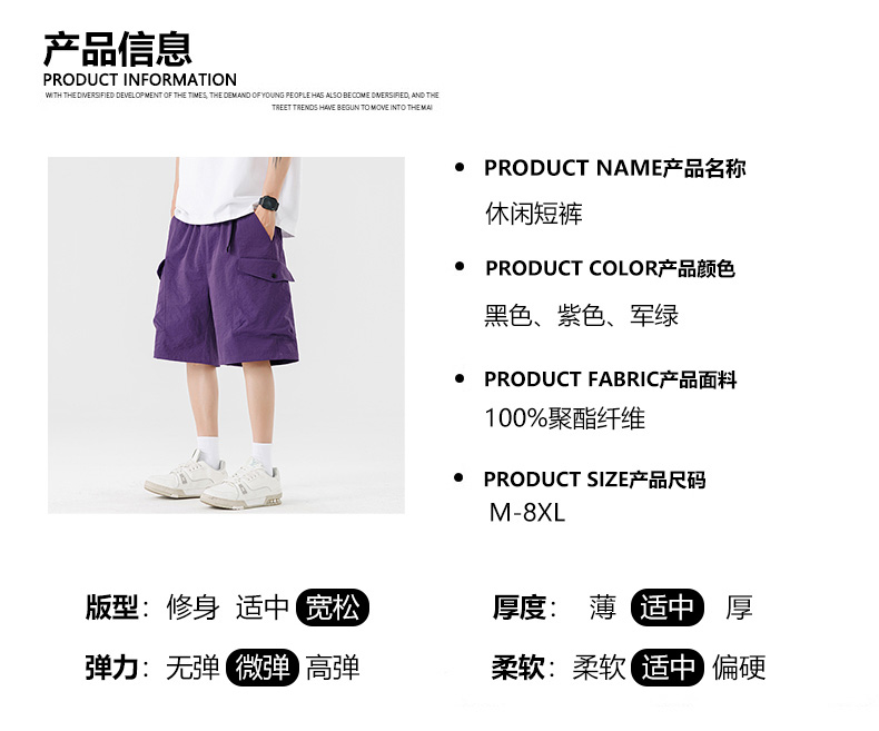 【DSL】大依优型大码短裤五分裤大号工装裤子弹力透气加肥加大夏季松紧腰宽松运动沙滩裤