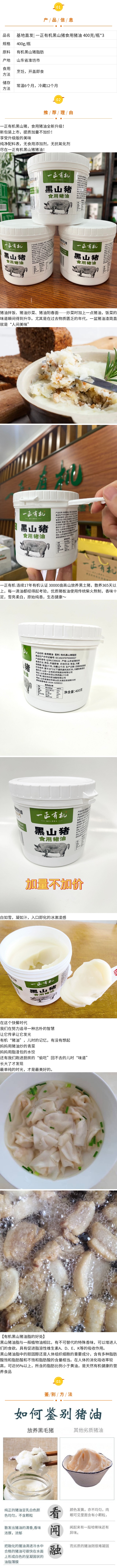基地直发| 一正有机黑山猪食用猪油 400克/瓶*3
