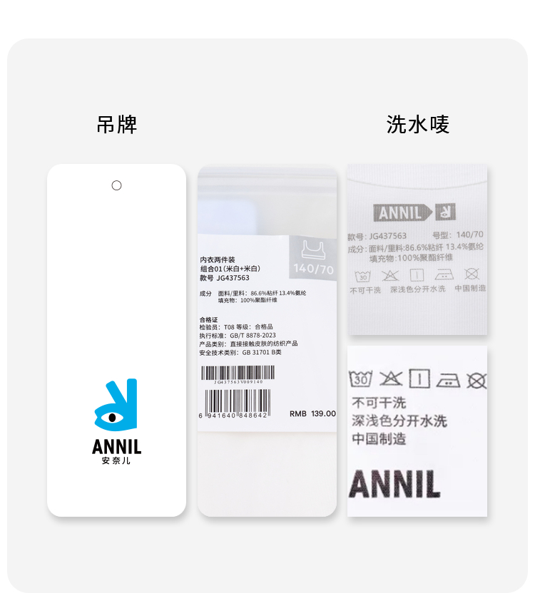 【7A抗菌家居】女童无痕隐形内衣两件装新款安奈儿童装实体店同款JG437563