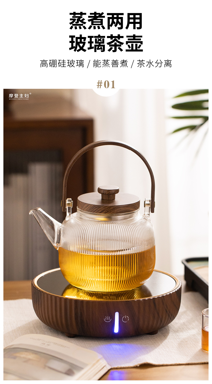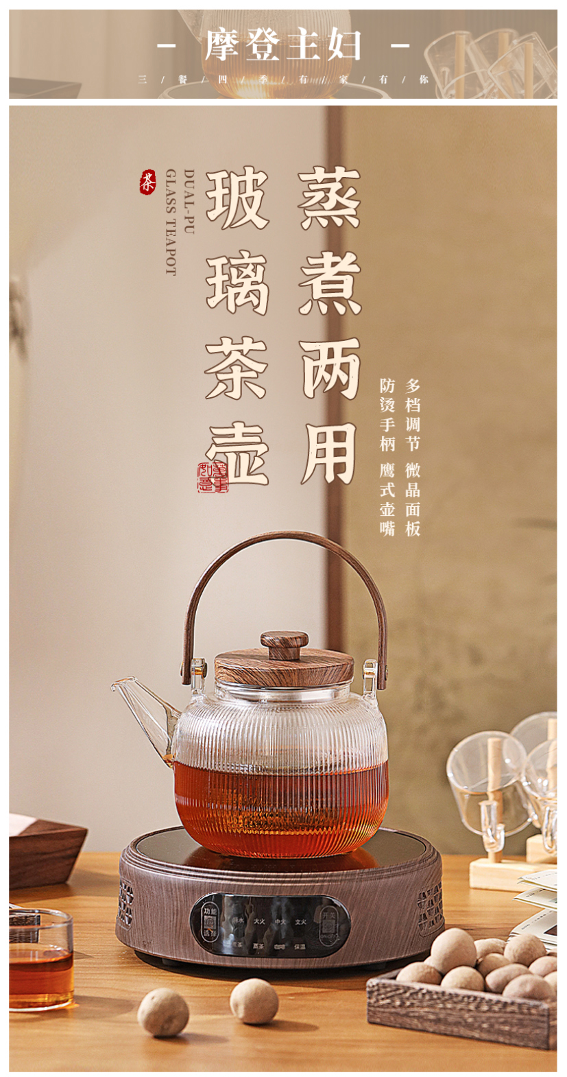 摩登主妇围炉煮茶套装2025新款电陶炉蒸煮茶壶器具全套玻璃烧水壶