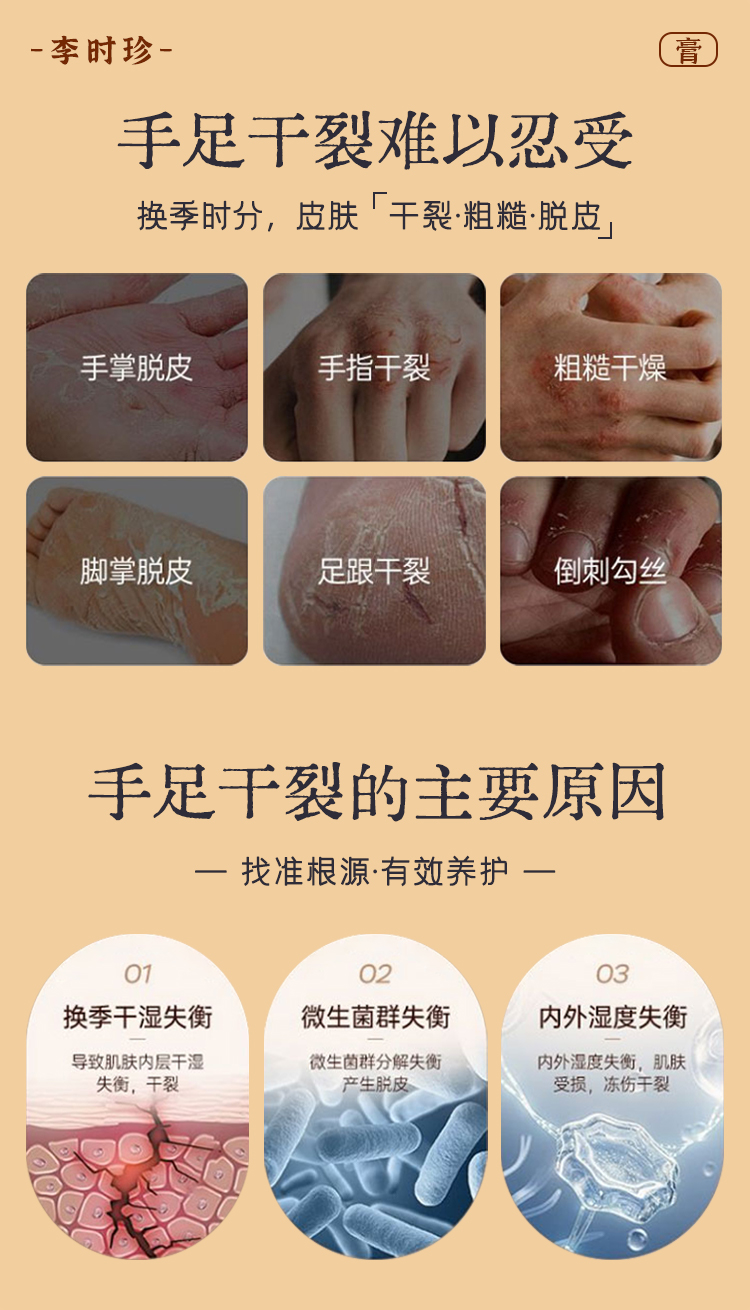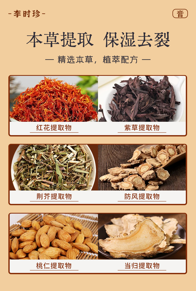 李时珍出品红花皲裂保健膏 本草提取 植萃配方 滋润保湿 修护去裂