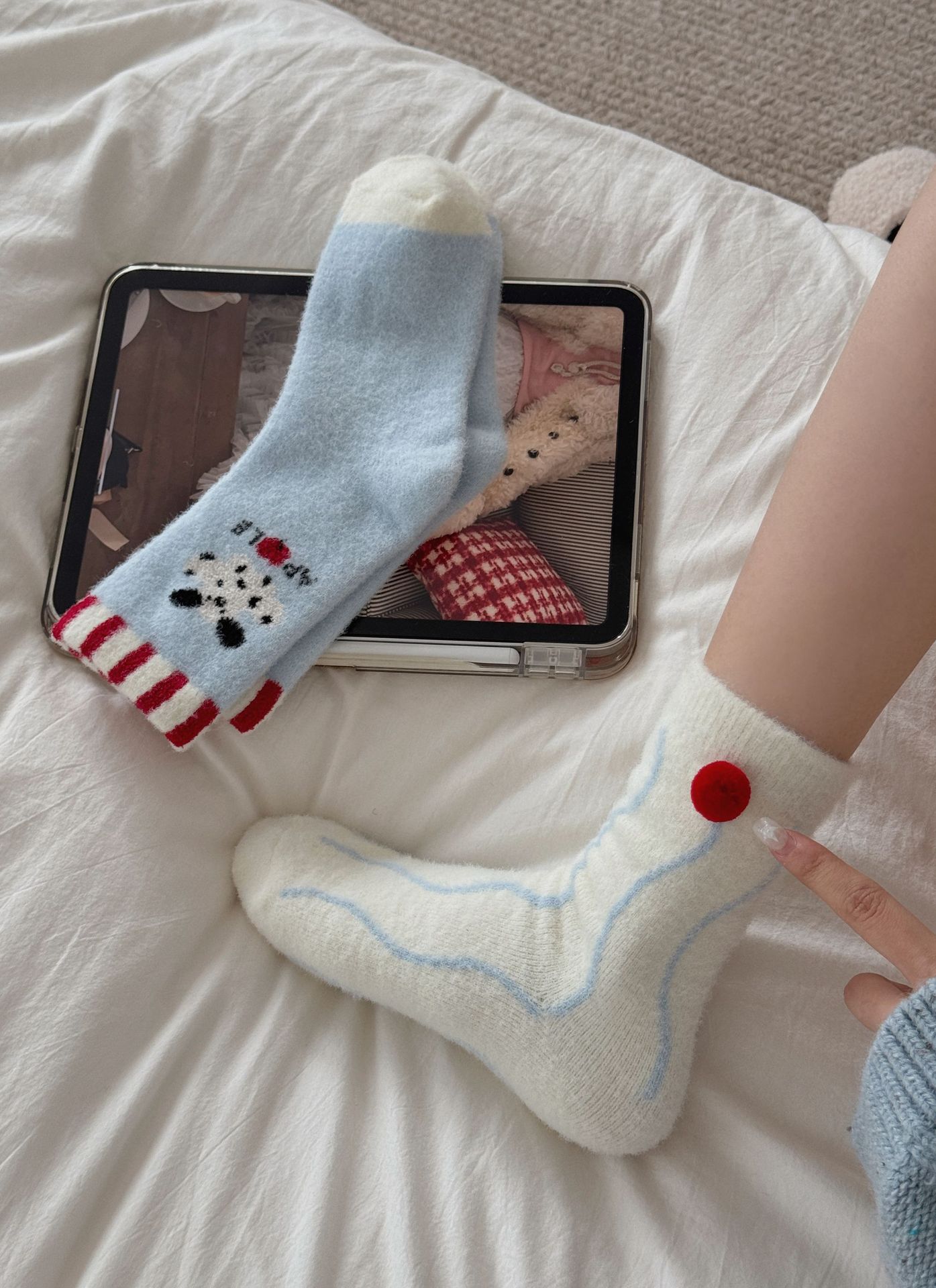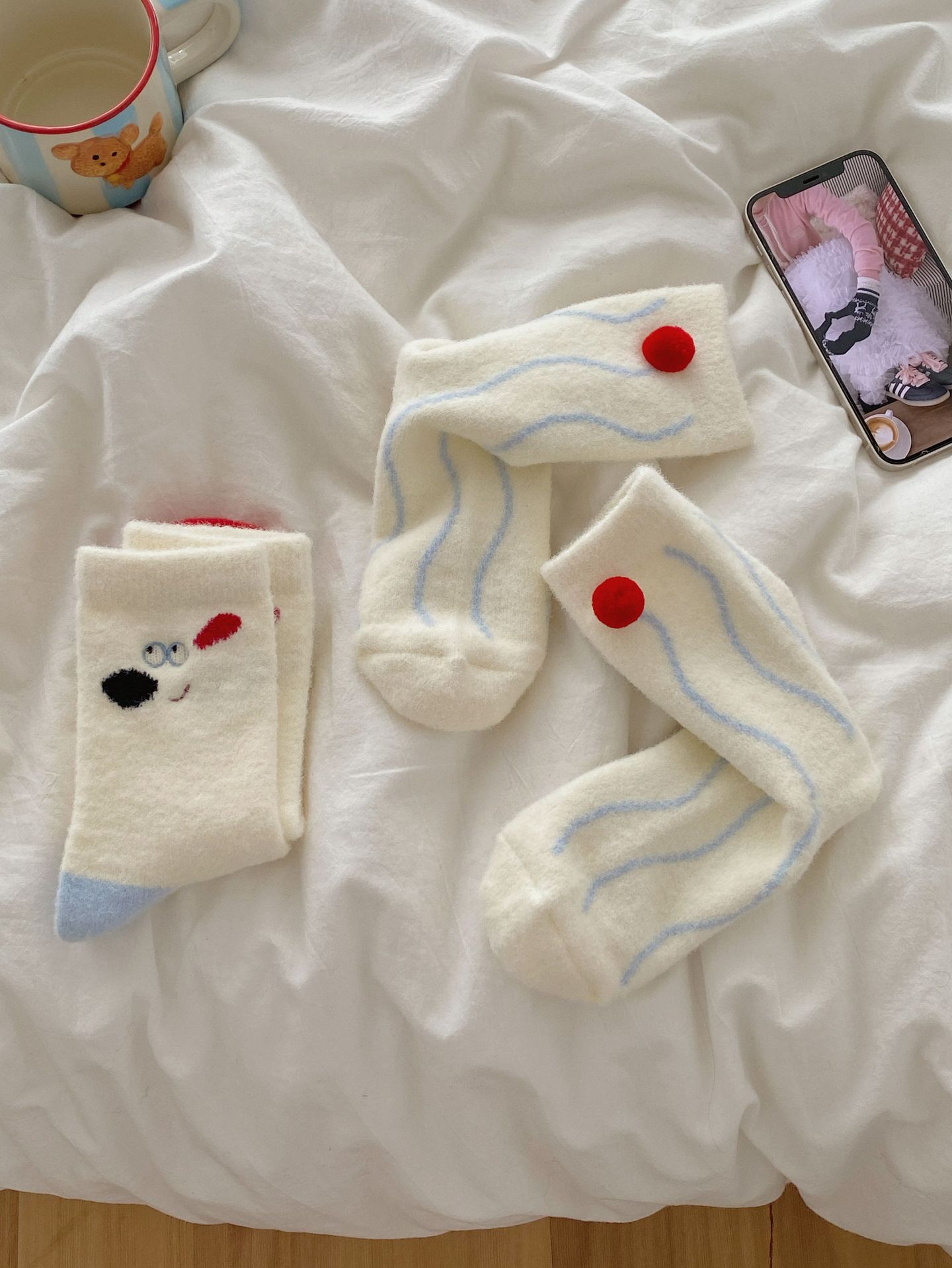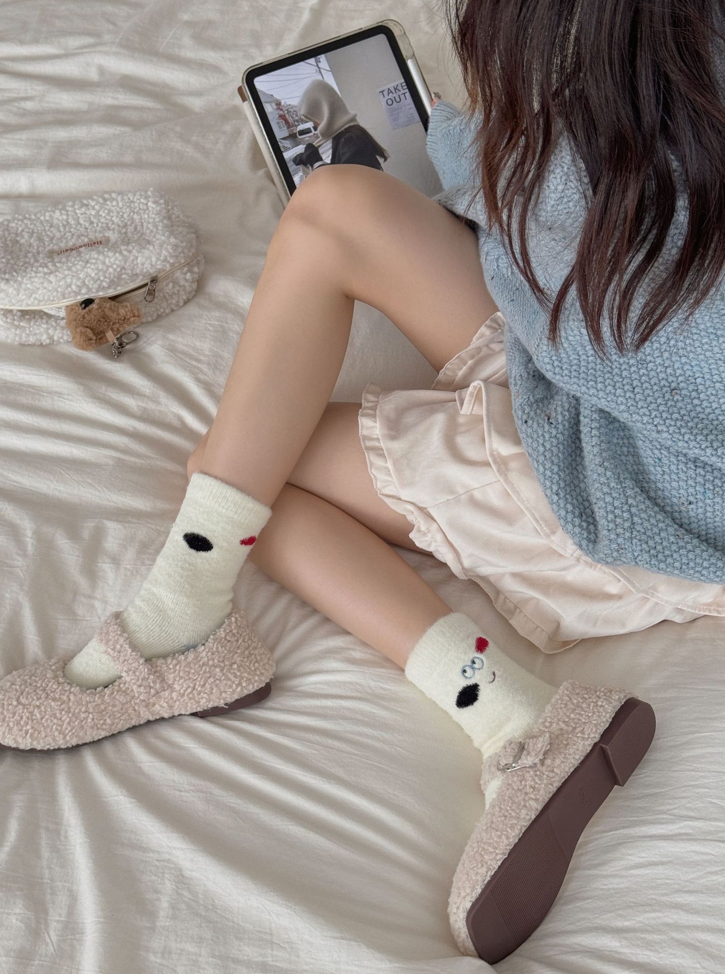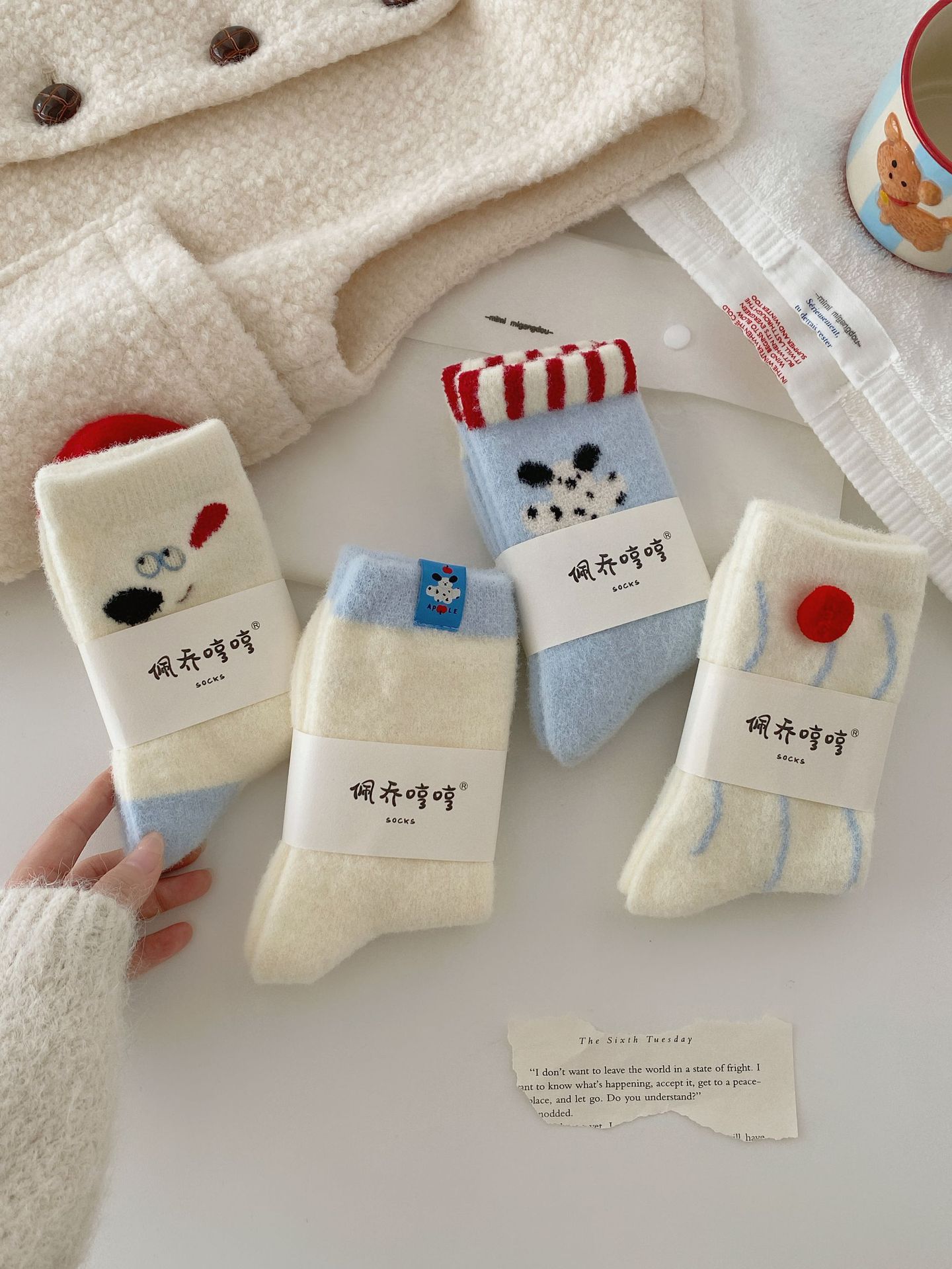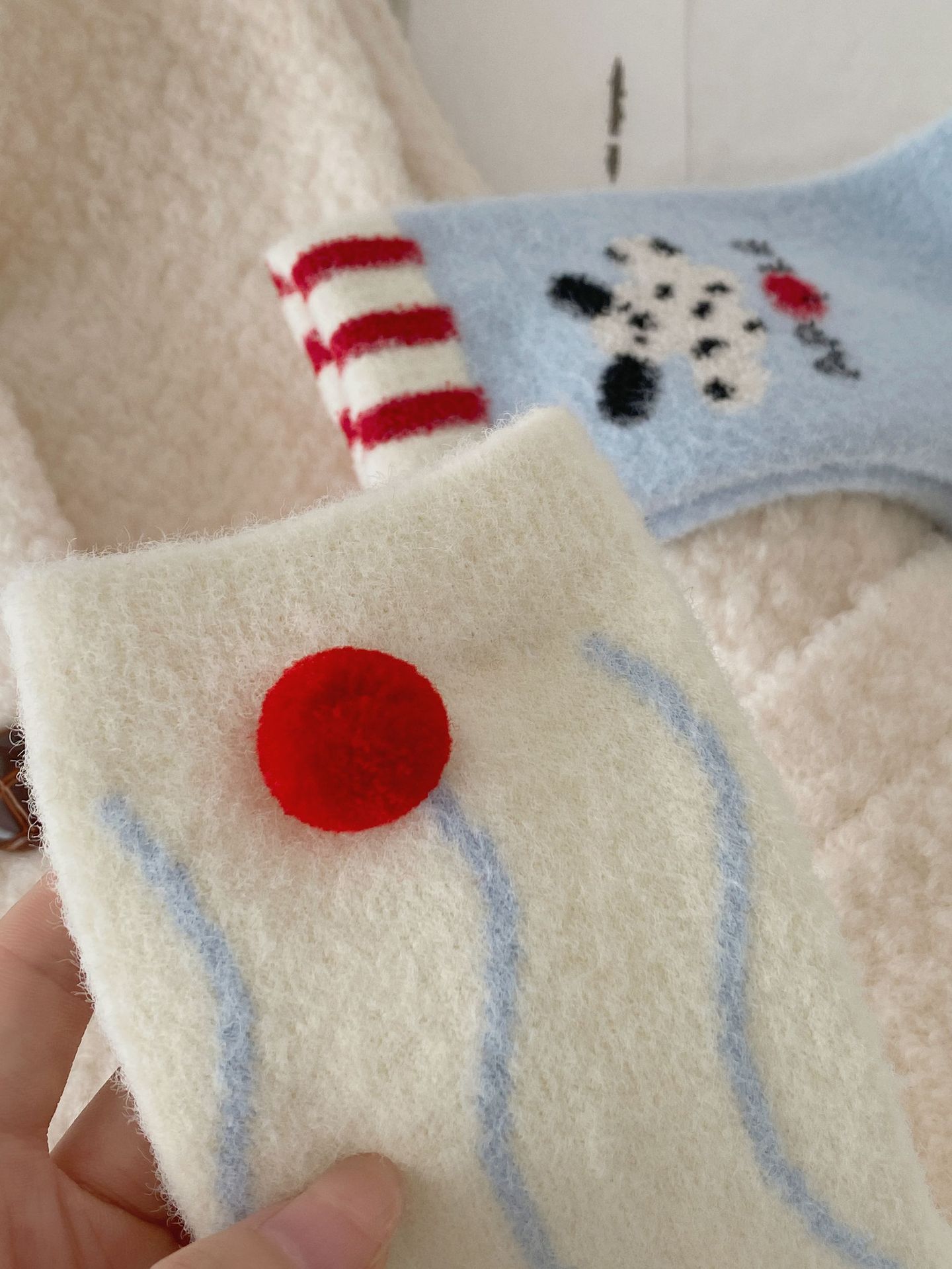 【柔软亲肤❗️锁温保暖】软糯澳绒袜子小狗毛球女士布标中筒球球秋冬加绒加厚保暖中筒袜。jb