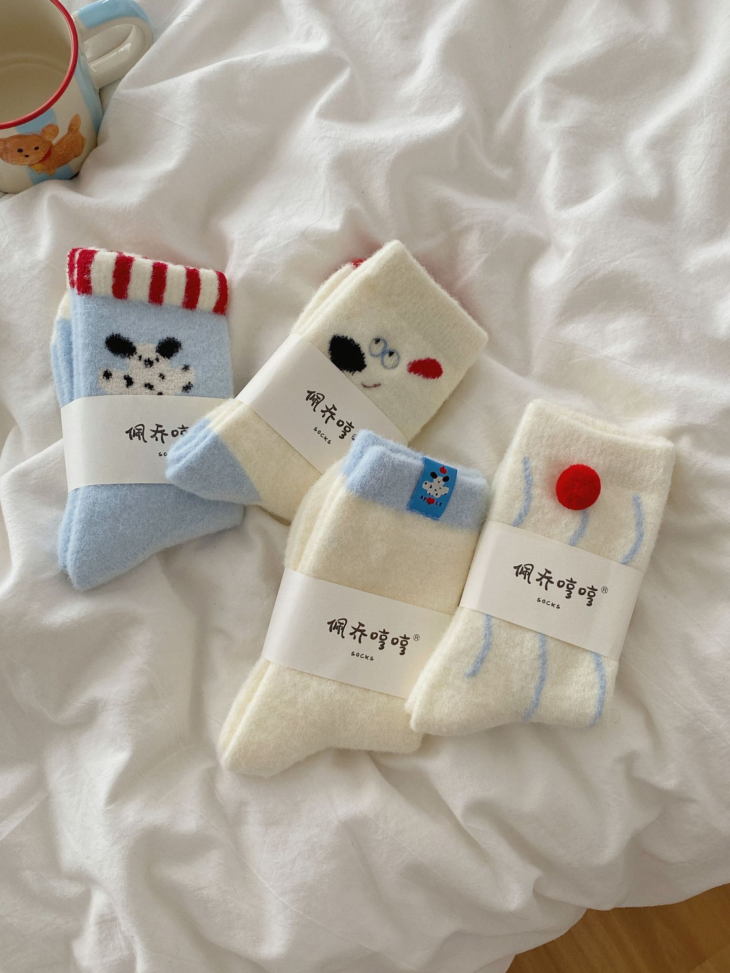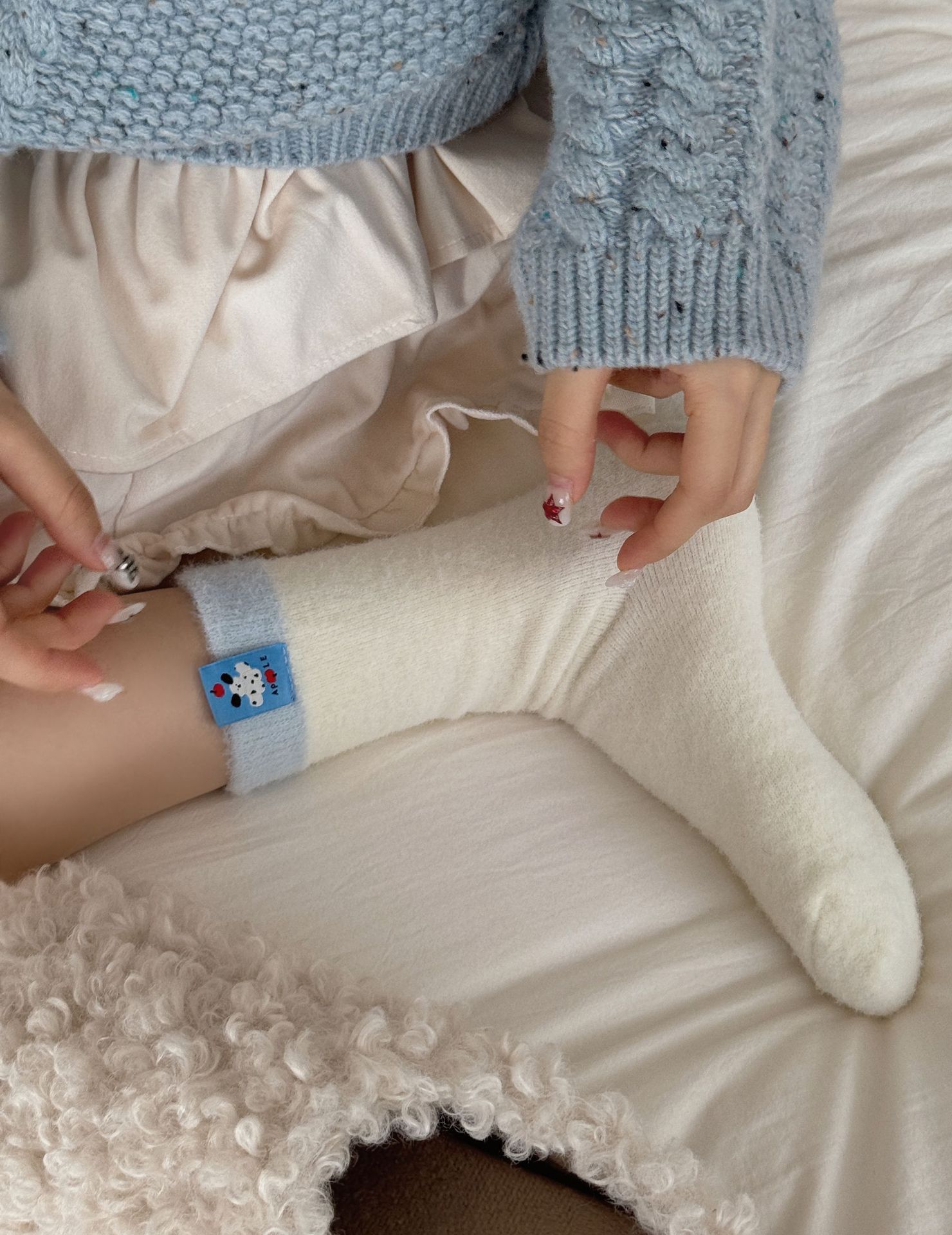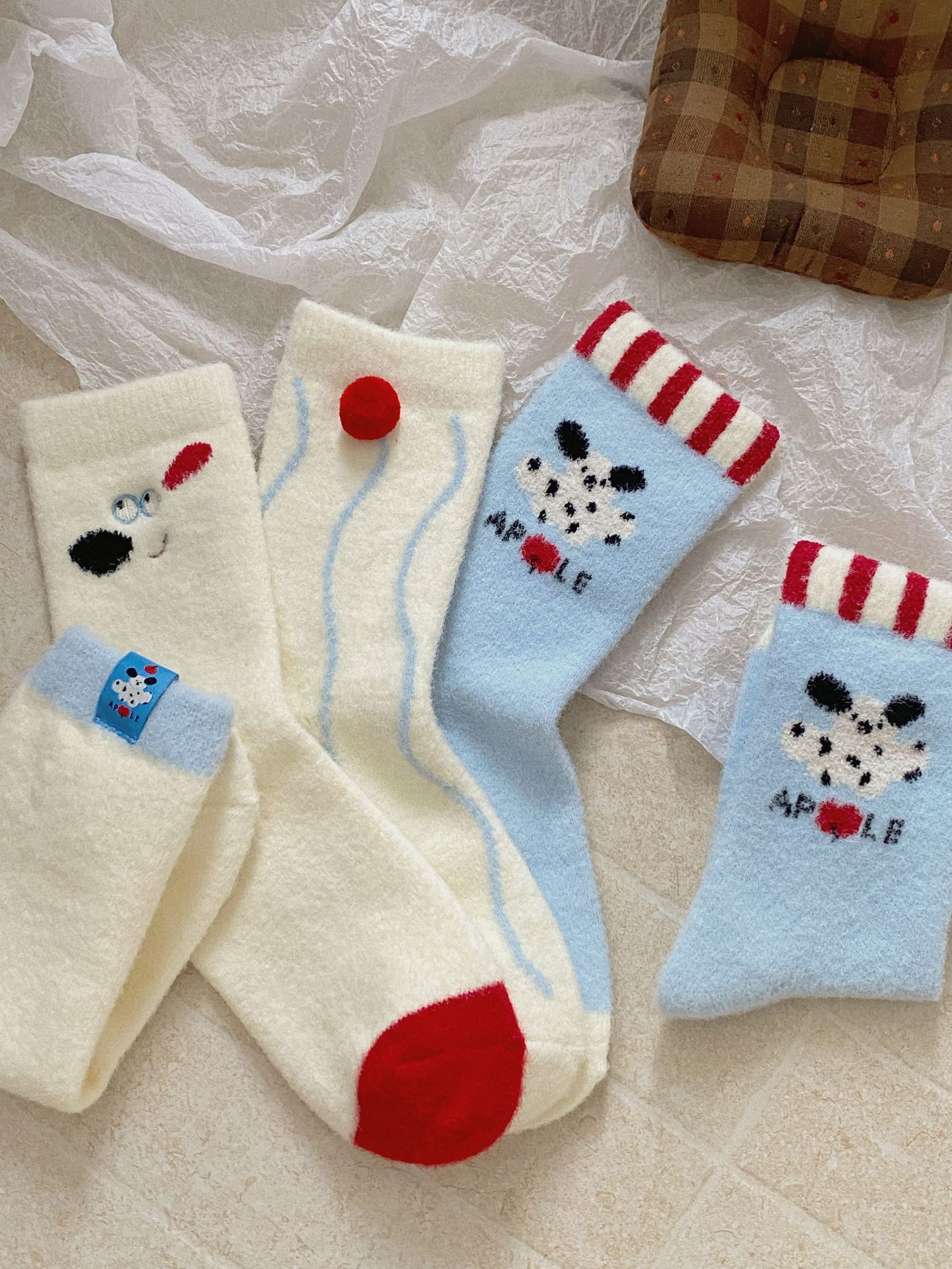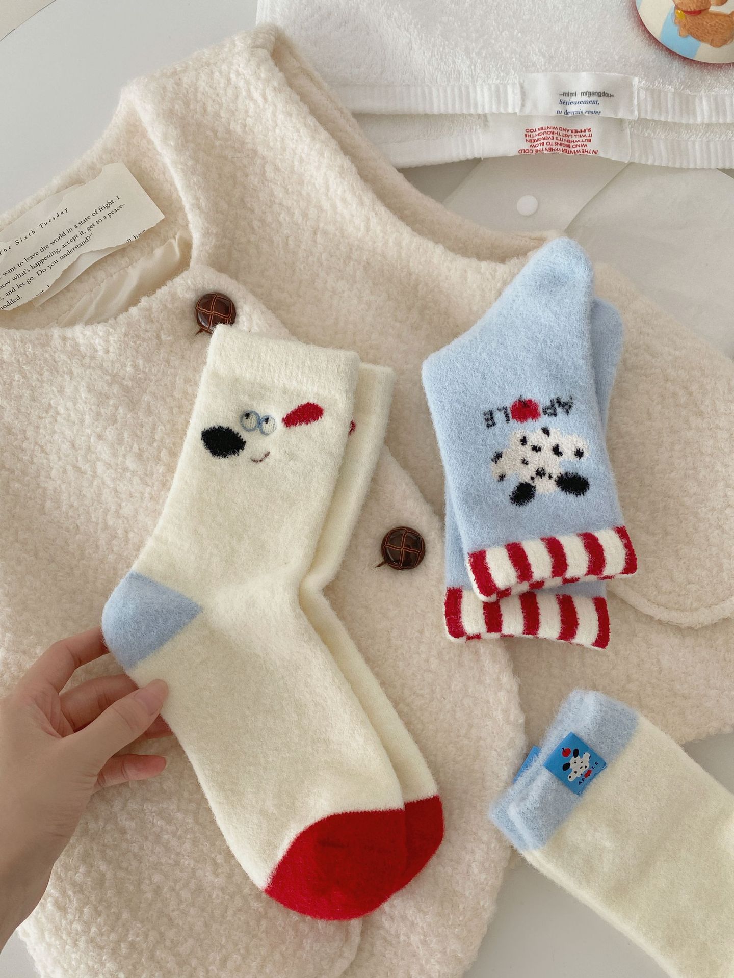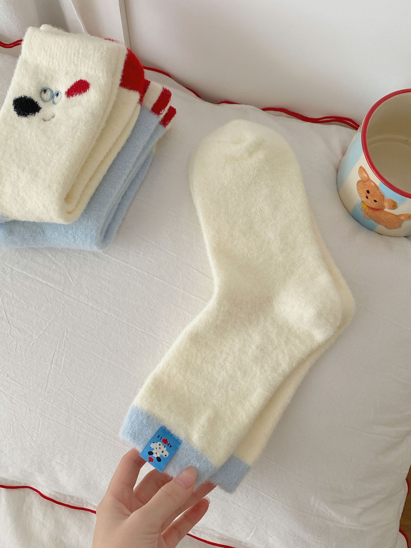【柔软亲肤❗️锁温保暖】软糯澳绒袜子小狗毛球女士布标中筒球球秋冬加绒加厚保暖中筒袜。jb