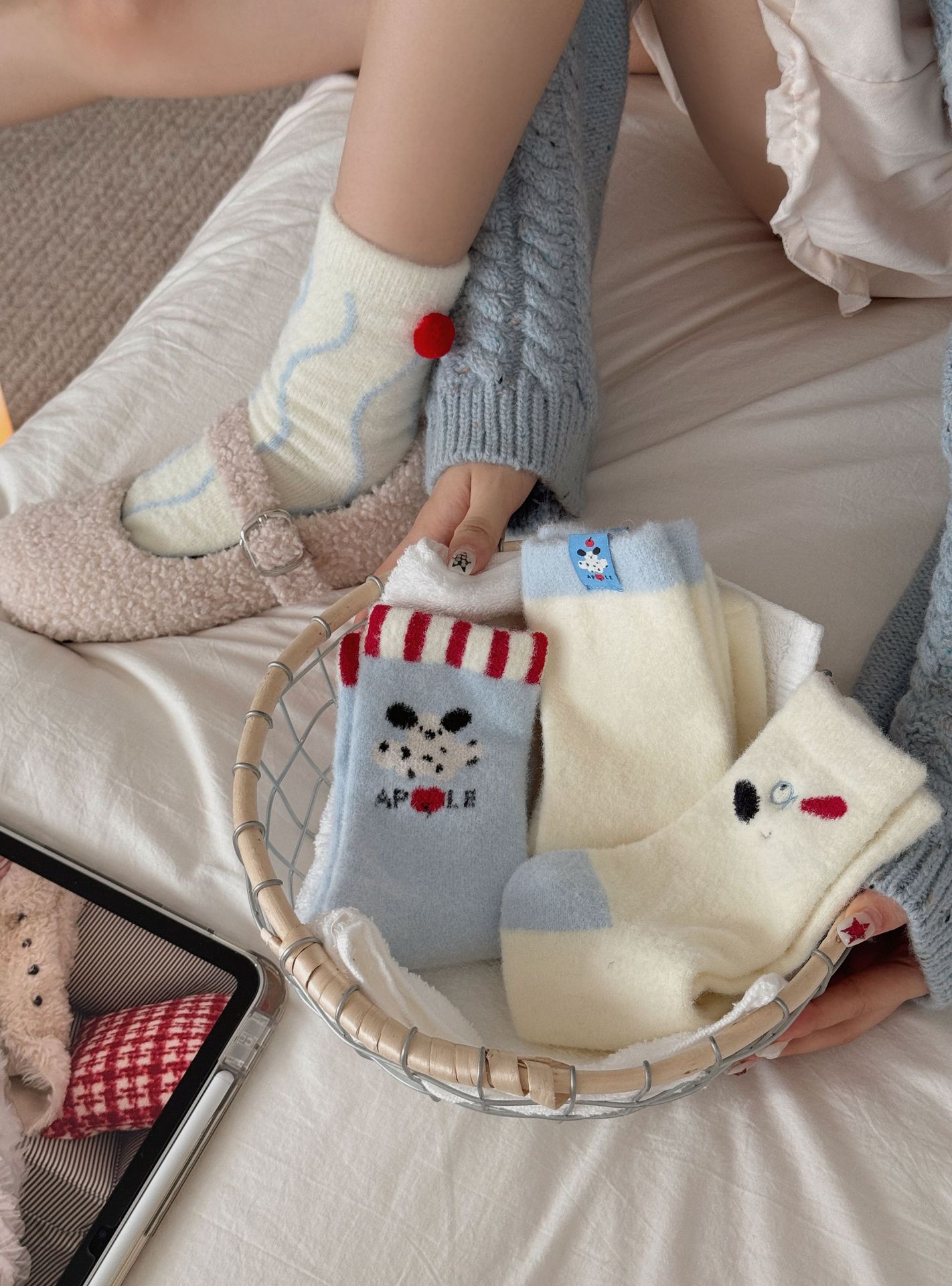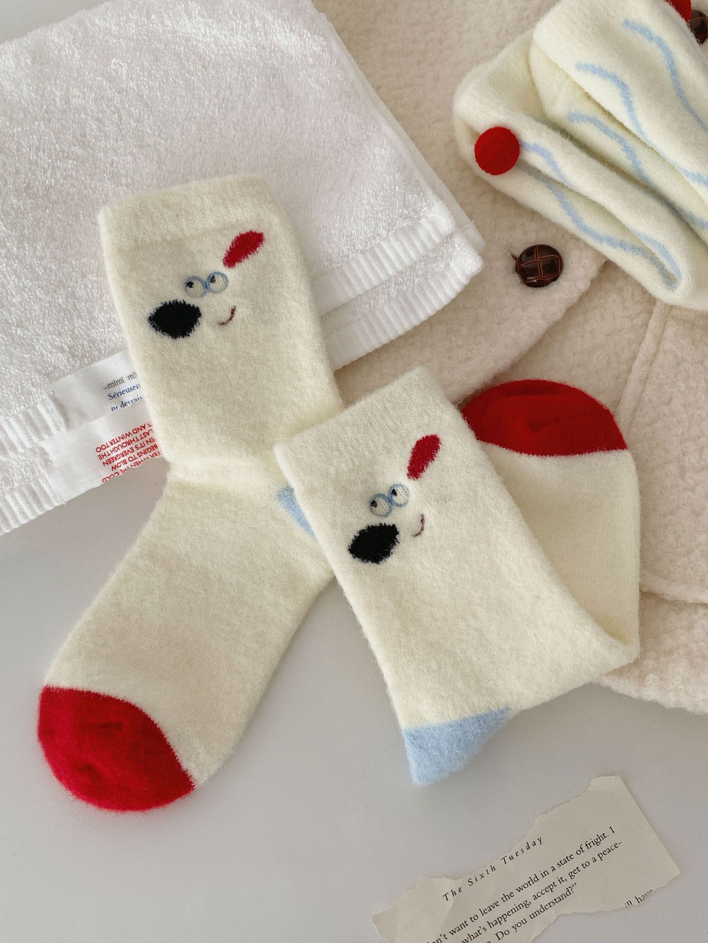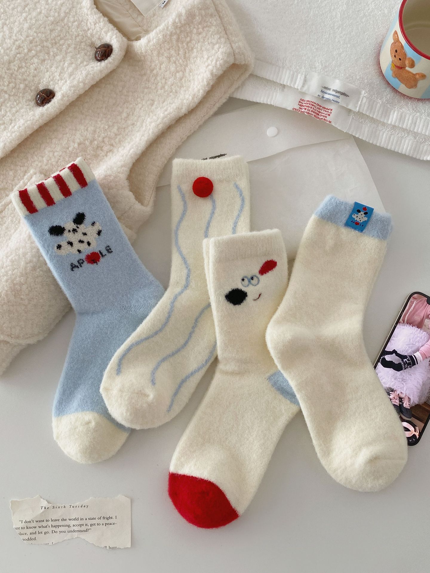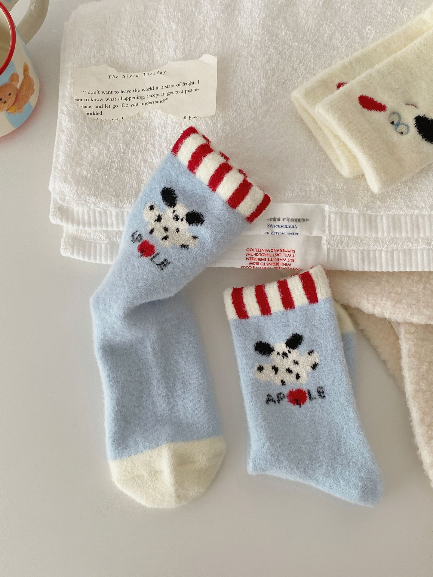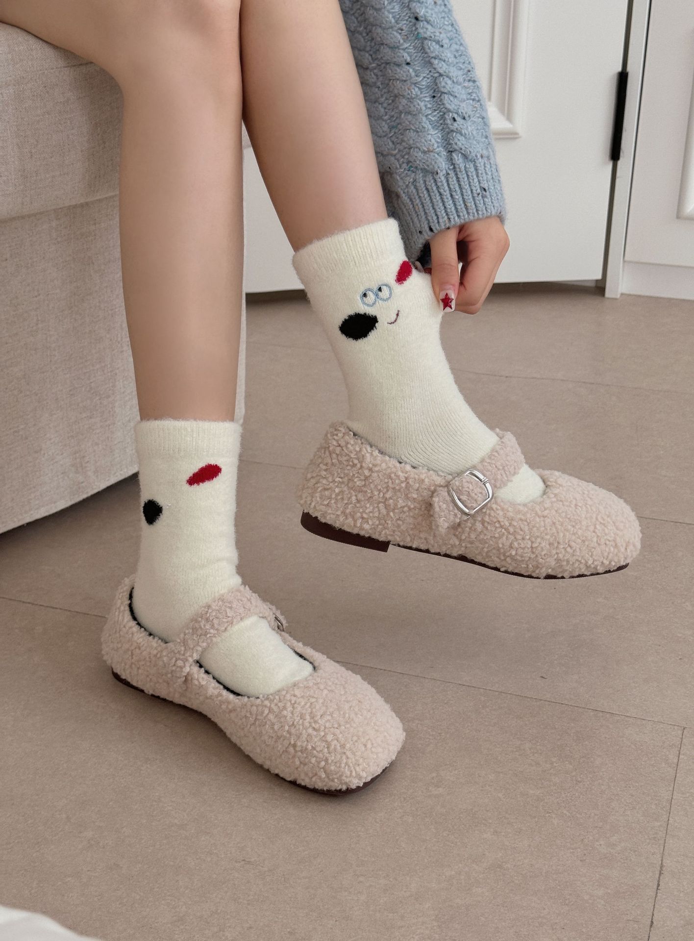 【柔软亲肤❗️锁温保暖】软糯澳绒袜子小狗毛球女士布标中筒球球秋冬加绒加厚保暖中筒袜。jb