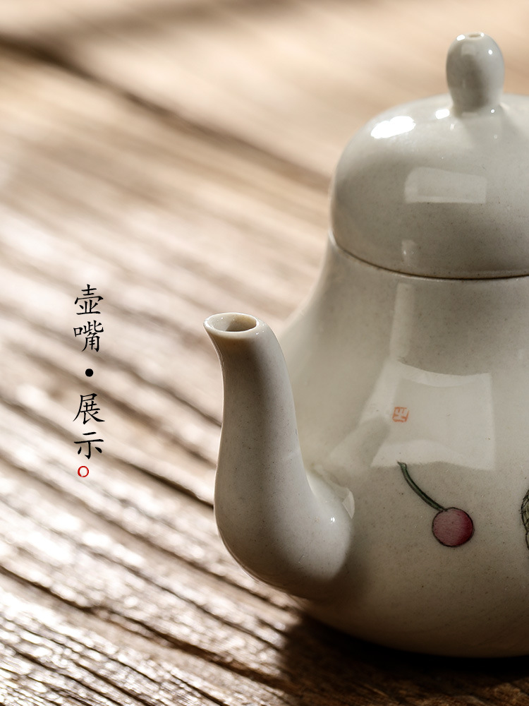 「景德镇手拉坯茶壶」功夫茶茶具壶 草木灰釉手绘樱桃球孔小号陶瓷单壶 商品图0