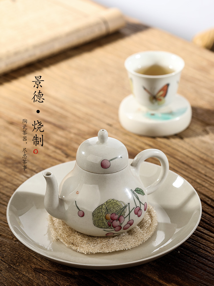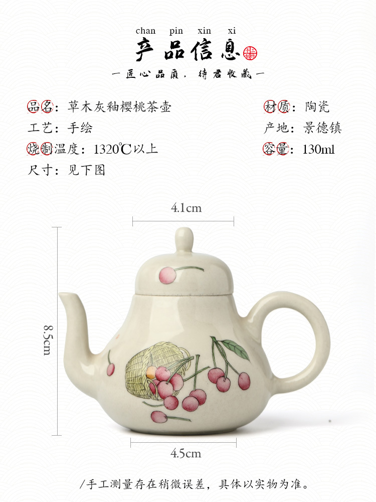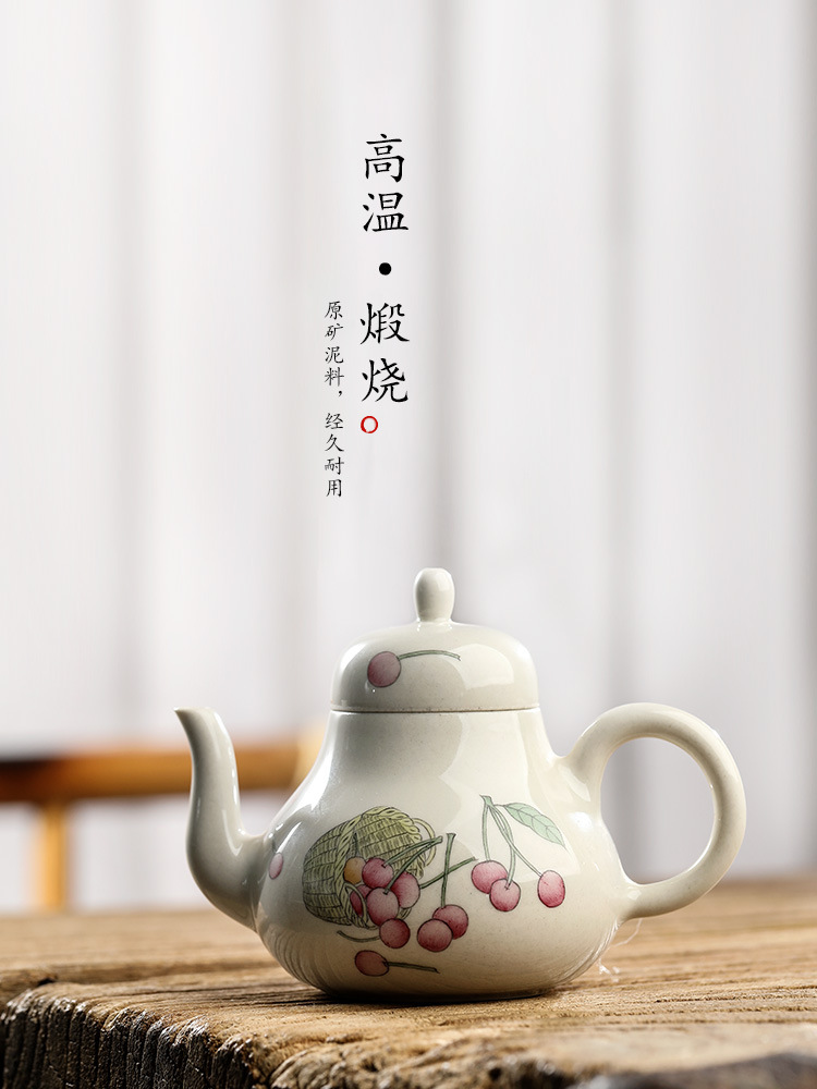 「景德镇手拉坯茶壶」功夫茶茶具壶 草木灰釉手绘樱桃球孔小号陶瓷单壶 商品缩略图0 「景德镇手拉坯茶壶」功夫茶茶具壶 草木灰釉手绘樱桃球孔小号陶瓷单壶 商品缩略图1 「景德镇手拉坯茶壶」功夫茶茶具壶 草木灰釉手绘樱桃球孔小号陶瓷单壶 商品缩略图2 「景德镇手拉坯茶壶」功夫茶茶具壶 草木灰釉手绘樱桃球孔小号陶瓷单壶 商品缩略图3 「景德镇手拉坯茶壶」功夫茶茶具壶 草木灰釉手绘樱桃球孔小号陶瓷单壶 商品缩略图4