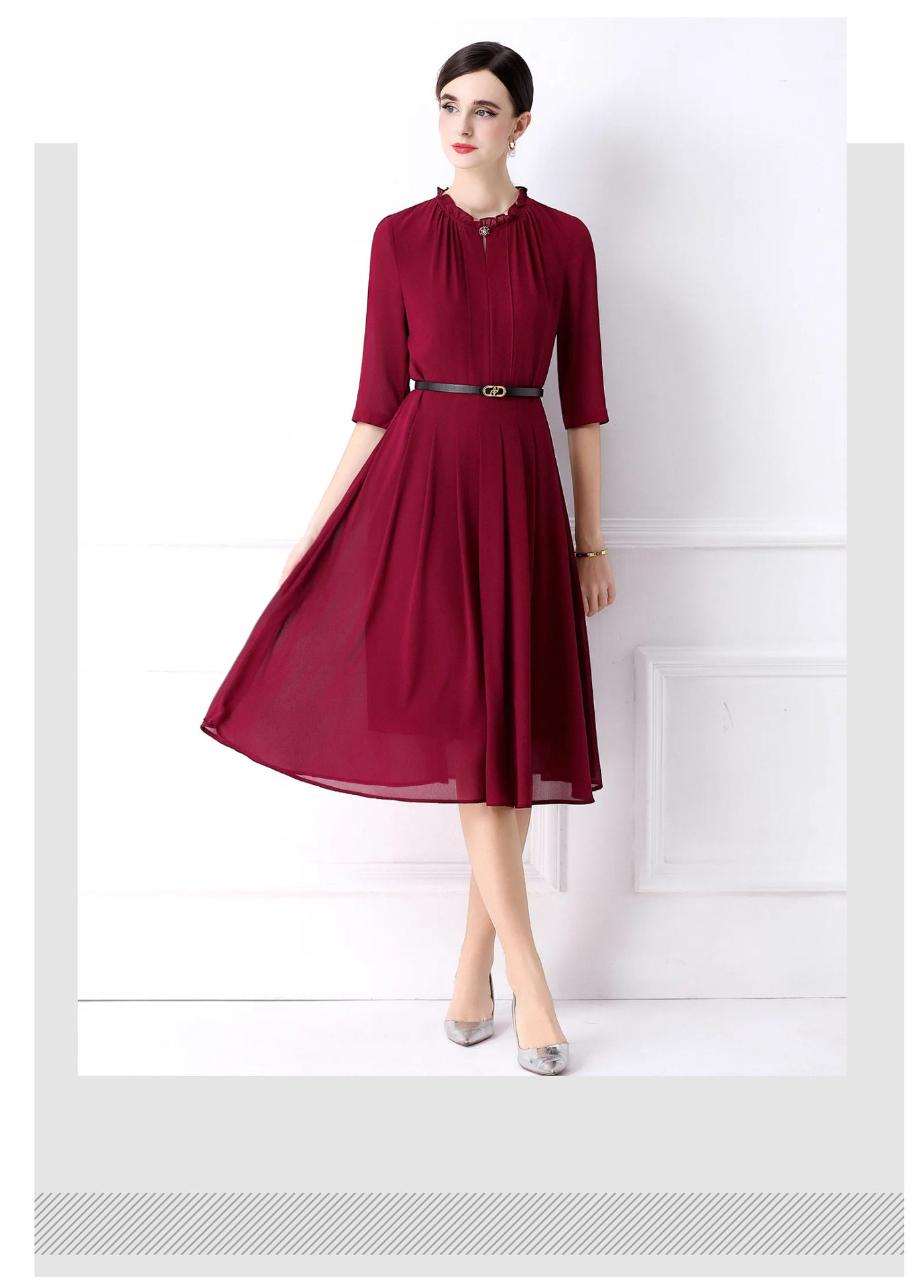 「高货deo」全新升级【铂金会员422/天猫569/差价147】(02920)洛诗琳法式轻薄雪纺连衣裙2026气质优雅修身显瘦百褶裙