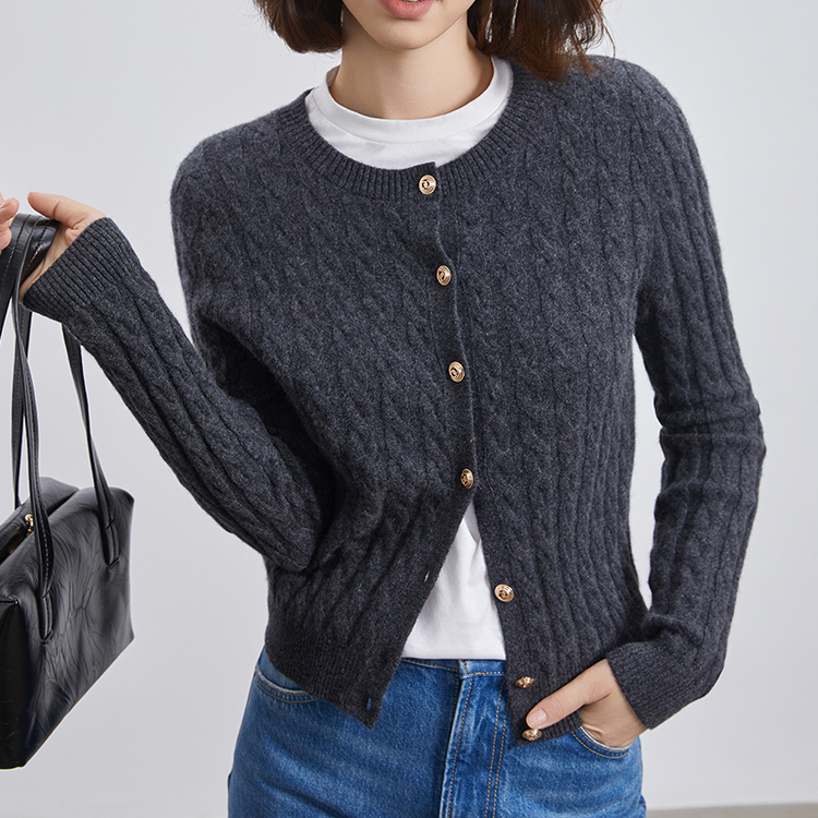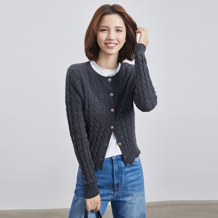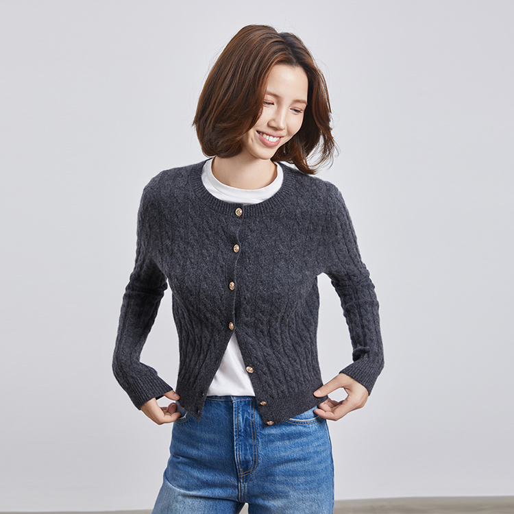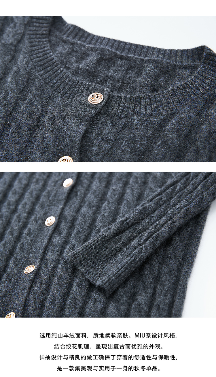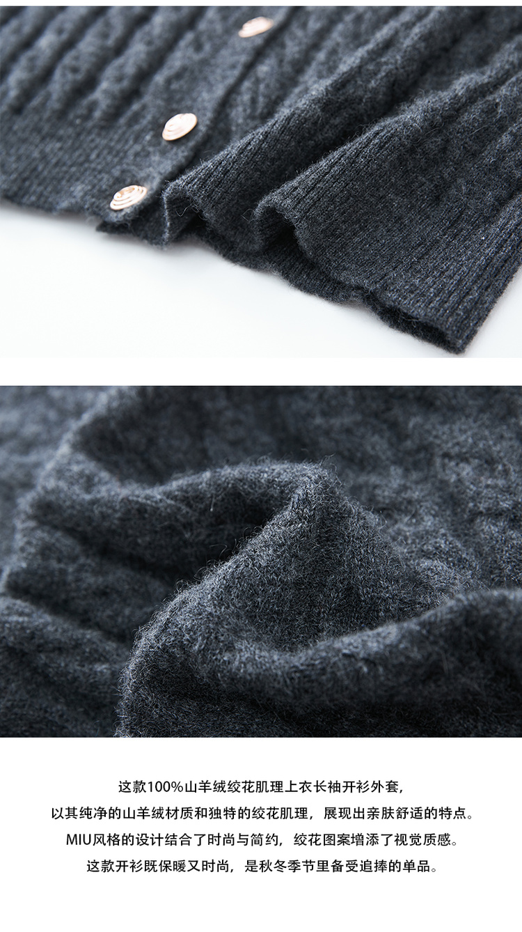 VogoPetite100%山羊绒亲肤舒适miu系绞花肌理上衣长袖开衫外套BP133F1515