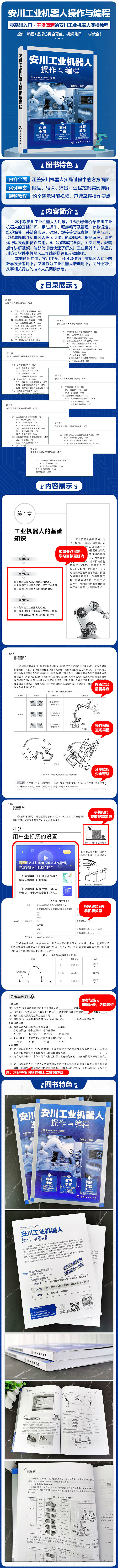 本书以世界著名工业机器人四巨头之一安川(YASKAWA)机器人为对象,着重围绕工业机器人操作与编程应用展开。在内容上以基本概念和基本原理为基础,注重实操;在结构编排上循序渐进,遵循读者认知规律,坚持以任务导向原则,通过典型实例解说和操作,达到理论和实际的有机结合。本书可作为工业机器人专业的教学及参考用书,也可作为工业机器人培训用书,还可供从事相关行业的技术人员阅读参考。