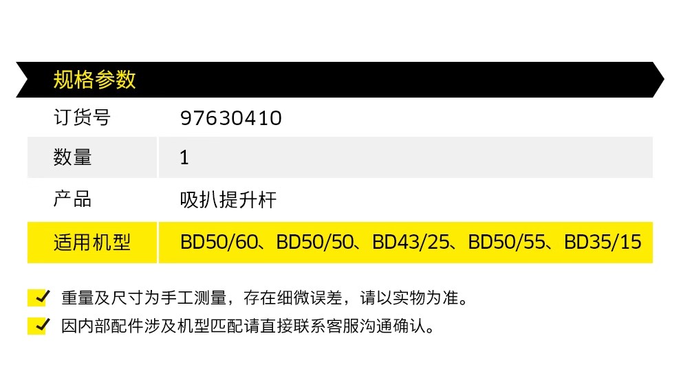 卡赫配件 商用洗地机吸扒提升杆 适用BD系列 97630410