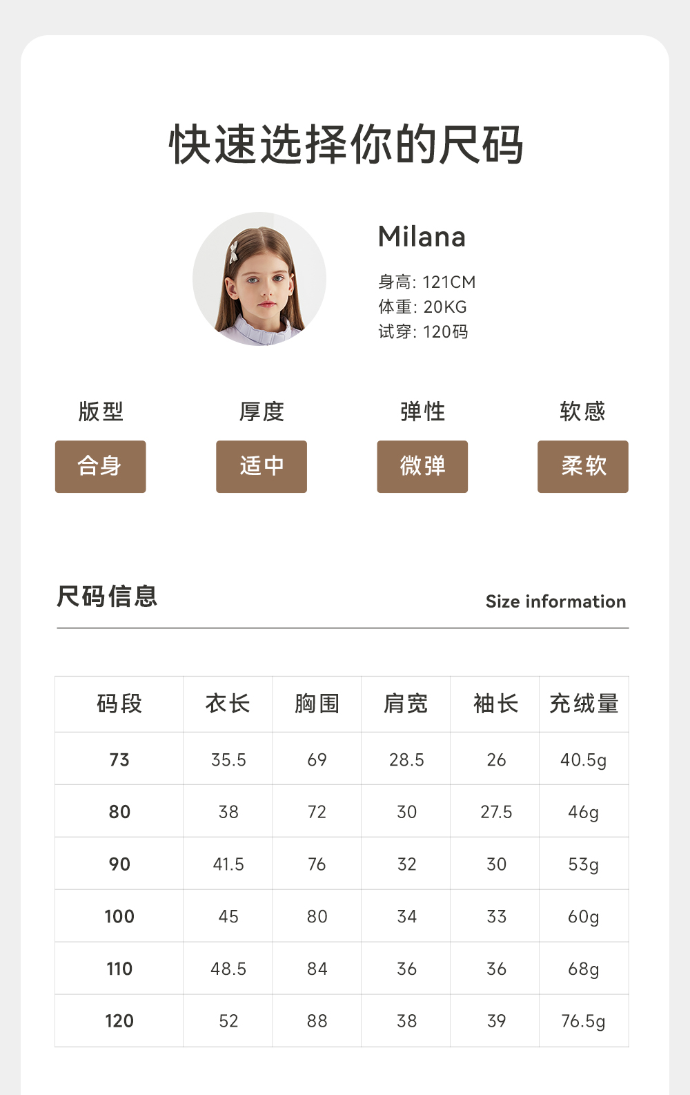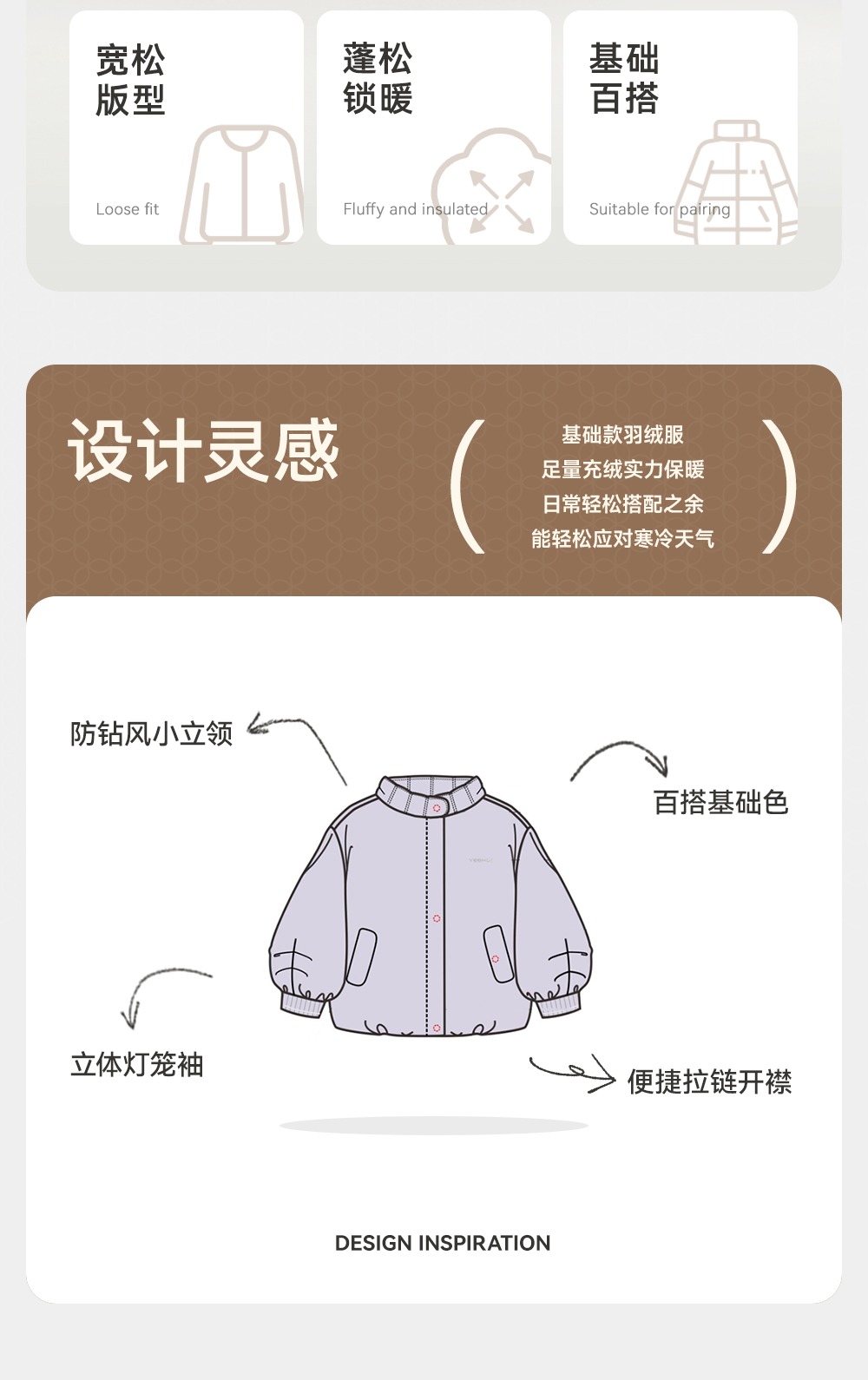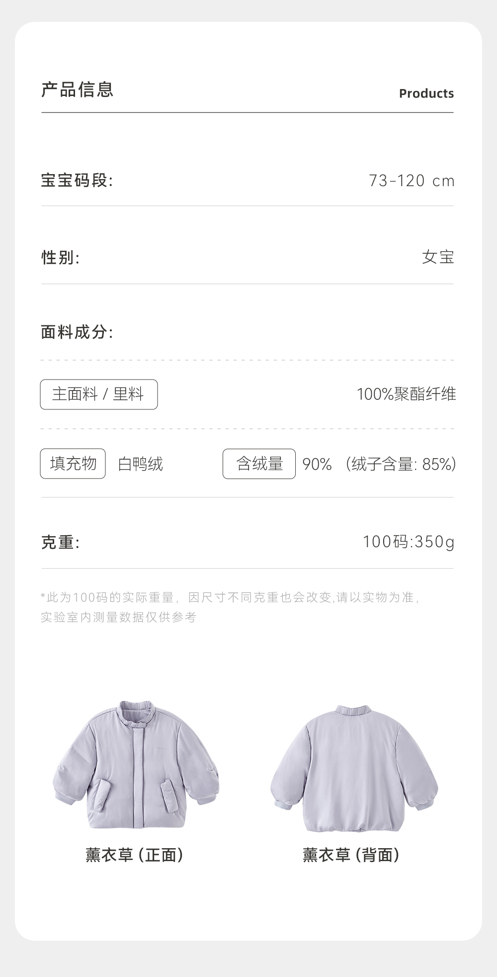 英氏儿童薰衣草羽绒服饰外套冬季保暖羽绒服 秋冬款超韧绒