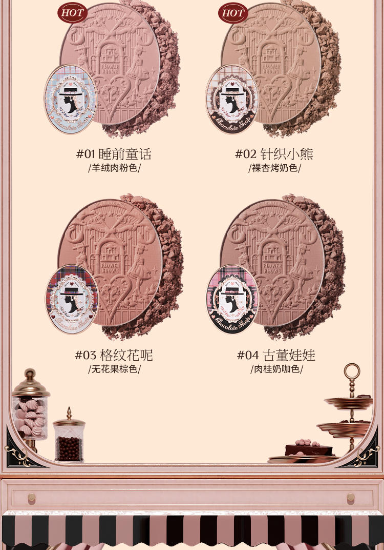 花知晓巧克力商店系列浮雕腮红(拍两件赠送拇指粉扑一个)
