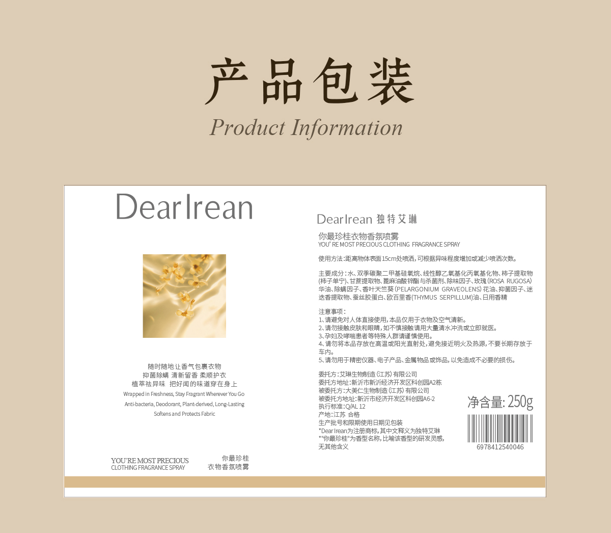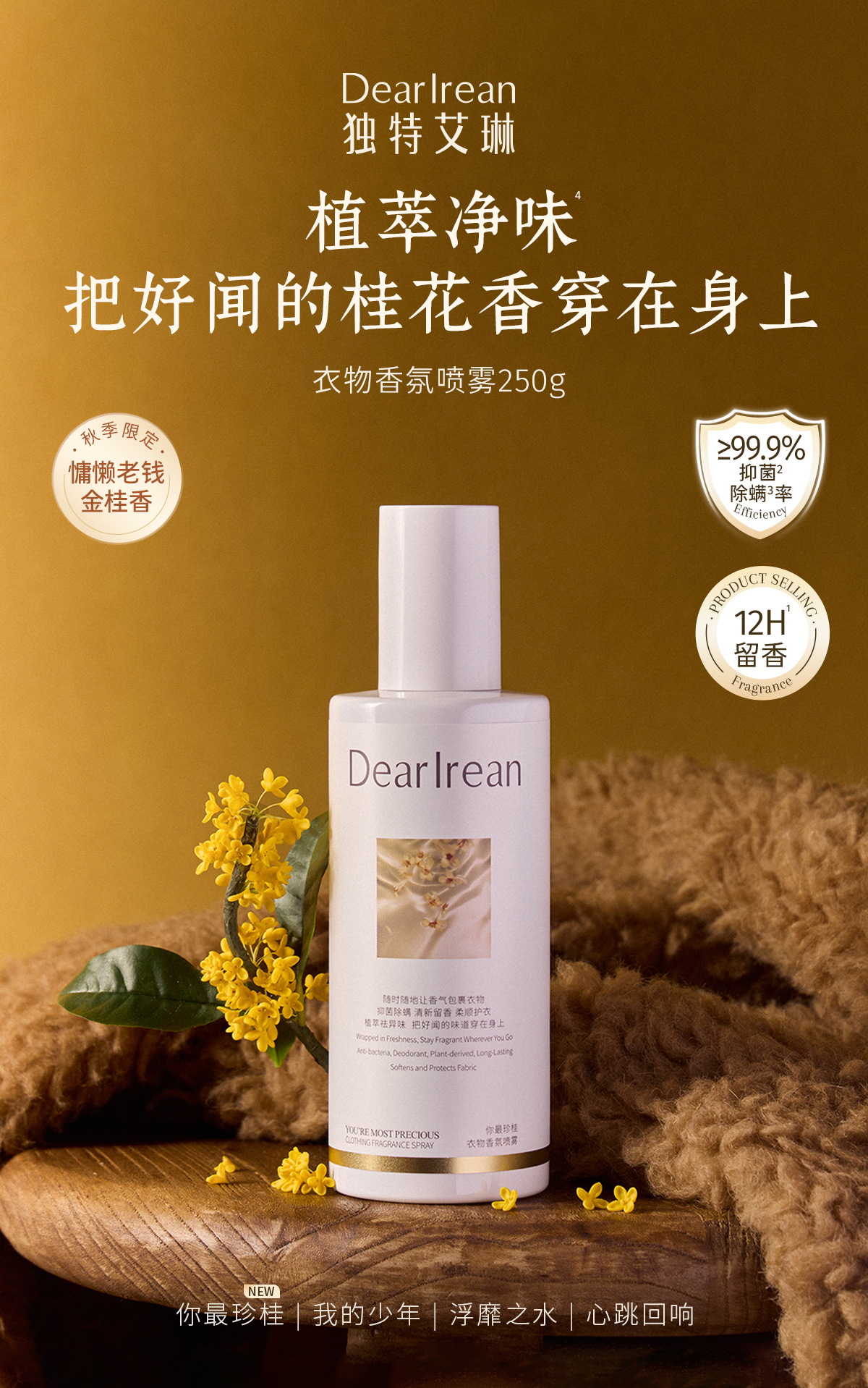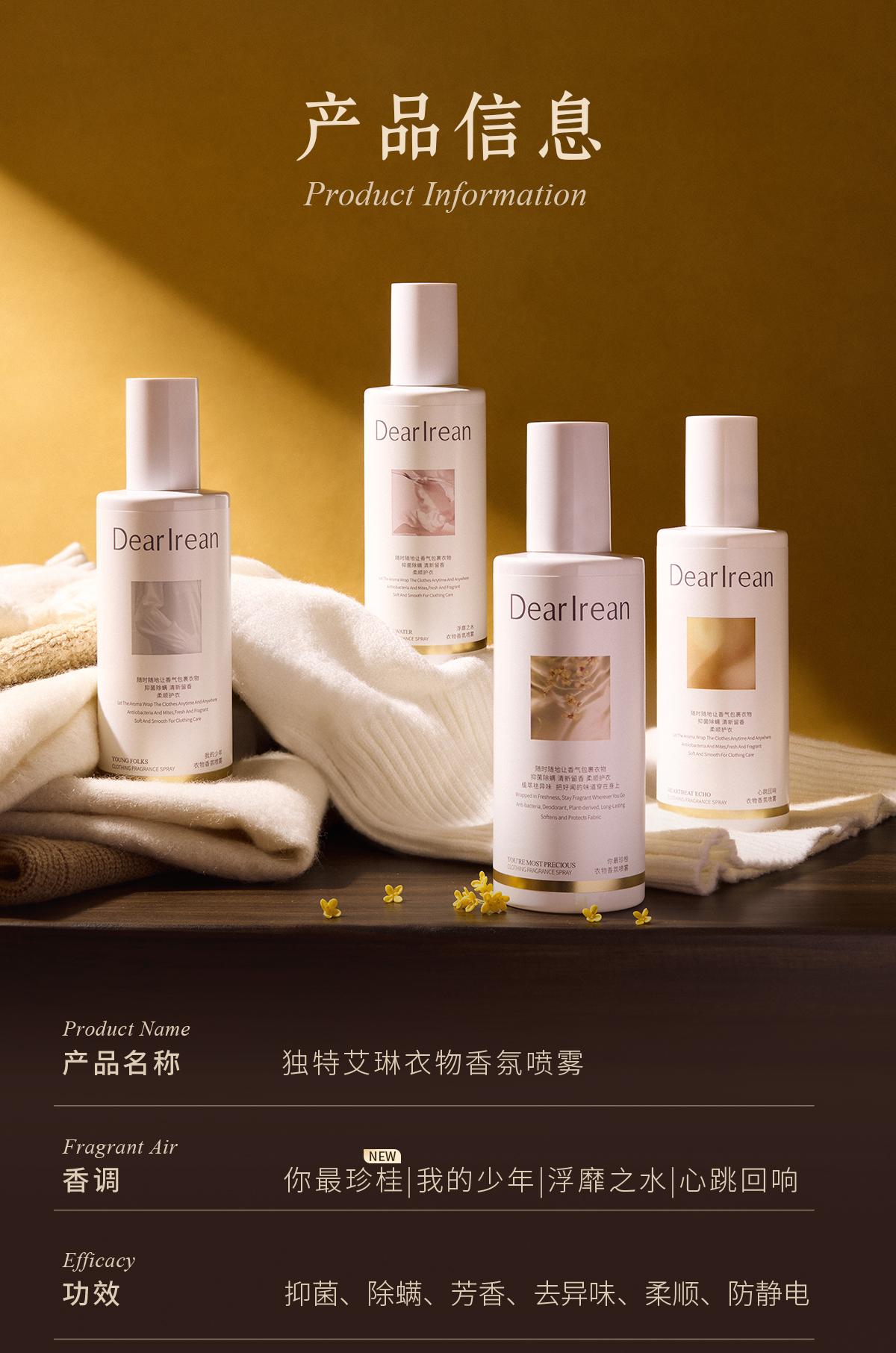 【分销客户专属】独特艾琳 衣物香氛喷雾衣物留香除臭去异味
