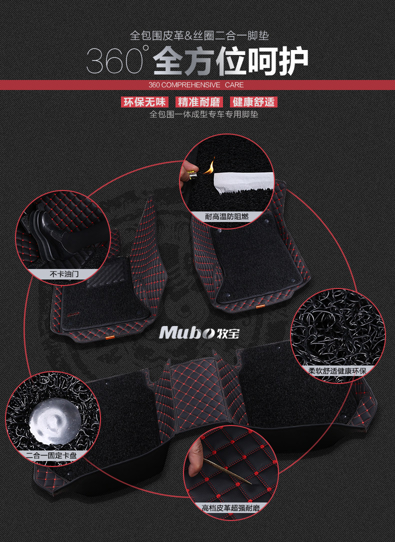 【专车定制】牧宝807双层全包围皮革汽车脚垫
