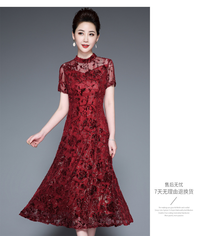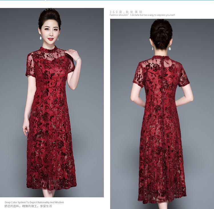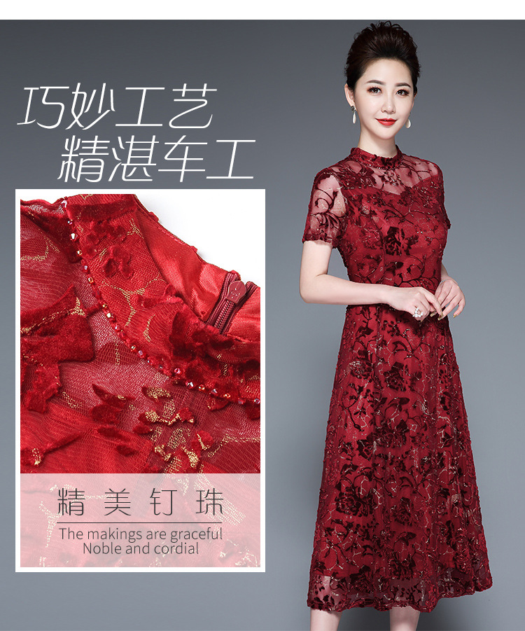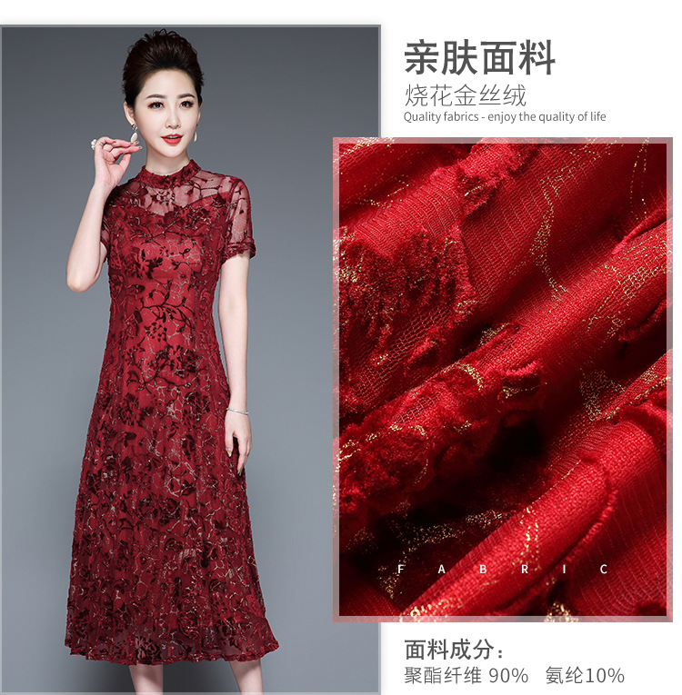 YZL-222中式气质丝绒烧花两件套连衣裙妈妈装