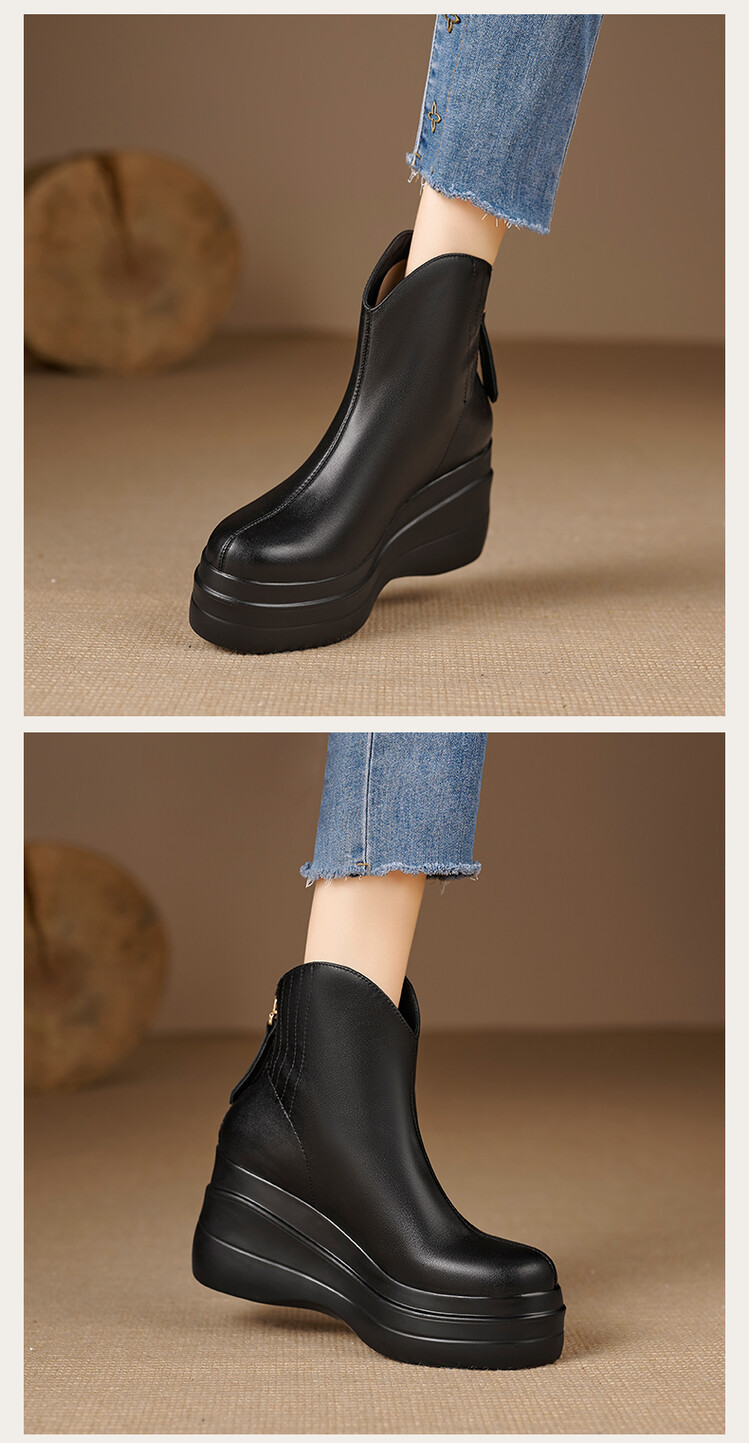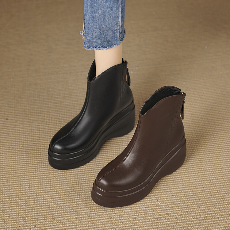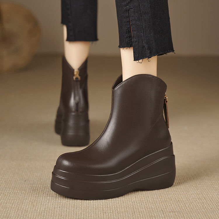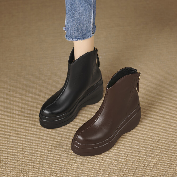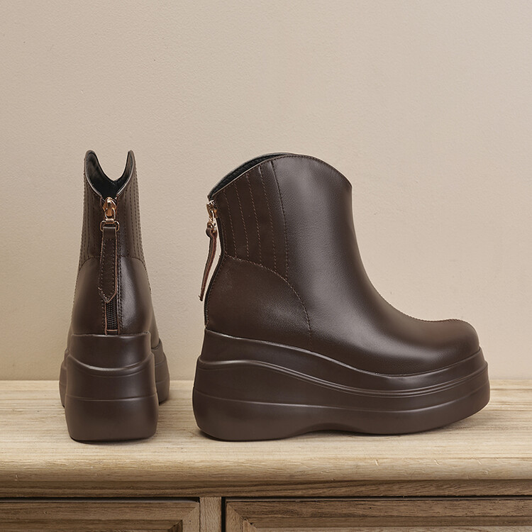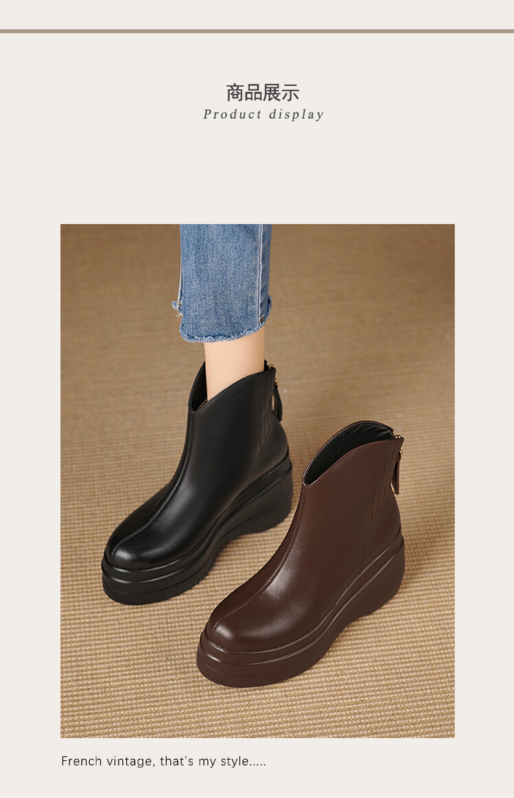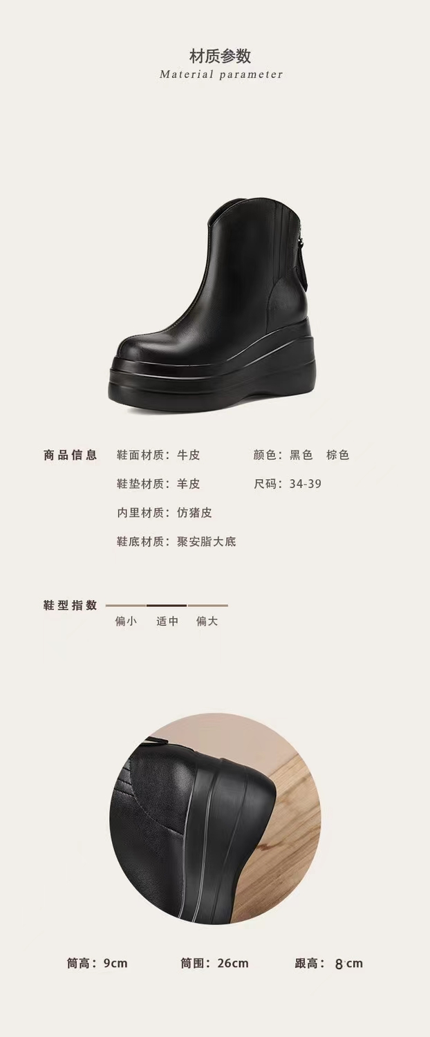 厚底马丁靴,女高跟冬季加绒松糕鞋秋冬时尚新款真皮坡跟短靴MQE-G82-8