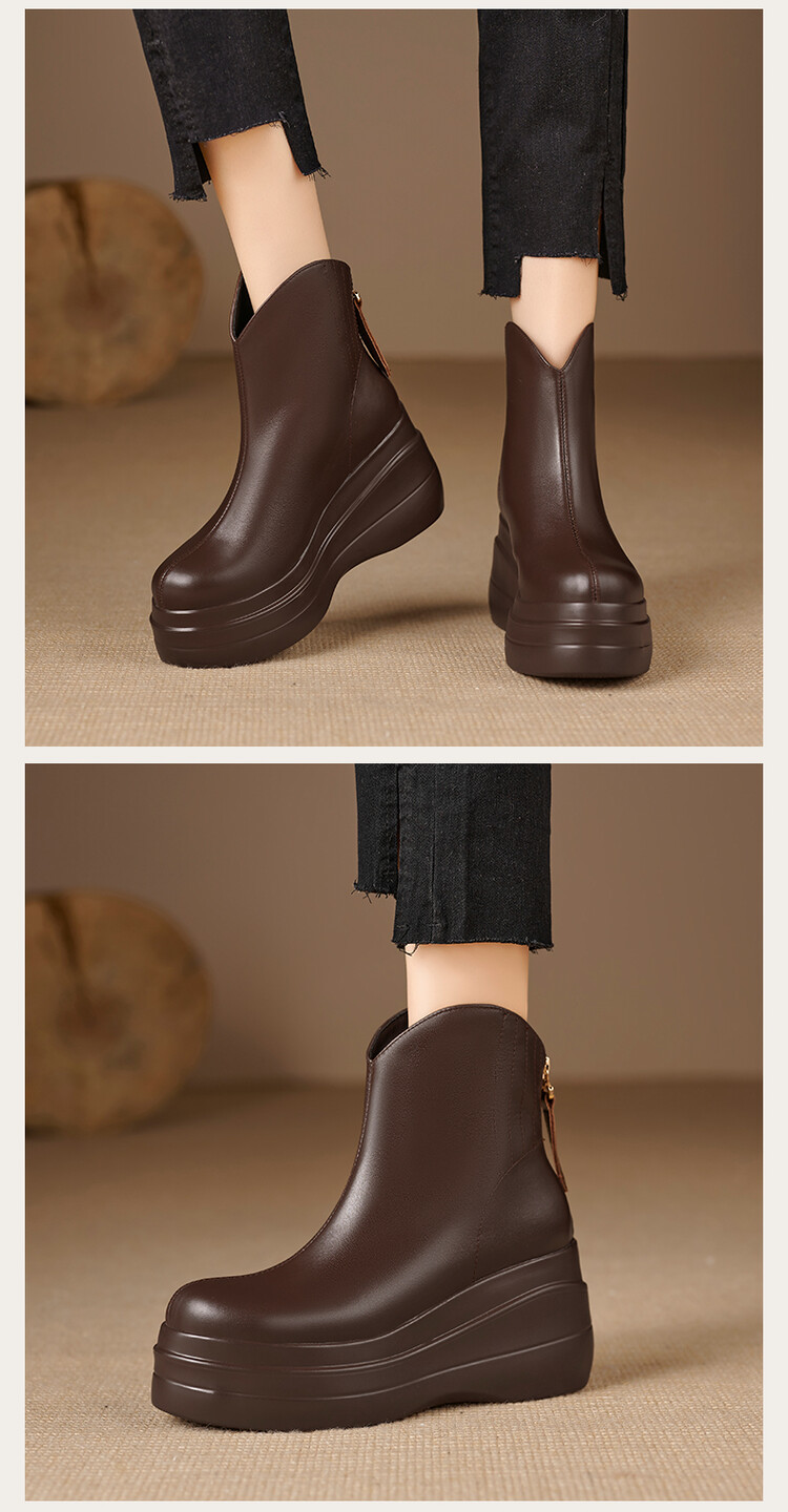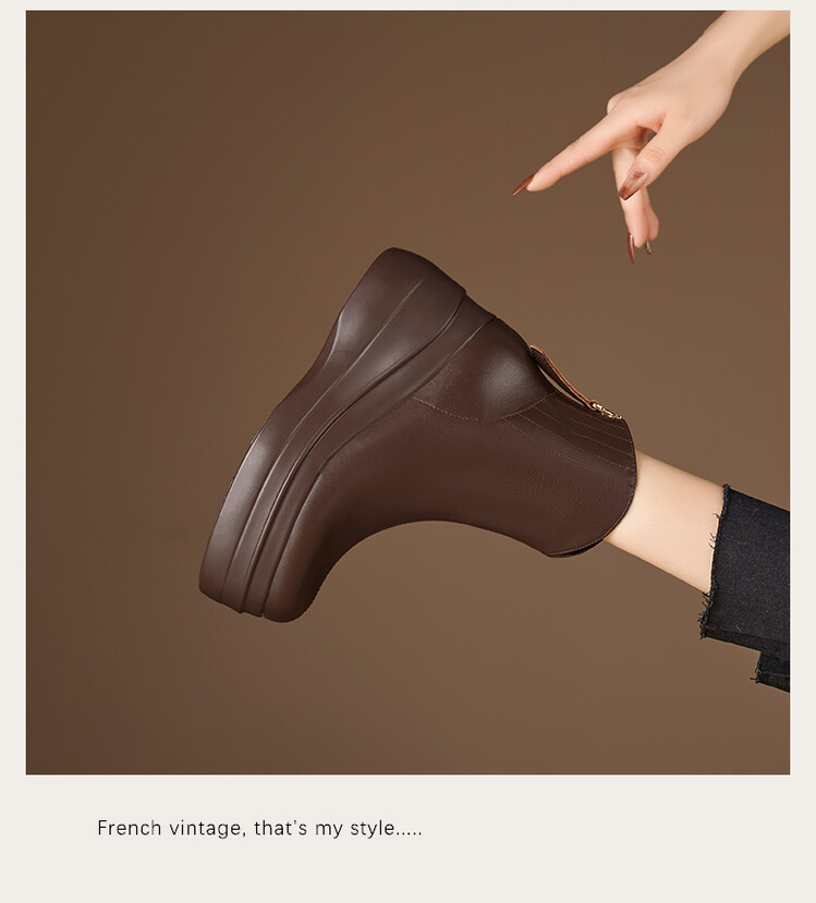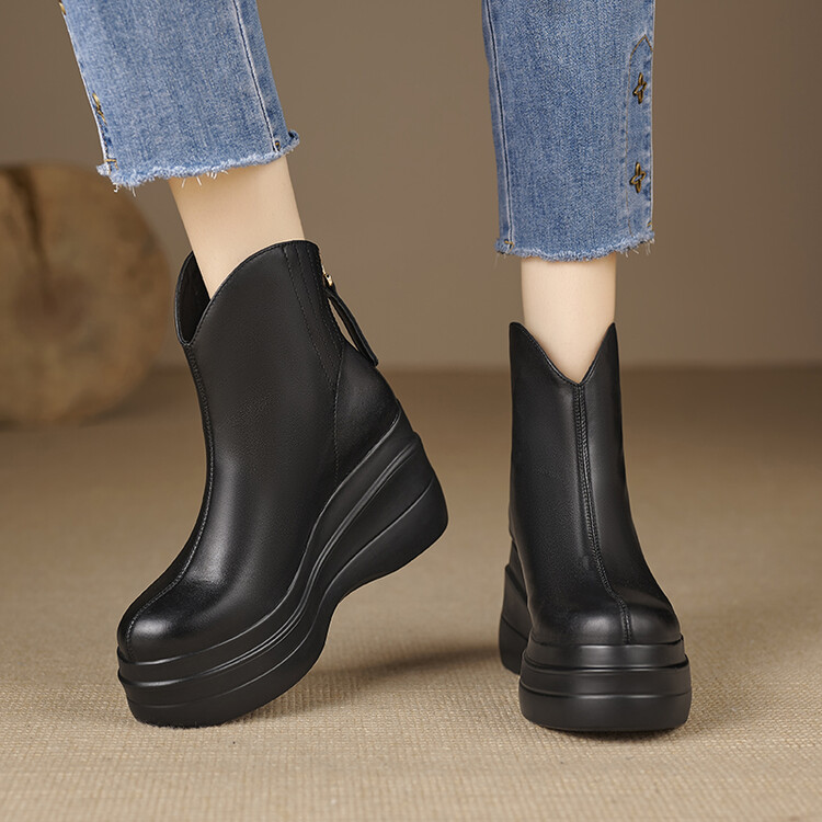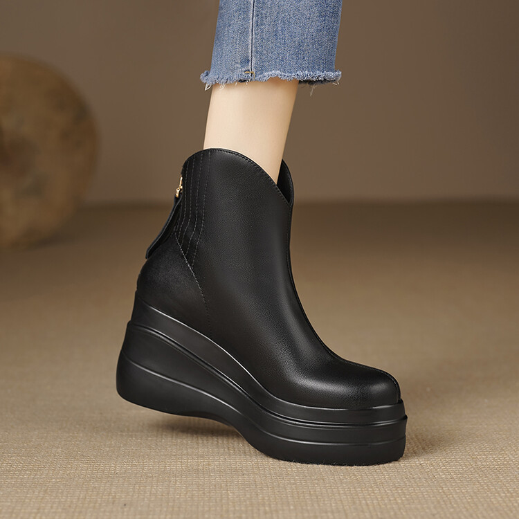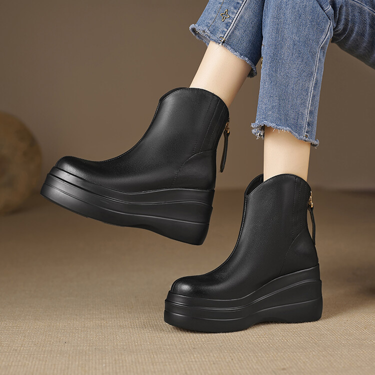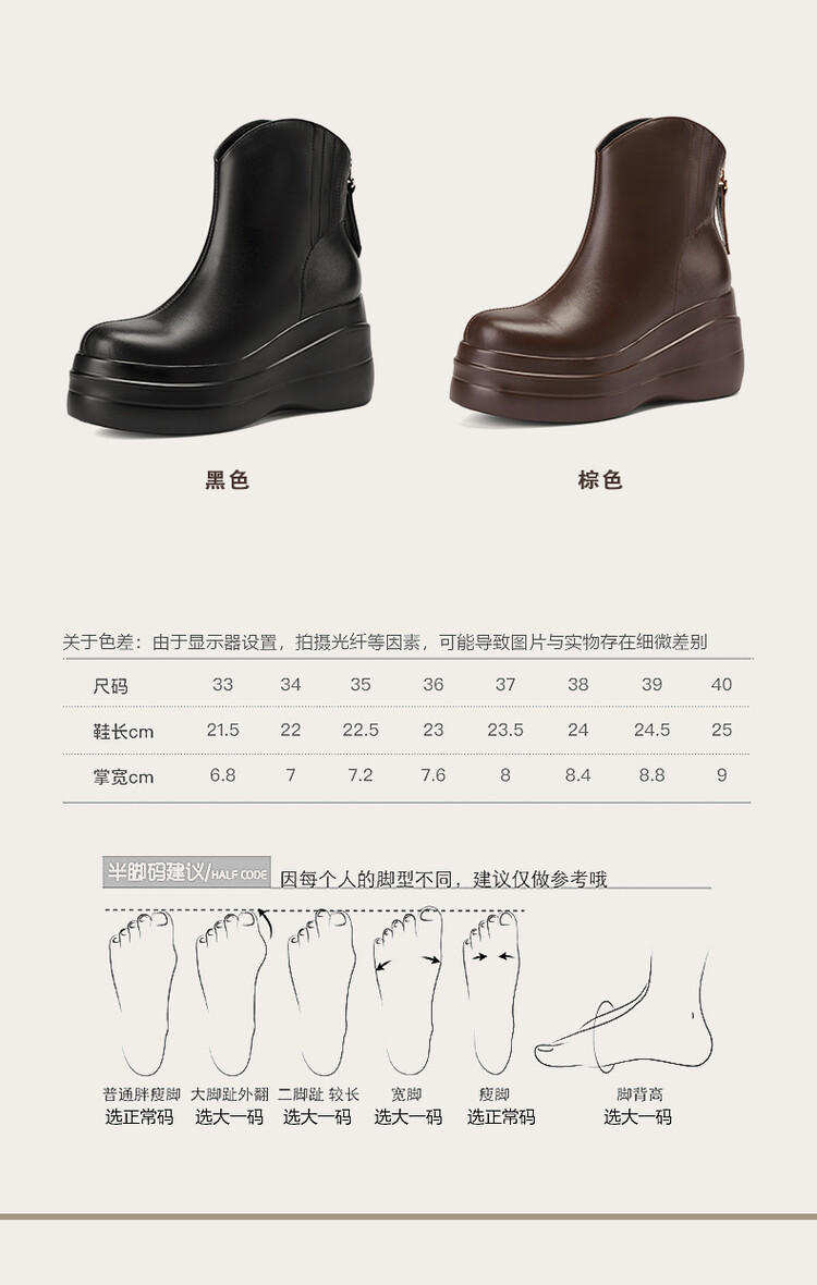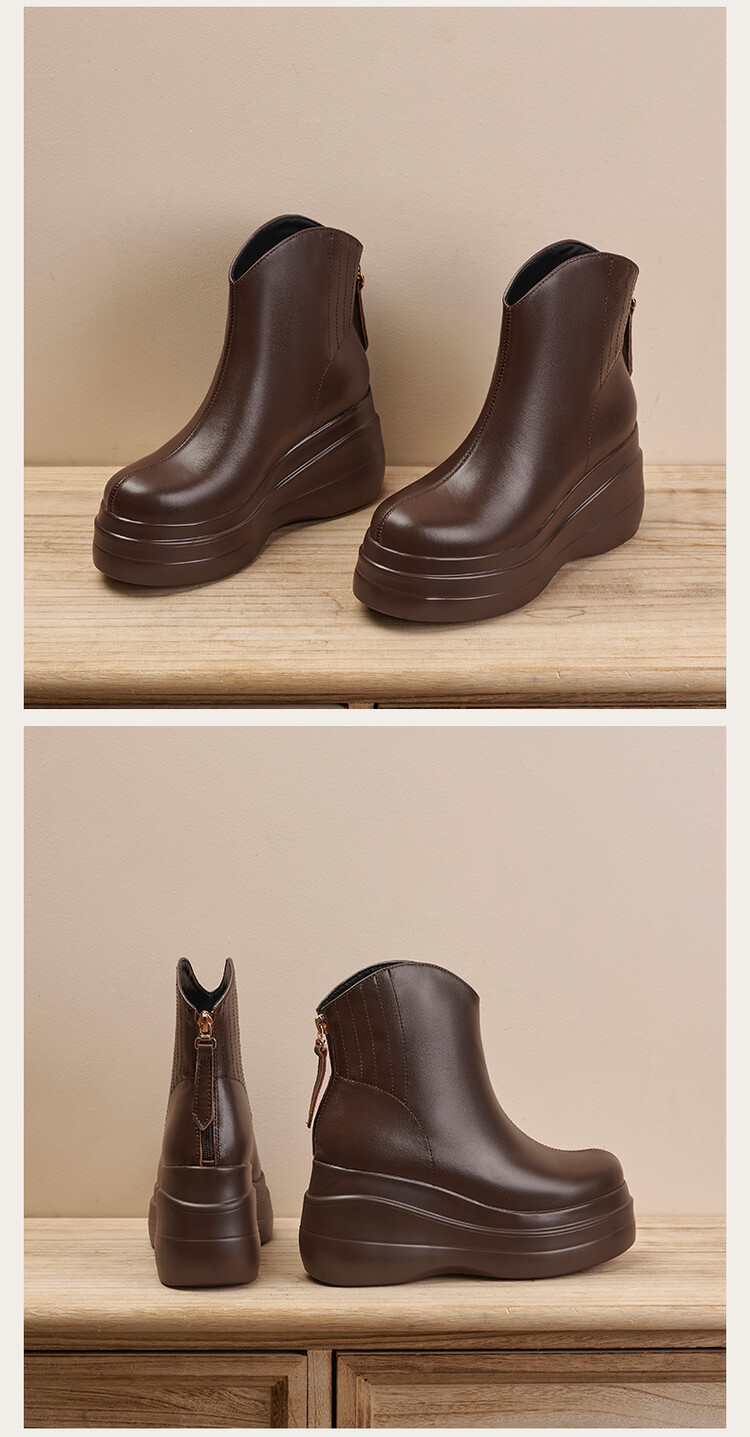 厚底马丁靴,女高跟冬季加绒松糕鞋秋冬时尚新款真皮坡跟短靴MQE-G82-8