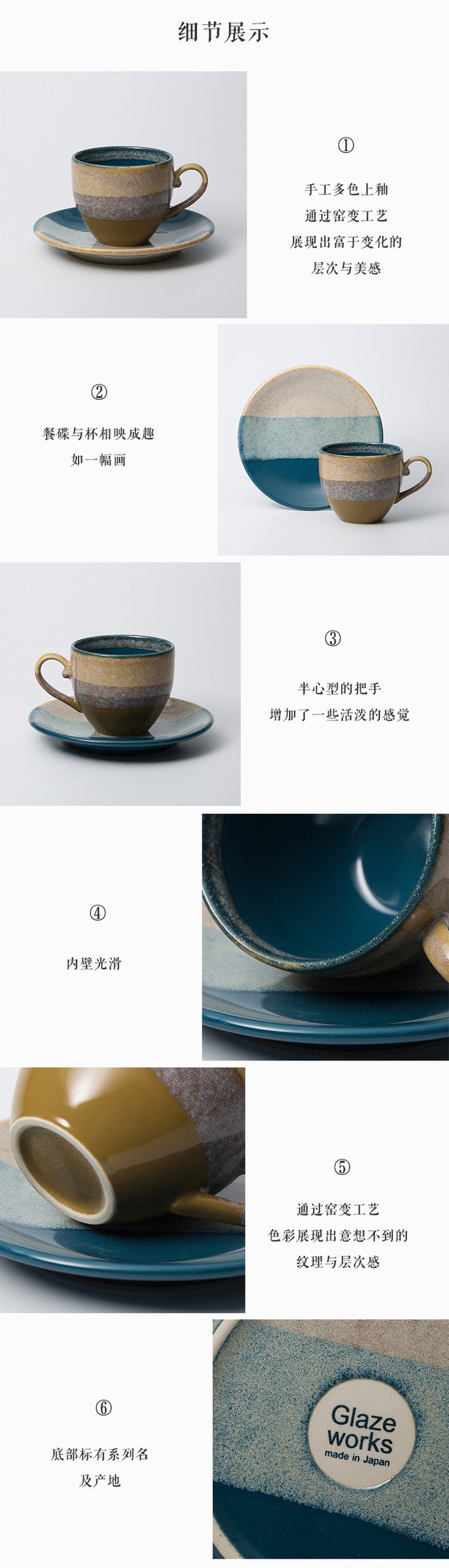 日本原产AITOGlaze works美浓烧陶瓷杯碟套装