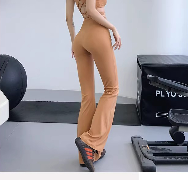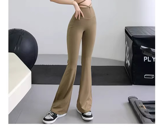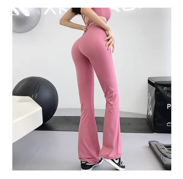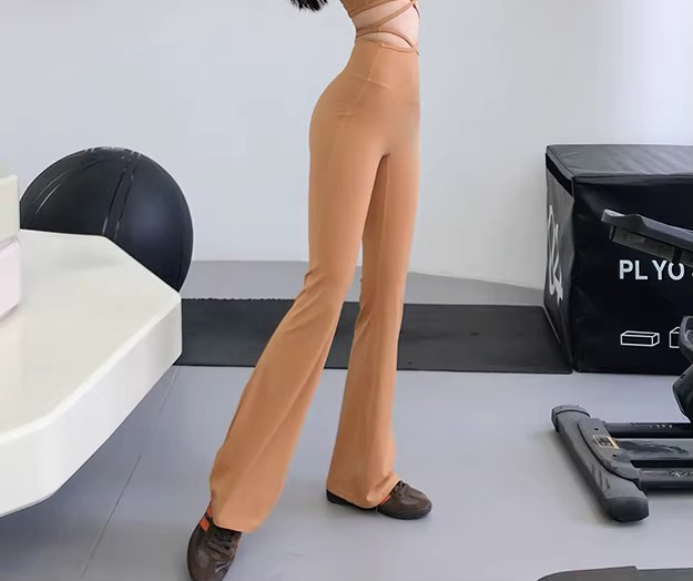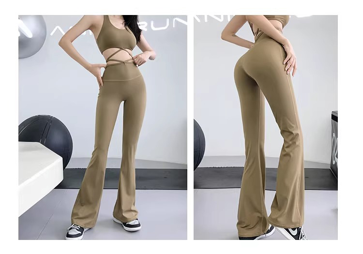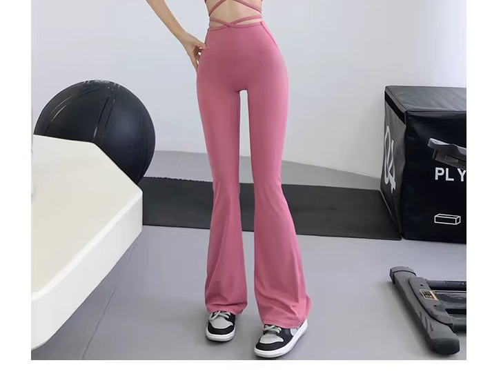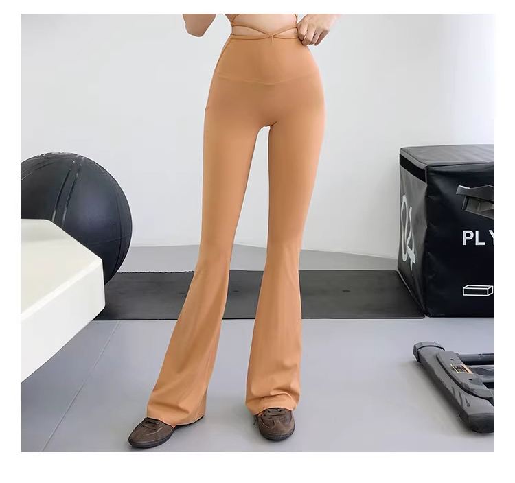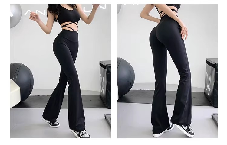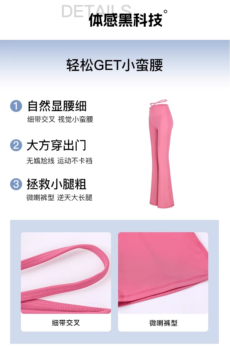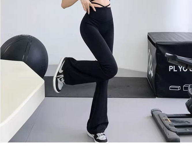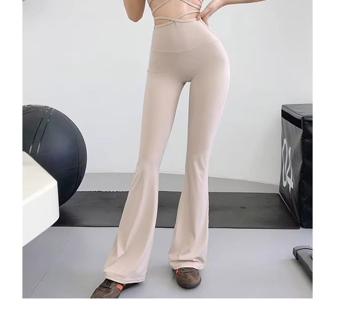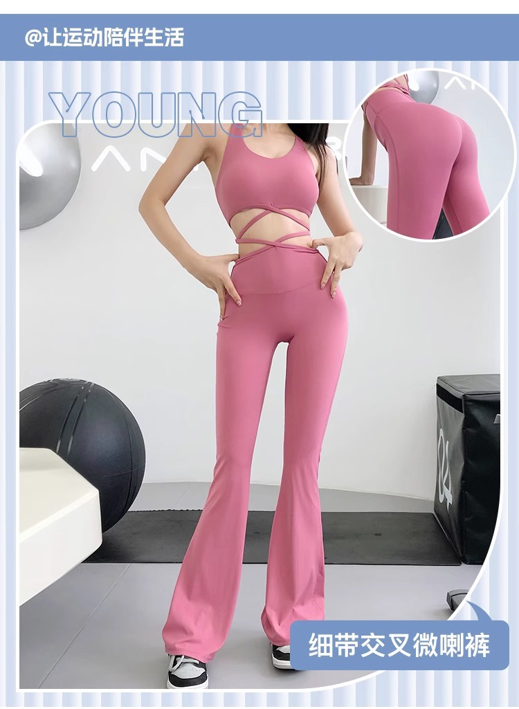 跃牌【化蝶双飞】系列 裸感高腰微喇阔腿裤跑步运动健身细带交叉瑜伽裤 TM0138